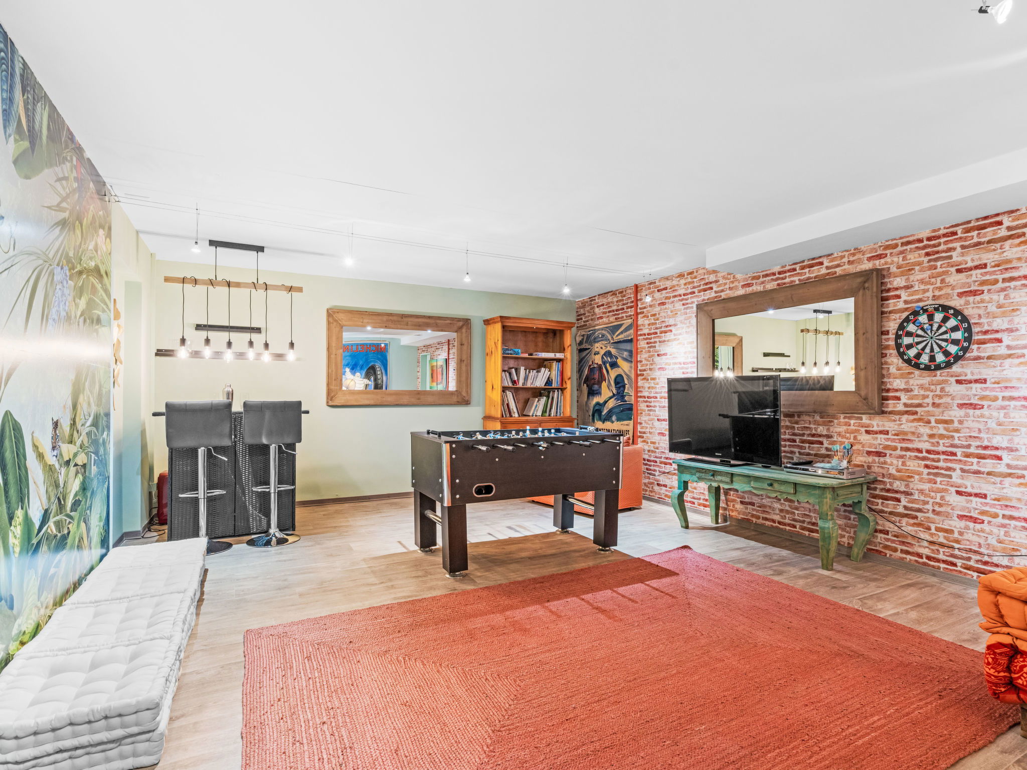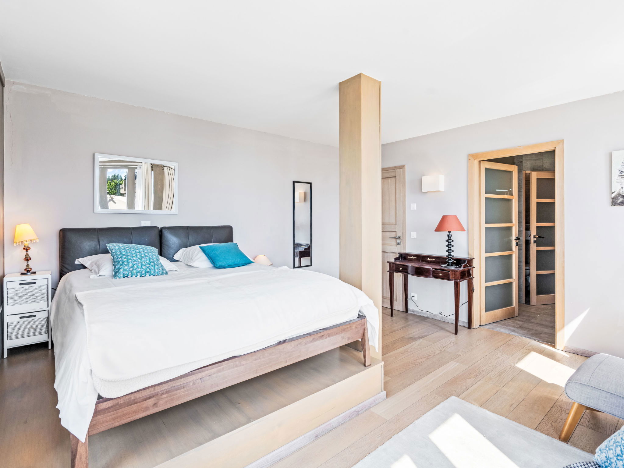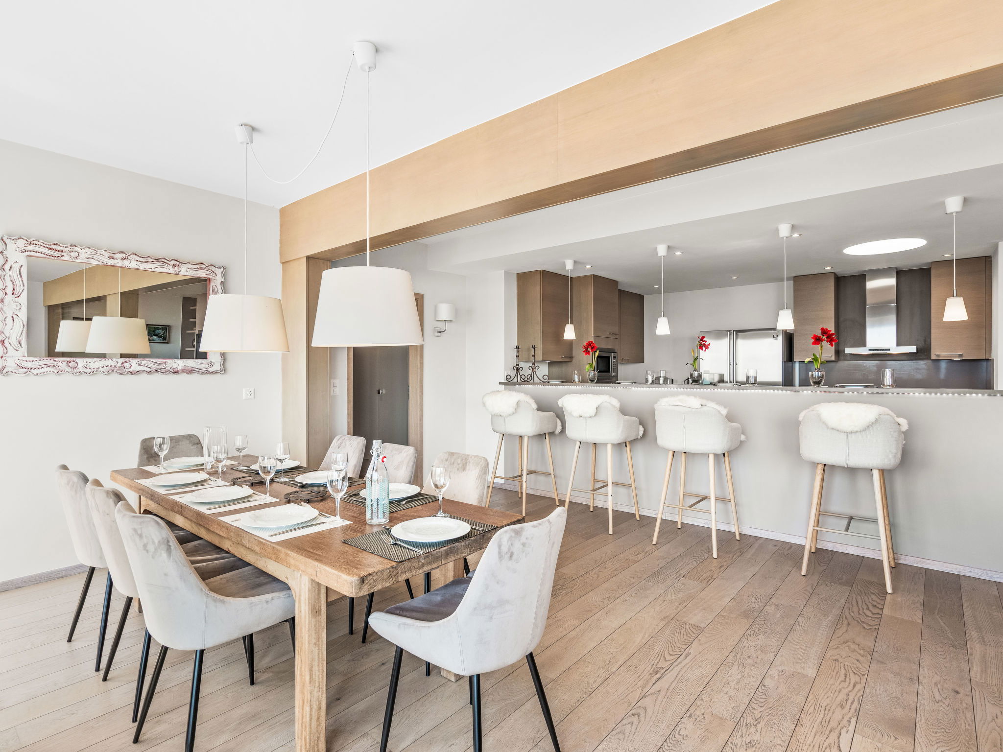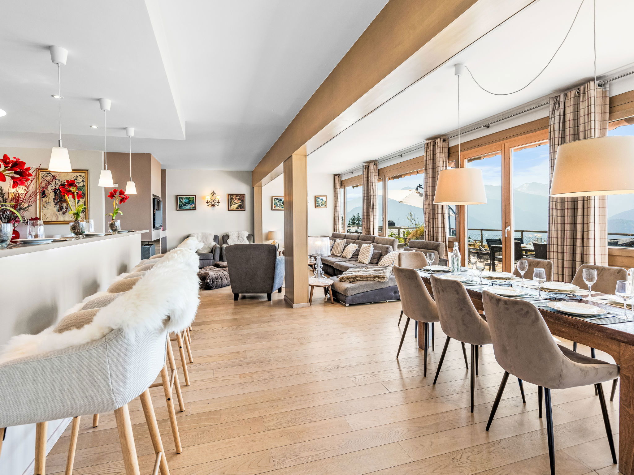 "Jeanne D'Arc LOFT Montagne", 6-room maisonette 200 m2, south facing position. Spacious, tasteful and cosy furnishings: large living/dining room with open-hearth fireplace, separate WC and cable TV. Exit to the terrace. 1 room with 1 french bed (160 cm, length 200 cm), bath/WC, double hand-basin and cable TV. 1 room with 2 beds (80 cm, length 200 cm), shower/WC. 1 room with 2 beds (80 cm, length 200 cm), shower/WC. Exit to the terrace. Open kitchen (oven, dishwasher, 4 ceramic glass hob hotplates, toaster, kettle, microwave, freezer, raclette grill, fondue Set (chinoise)) with bar. On the lower ground floor: (spiral staircase) large playroom with bar and TV. Large lounge. Sauna. Heating not available in all rooms. Terrace, south facing position. Terrace furniture, barbecue (portable). Marvellous panoramic view of the lake, the mountains, the valley and the countryside. Facilities: washing machine, dryer, iron, hair dryer. Internet (WiFi, free). Garage space n 21 at 350 m, height 200 cm, width 290 cm. Please note: suitable for families. Non-smokers only. Private entrance, no lift. Connecting door to flat CH3962.180.17 sleeping 6.