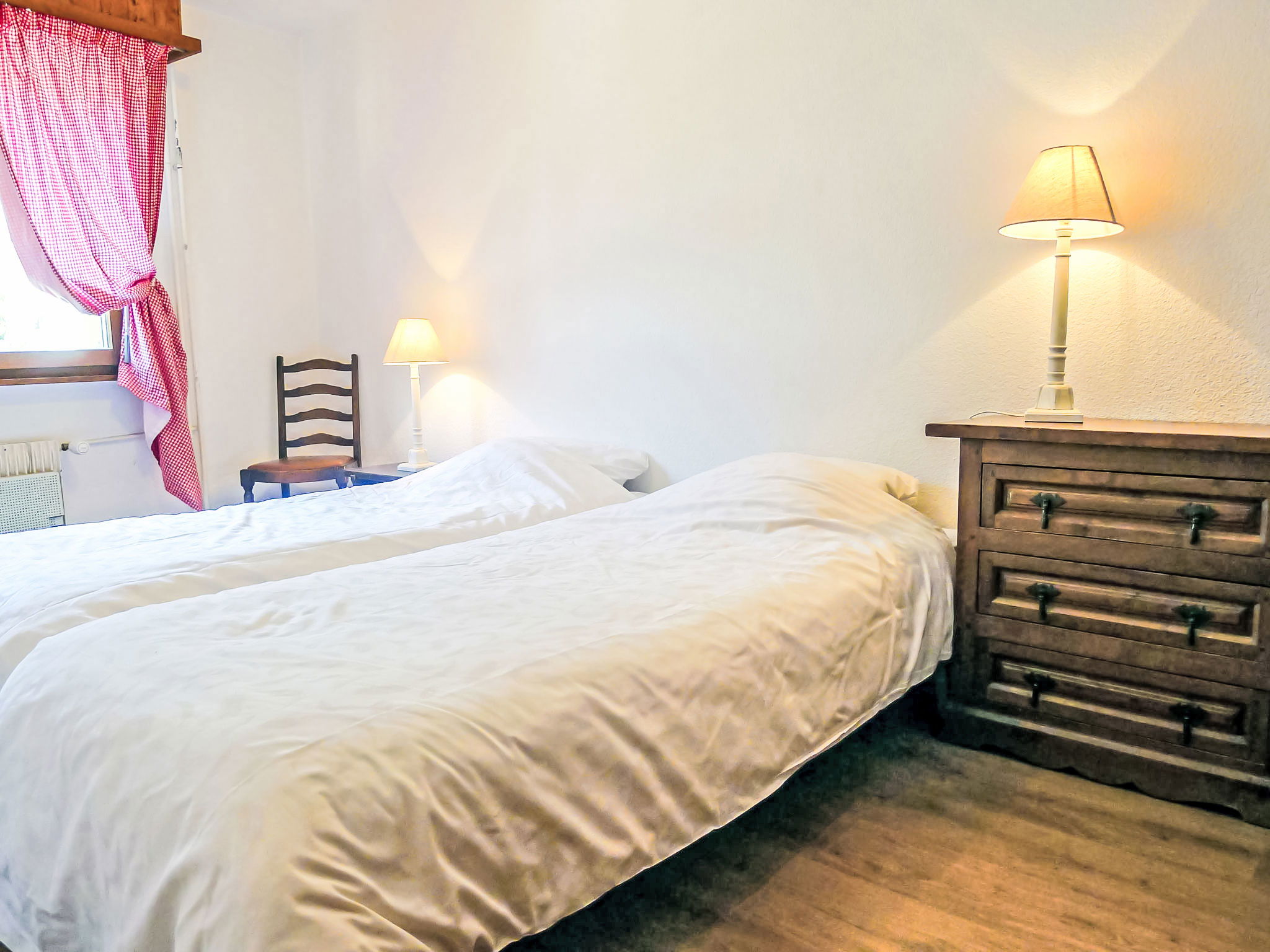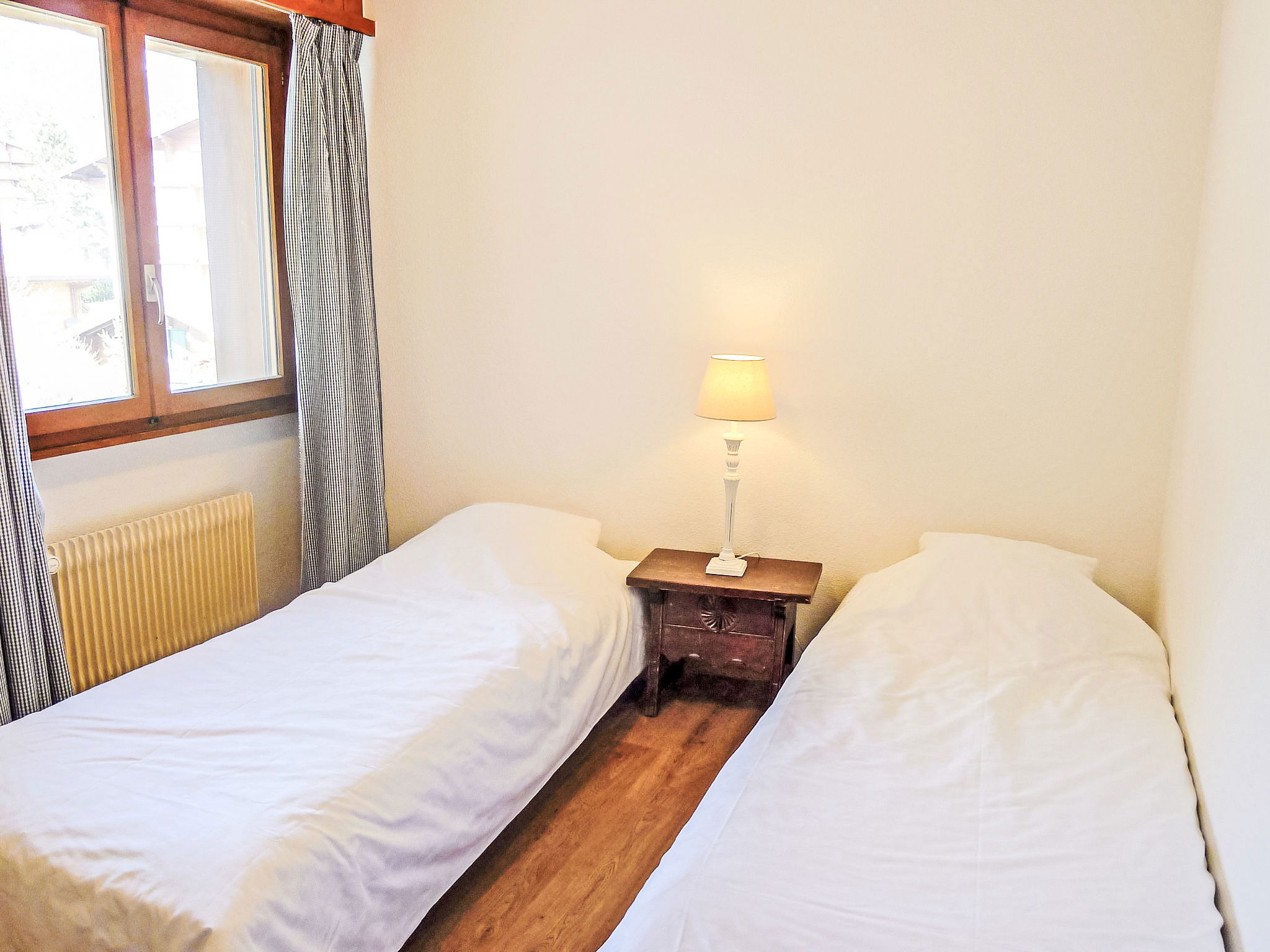 "Villars Soleil A27", 3-room maisonette 70 m2 on 3rd floor, south-east facing position. Practical furnishings: living/dining room with open-hearth fireplace (only for decoration), dining table and TV. Exit to the balcony. 1 room, without wardrobe with 2 beds. 1 room with 2 beds. Open kitchen (3 hot plates, oven, toaster, kettle, electric coffee machine, raclette grill, fondue Set (cheese)). Bath/bidet/WC. Balcony. Terrace furniture. Partial view of the mountains and the countryside. Facilities: hair dryer. Internet (WiFi, free). Garage space n H. Please note: apartment street side. Fridge without freezer. Maximum 1 pet/ dog allowed.