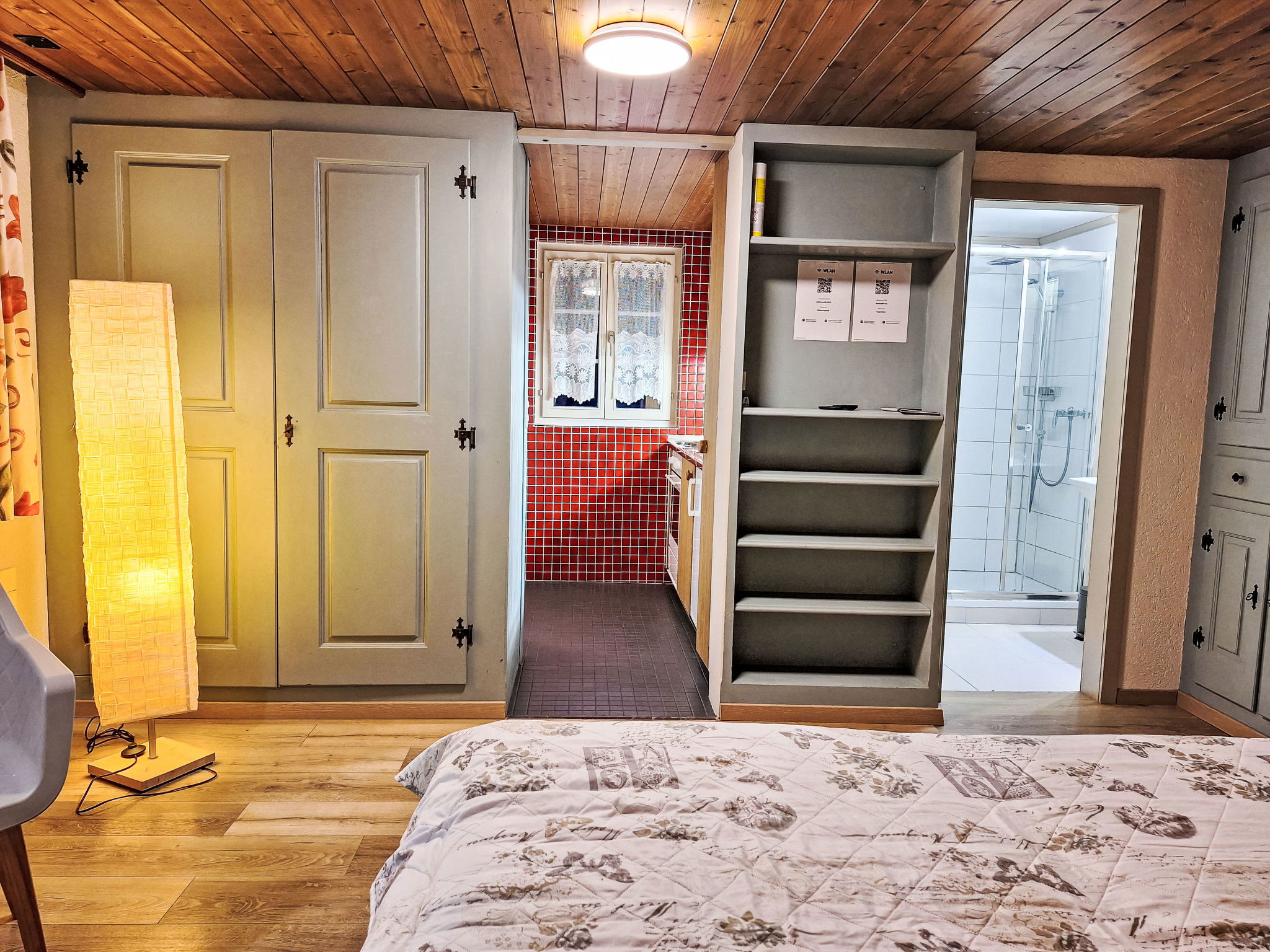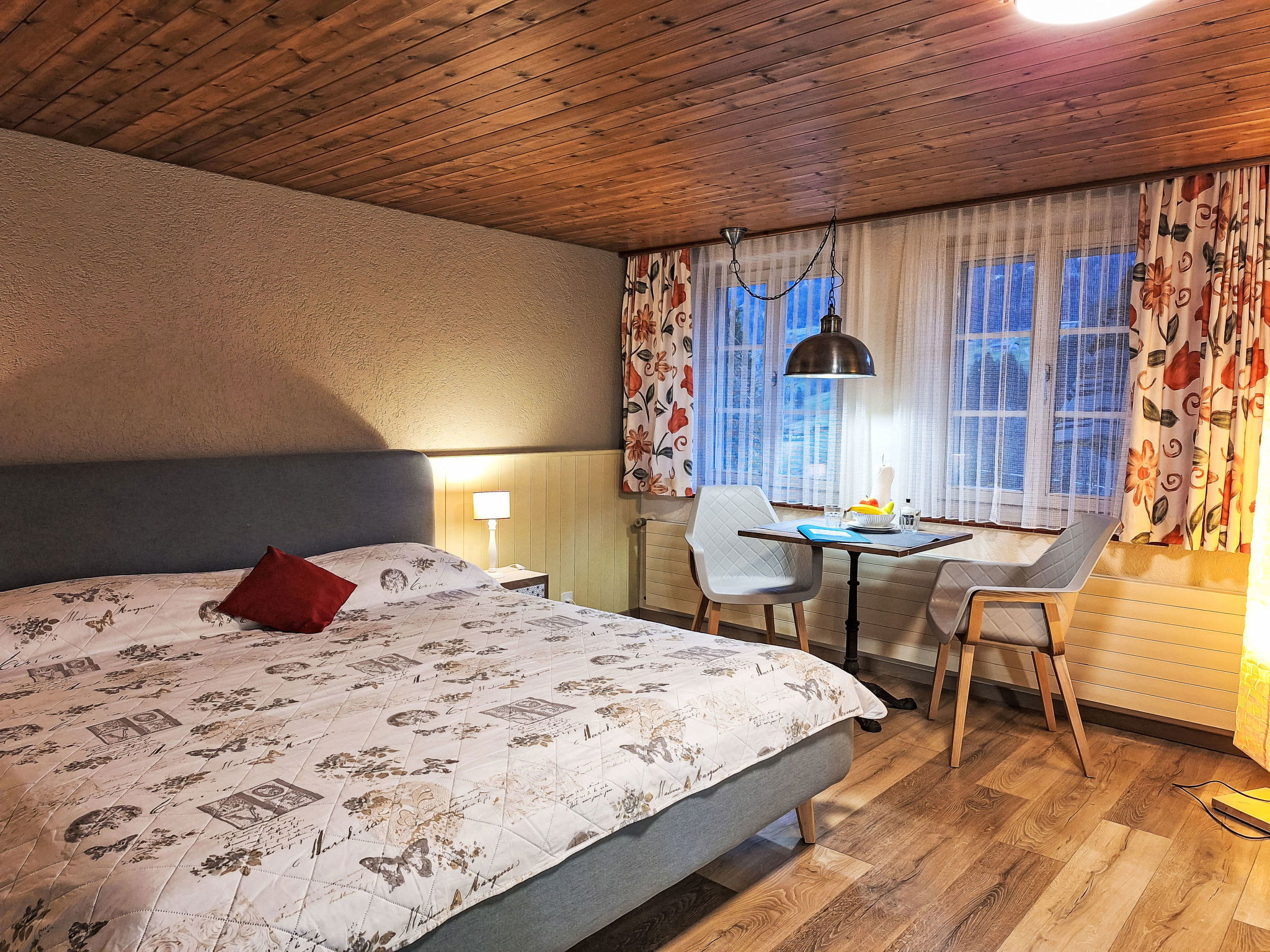 1-room apartment 30 m2, on the ground floor, south facing position. Beautiful and cosy furnishings: living/sleeping room with 1 double bed (2 x 90 cm, length 200 cm), international TV channels. Exit to the patio. Kitchenette (2 hot plates, oven, toaster, kettle, electric coffee machine, Capsules for coffee machine (Nespresso) extra). Shower/WC. Parquet floors. Terrace 7 m2, south facing position. Terrace furniture. Marvellous view of the mountains, the valley and Eigernordwand, Schynige Platte. Facilities: hair dryer. Internet (WiFi, free). Parking at 30 m. Please note: non-smokers only. Maximum 1 pet/ dog allowed. Fire extinguisher.