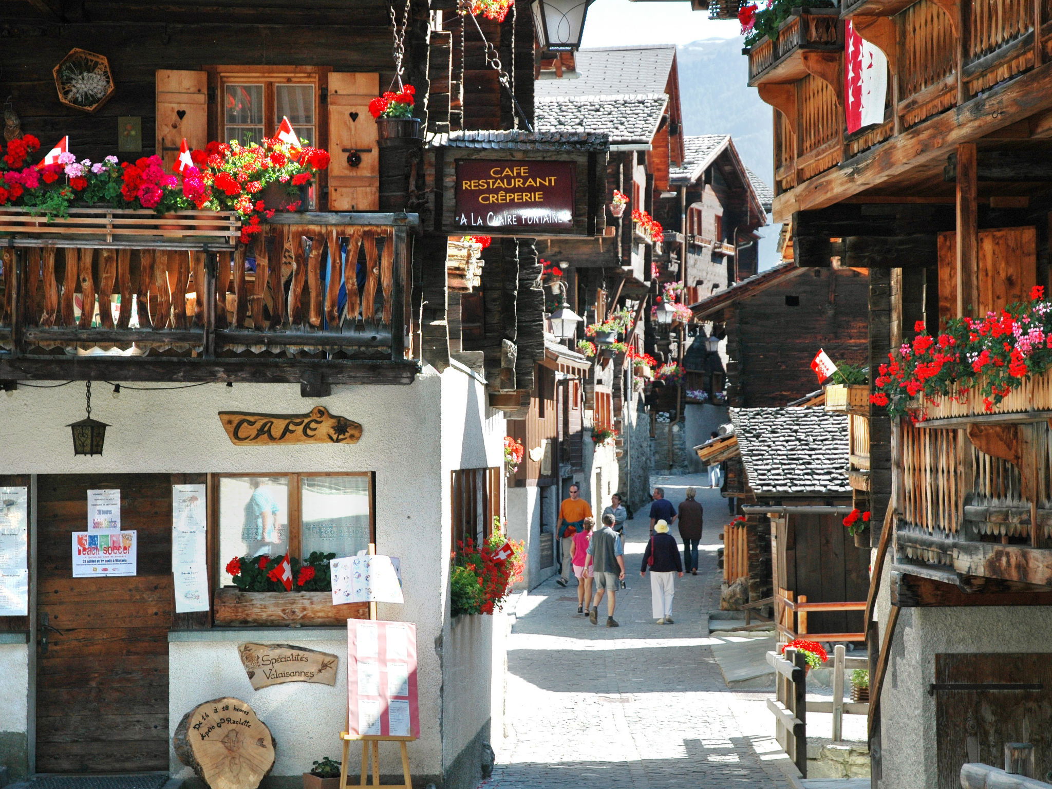 Beautiful, comfortable chalet "Les Clarines", 1'650 m a.s.l., 2 storeys. 900 m from the centre of Grimentz, on the outskirts, 25 km from the centre of Sierre, 100 km from the centre of Montreux, in a sunny position in the residential district, 700 m from the skiing area. Private: natural state property. Terrace, garden furniture. In the house: central heating system, washing machine, tumble dryer, drying room. 900 m long narrow motor access. In Winter: please take snow chains. Single garage. Supermarket 900 m, bus stop "Carovilla" 900 m, railway station "Sierre" 25 km, outdoor swimming pool 8 km, indoor swimming pool 9 km. Ski lift, slopes, ski school 700 m. Please note: ski bus (free of charge). In winter, shuttle bus serving the cable car stations, 100 metres away.