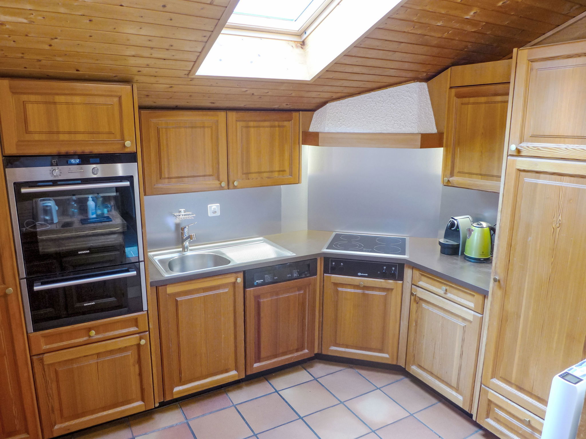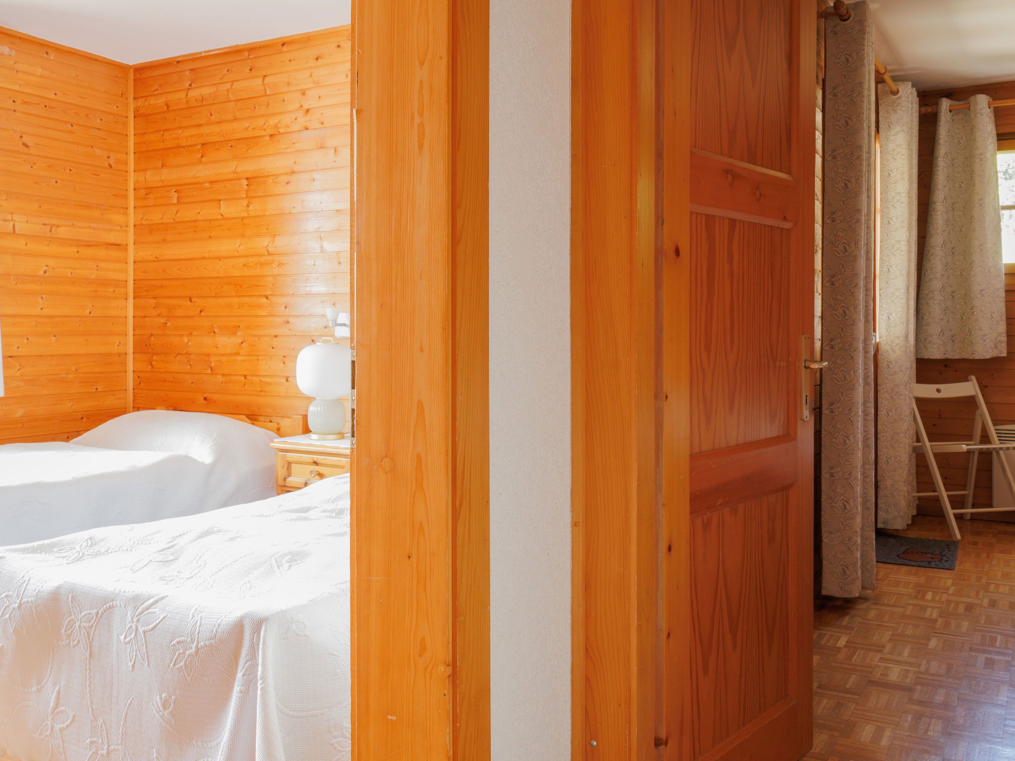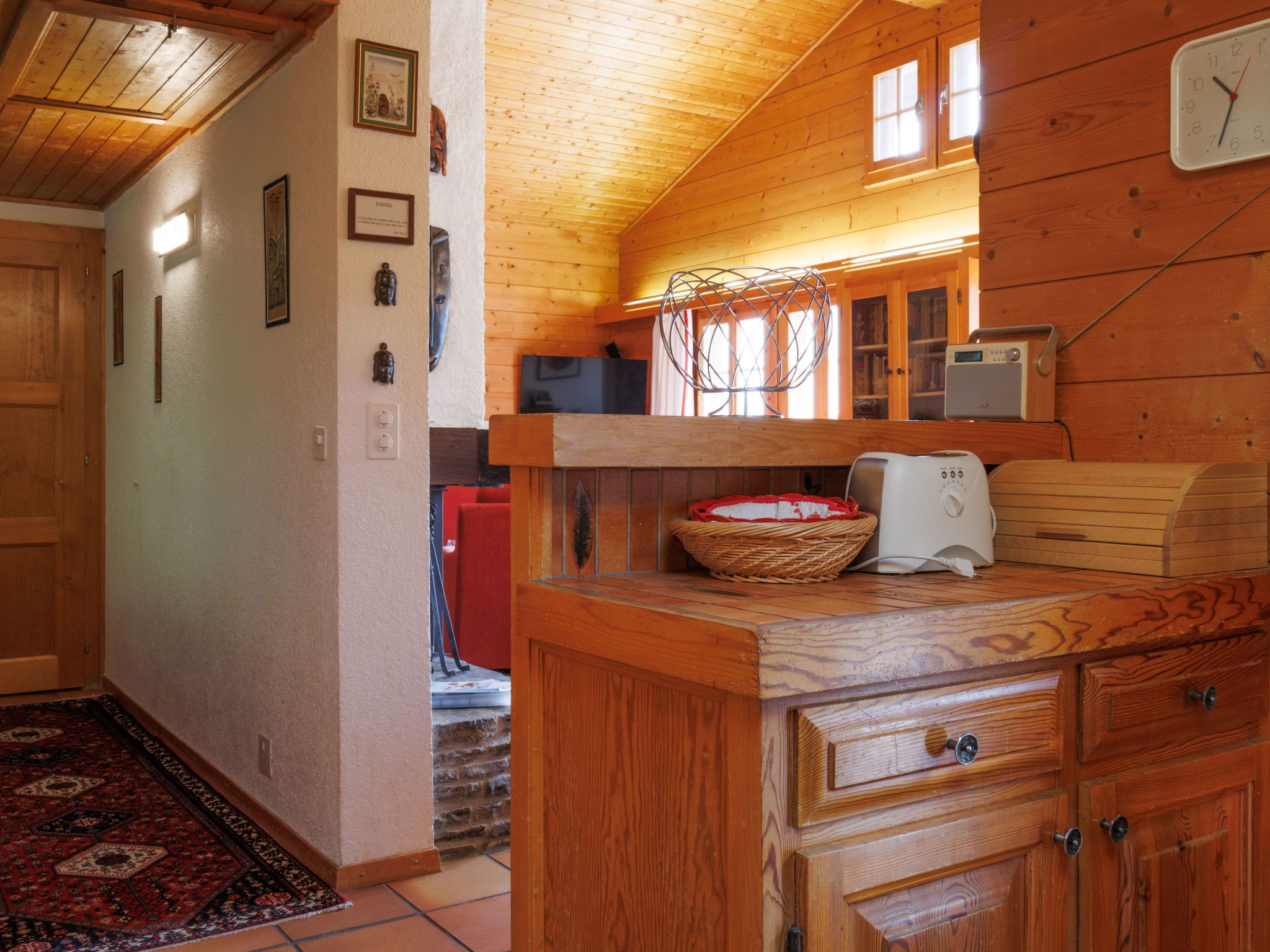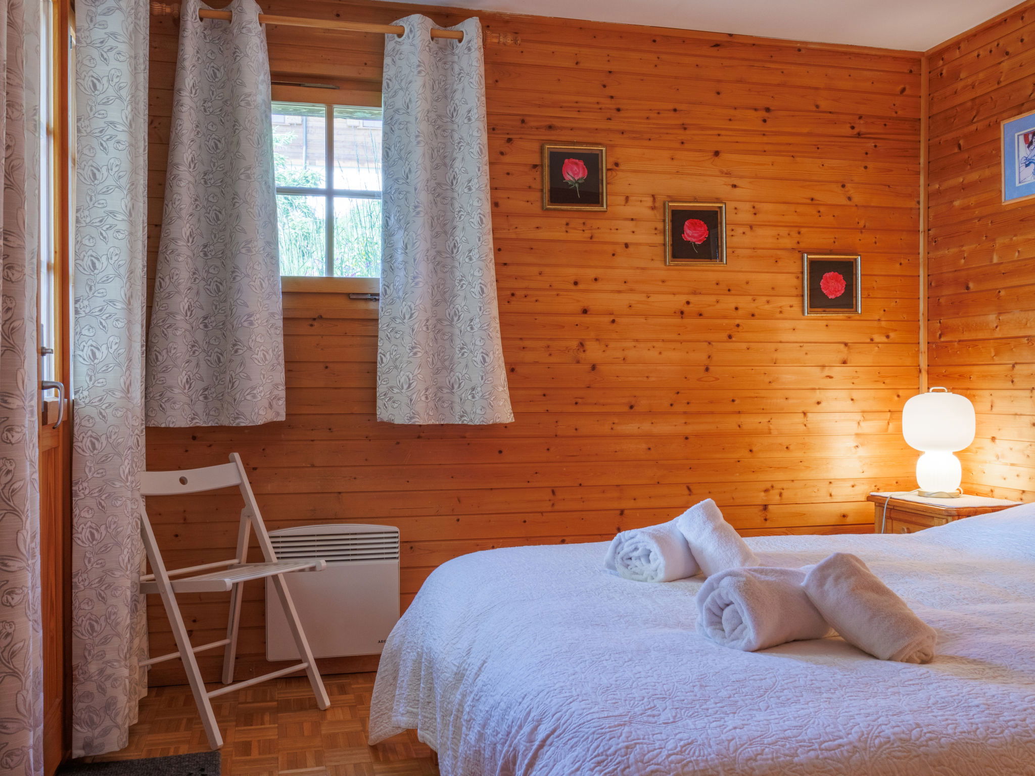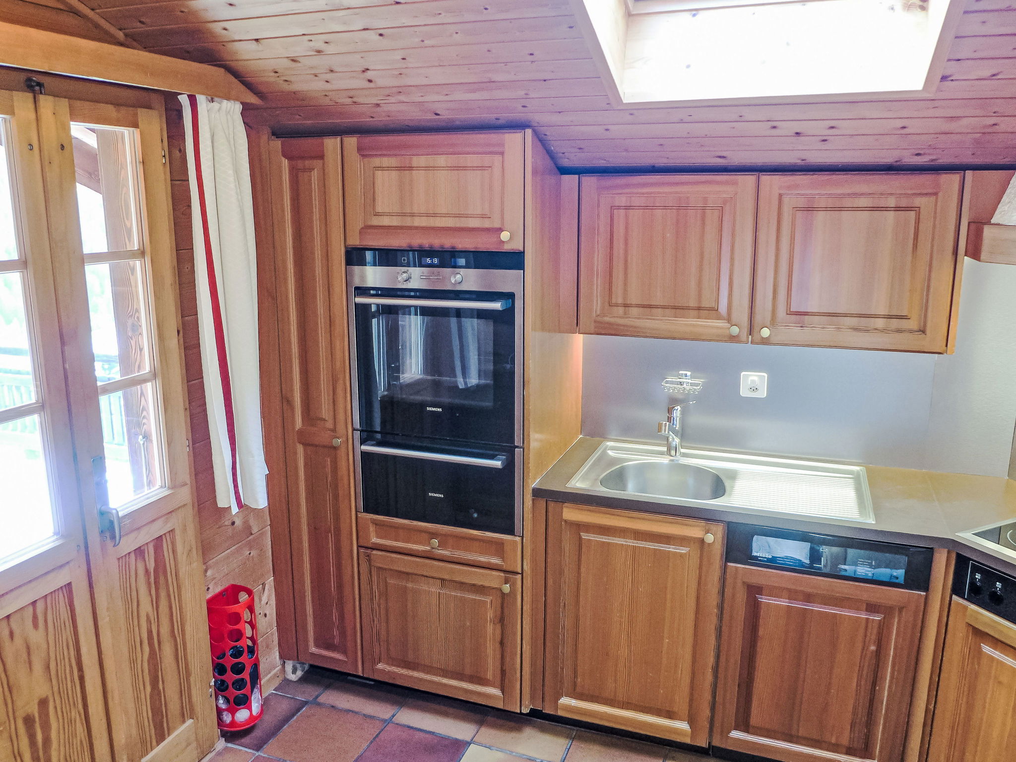 "Les Clarines", 4-room chalet 100 m2 on 2 levels. Tasteful and wooden furniture furnishings: living/dining room with open-hearth fireplace, dining table, dining nook, cable TV and radio. Open kitchen (oven, dishwasher, 4 ceramic glass hob hotplates, microwave, freezer, electric coffee machine, Capsules for coffee machine (Nespresso) extra, raclette grill, fondue Set (cheese)). Exit to the balcony. Sep. WC. On the lower ground floor: 1 room with 1 french bed (160 cm, length 200 cm). Exit to the terrace. 2 rooms, each room with 2 beds (90 cm, length 190 cm). Bath/WC, shower. Electric heating. Balcony, south facing position and, east facing position, small terrace, south facing position. Balcony furniture, box-room. Beautiful panoramic view of the mountains, the countryside and the resort. Facilities: iron, hair dryer. Internet (WiFi, free). Garage (1 car), height 180 cm. Please note: non-smoking house. Maximum 2 pets/ dogs allowed.