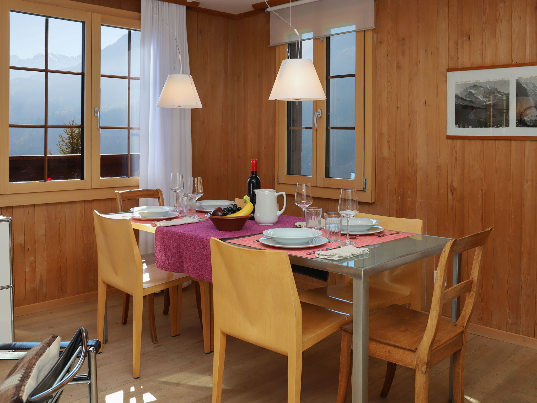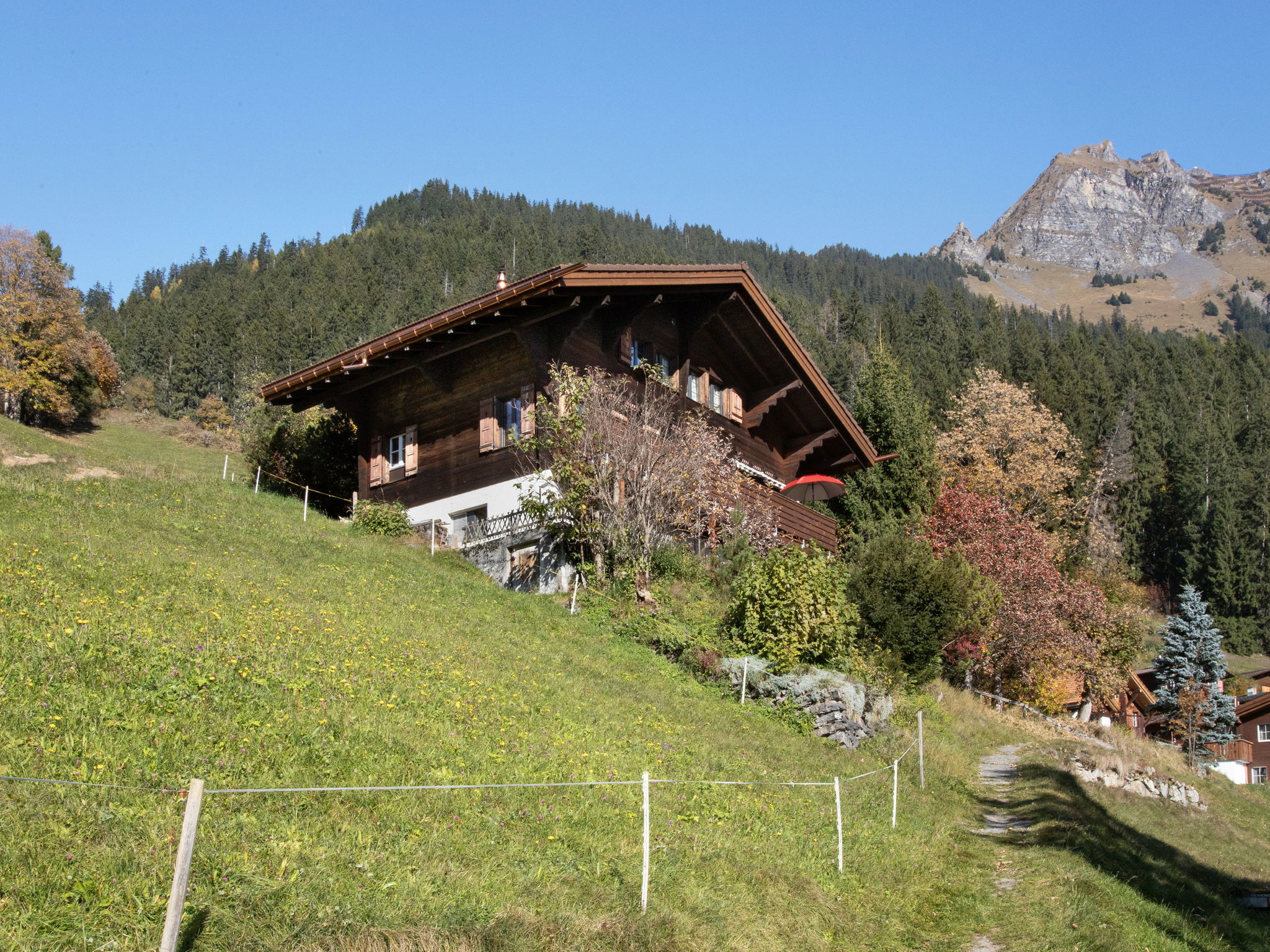 "Jungfrau a d Ledi", 3-room chalet 75 m2. Spacious, partly renovated, modern and tasteful furnishings: living/dining room 30 m2 with 1 bed " 4.2 km, railway station "Wengen" 1.2 km. Cable car 1 km, skisport facilities 1 km, ski school 1 km, children's ski school 1 km. Well-known lakes can easily be reached: Thunersee 13 km, Brienzersee 13 km. Please note: car-free holiday complex. Arrival via mountain railway.