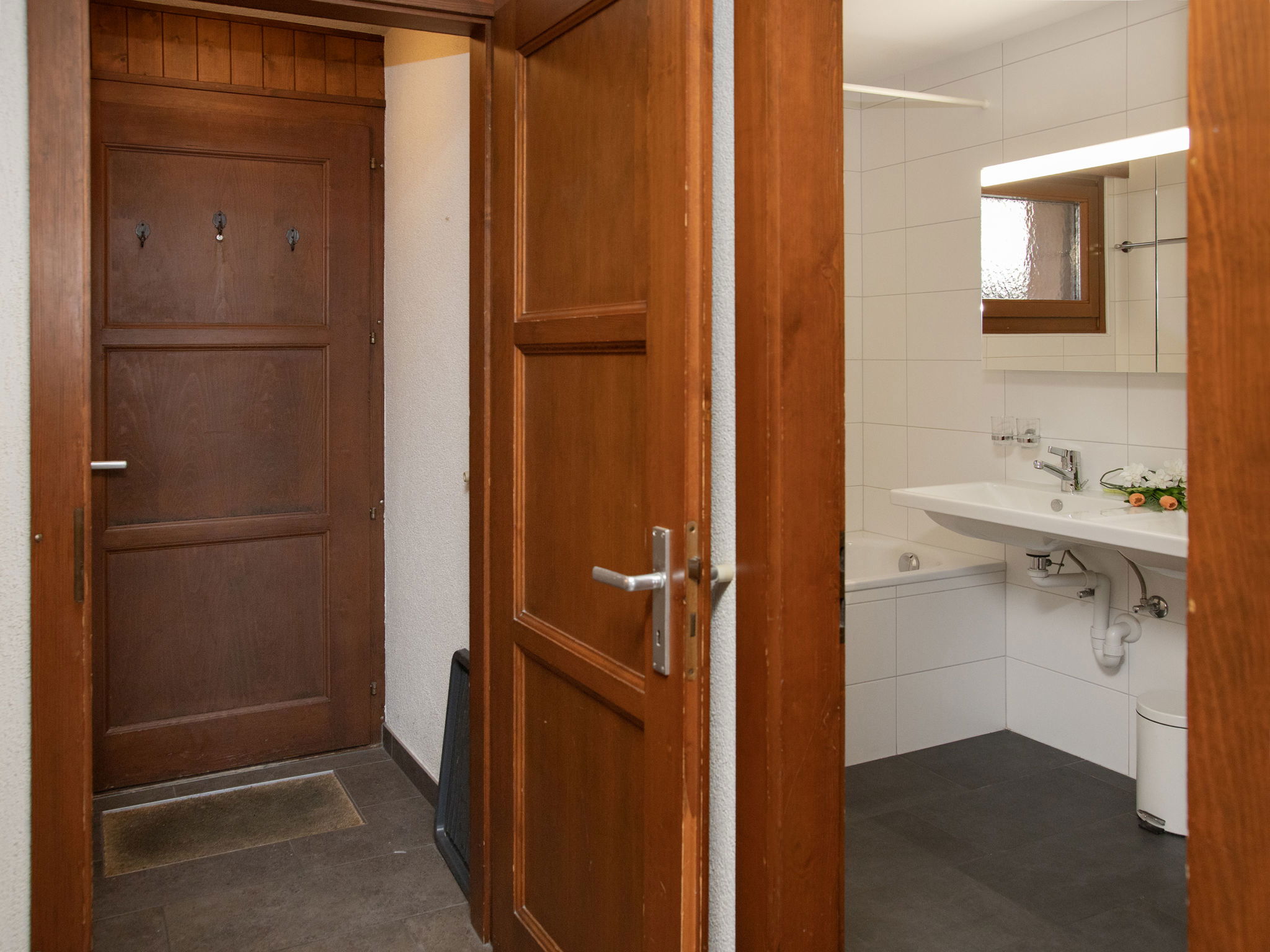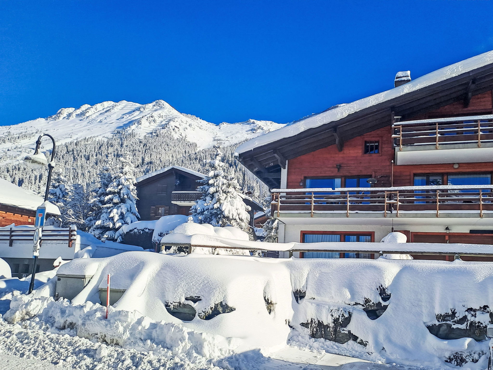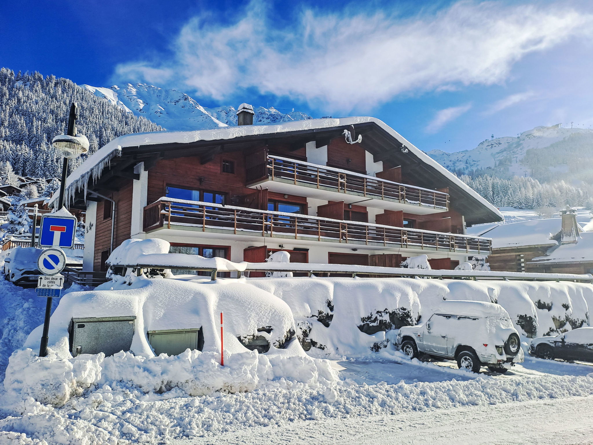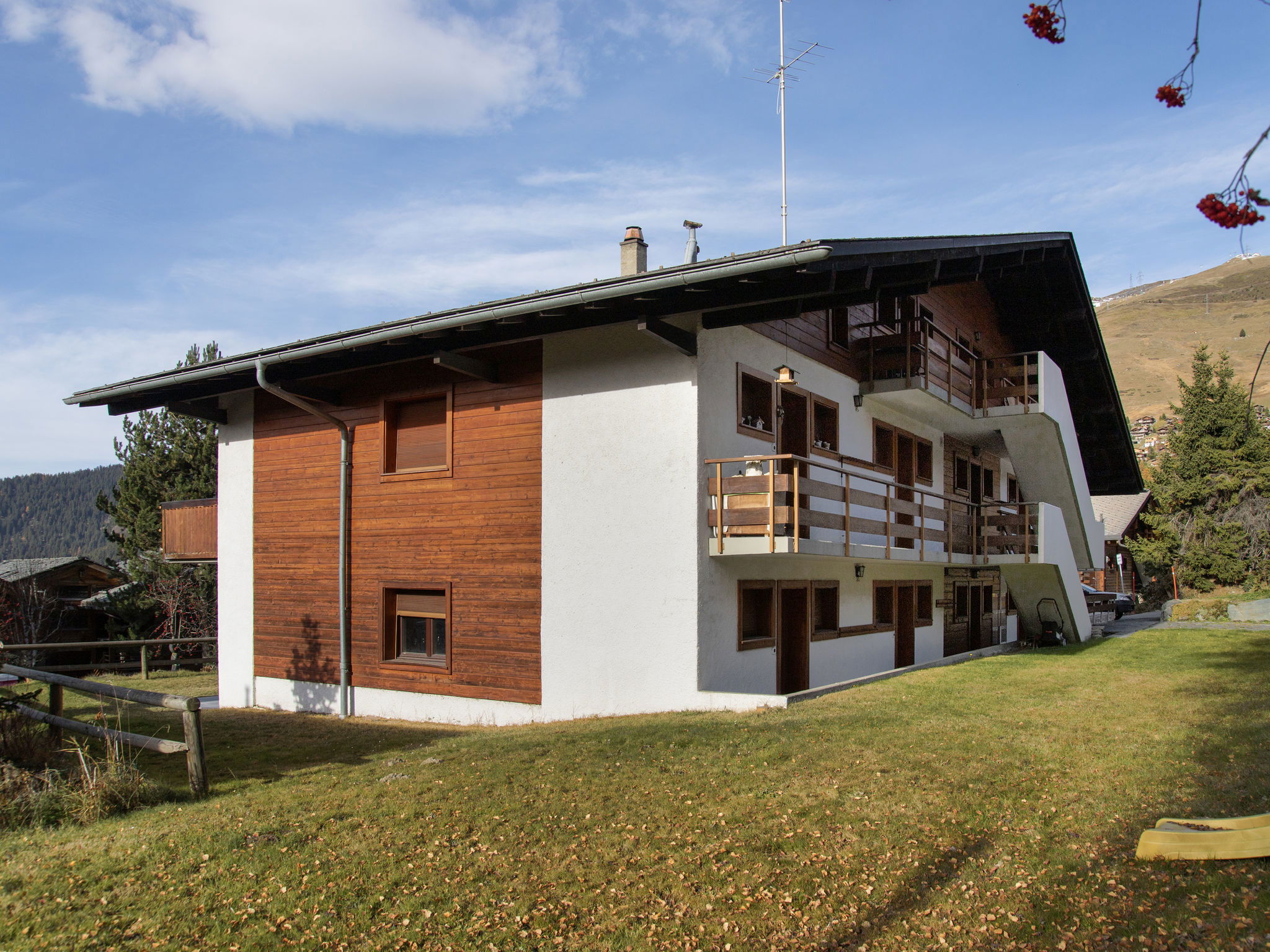Small apartment house "Le Pigne". In the district of des Esserts, 1.9 km from the centre of de la Station, in a quiet, sunny position, 30 m from the skiing area, south facing position. In the house: central heating system. Motor access to the house. Shop 1.9 km, grocery 1.4 km, supermarket 1.9 km, restaurant 400 m, bar 1.9 km, bakery 1 km, café 400 m, bus stop 20 m, indoor swimming pool 2.8 km. Golf course (18 hole) 150 m, tennis 2.8 km, riding stable 2.8 km, sports centre 2.8 km, chair lift 2.7 km, gondola lift 1 km, skisport facilities 2.4 km, ski bus stop 20 m, ski school 2.5 km, ski-kindergarten 2.5 km, ice rink 2.8 km, children's playground 1.9 km. Please note: In case of good snow conditions, the house is accessible on skis. Rouge drag lift 80 m.