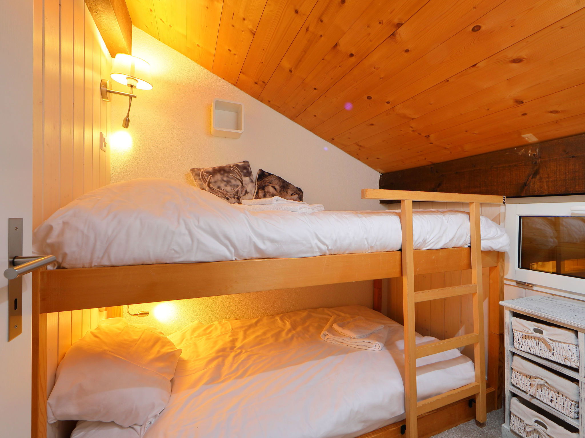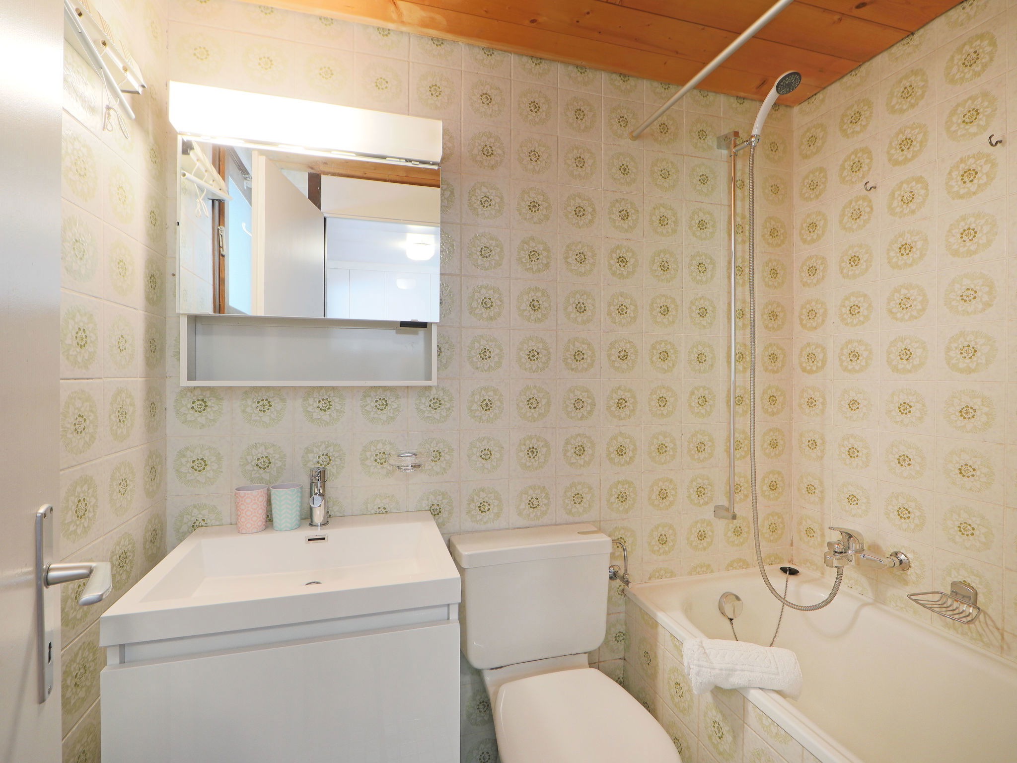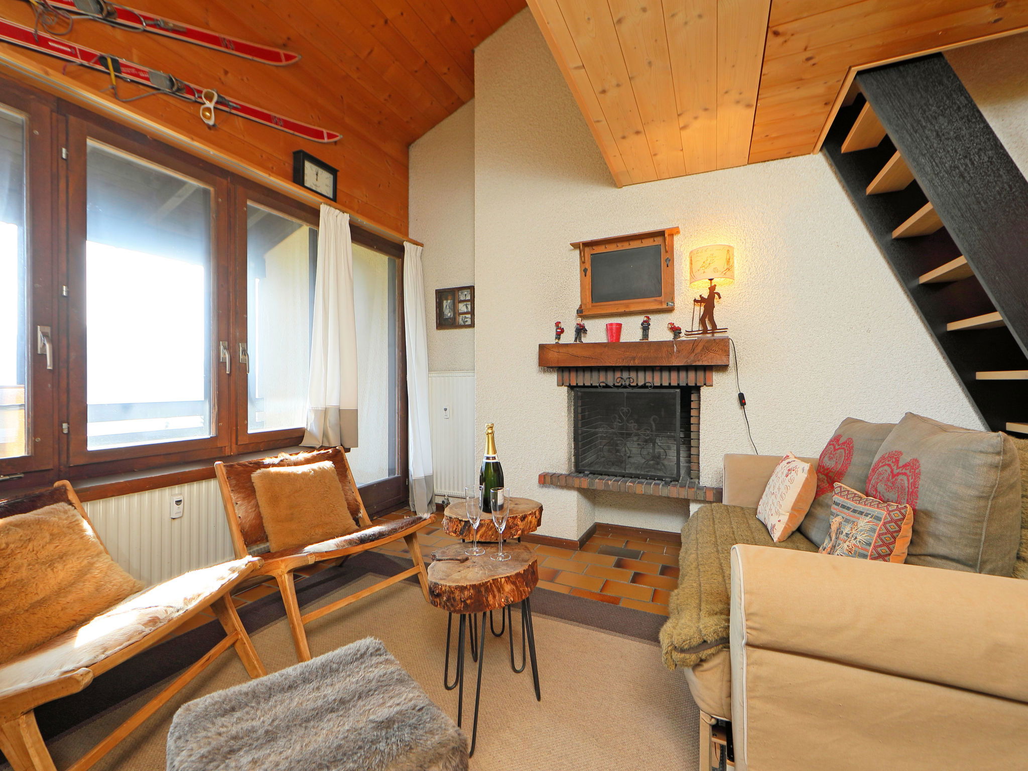 "Les Petites Maraîches 132/389", 3-room maisonette 50 m2, south facing position. With sloping ceilings, partly renovated in 2016, comfortable furnishings: living/dining room with open-hearth fireplace, dining table and TV (flat screen), DVD. Exit to the balcony, south facing position. Small, open kitchen in the entrance (oven, dishwasher, 4 ceramic glass hob hotplates, toaster, kettle, electric coffee machine, raclette grill, fondue Set (chinoise, cheese)). Bath/WC. Upper floor: (steep stair), 1 children's room with sloping ceilings, ceiling height 120 - 210 cm, without window, without wardrobe with 1 x 2 bunk beds (90 cm, length 200 cm). 1 room with sloping ceilings, ceiling height 70 - 210 cm, without wardrobe with 2 beds (90 cm, length 200 cm). Balcony 20 m2, south facing position and, east facing position. Balcony furniture. Very beautiful panoramic view of the mountains. Facilities: hair dryer. Internet (WiFi, free). Parking space n 132/389. Maximum 1 pet/ dog allowed.