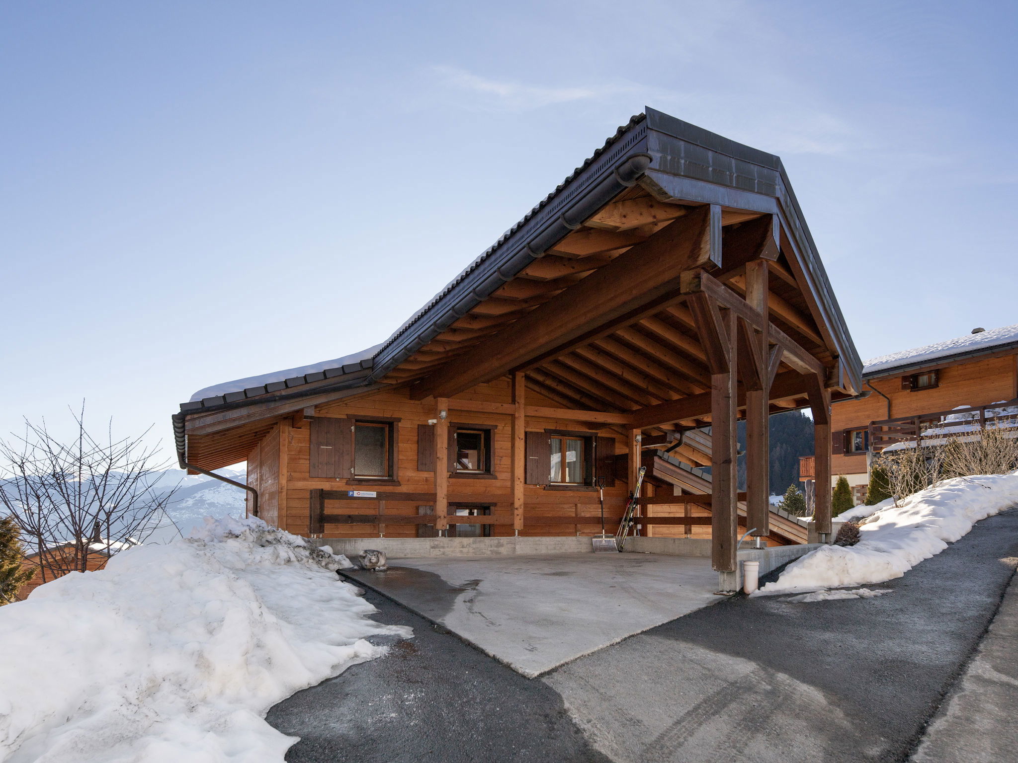 Mayens de Chamoson 3 km from Ovronnaz: Large chalet "L'Orchidée", 2 storeys, built in 2009. In the district of Parmey, 3.3 km from the skiing area. In Winter: please take snow chains, 4x4 car recommended in winter. Grocery 3 km, restaurant 71 m, bus stop 44 m, thermal baths 3.9 km. Tennis 2 km, ski bus stop 44 m, ski school 3 km, ski-kindergarten 3.3 km. Please note: car recommended, no lift. Ski bus (free of charge). Owner lives in separate semi-detached house.