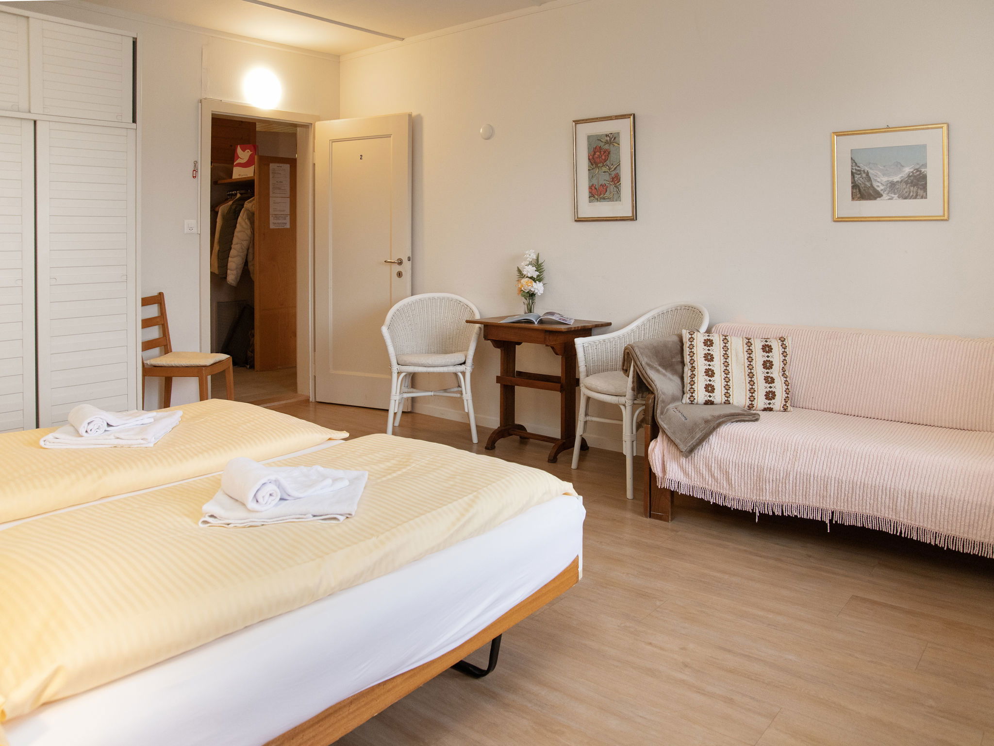 "Helene Apt.Diana", 4-room apartment 130 m2, on the upper floor. Spacious and bright, comfortable and cosy furnishings: living room with dining table, satellite TV, radio and CD-player. Exit to the balcony. 1 room with 2 beds " 3.8 km, railway station "Wengen" 750 m, outdoor swimming pool 1 km. Cable car, skisport facilities 600 m. Well-known lakes can easily be reached: Thunersee 13 km, Brienzersee 13 km. Please note: car-free holiday complex. Arrival via mountain railway. Additional accommodations can be booked. Arrival is only possible by train from Lauterbrunnen – 14 minutes driving time.
