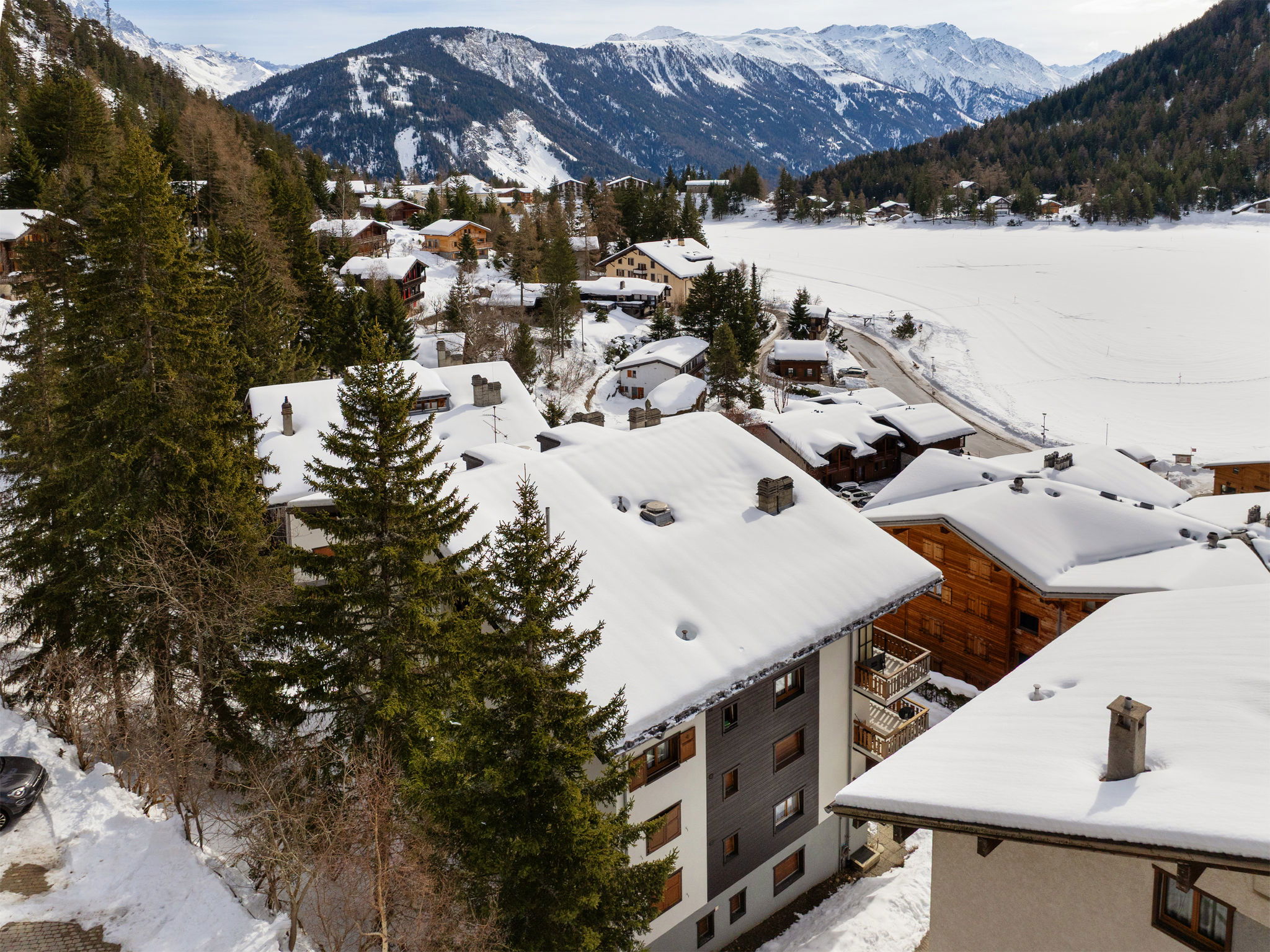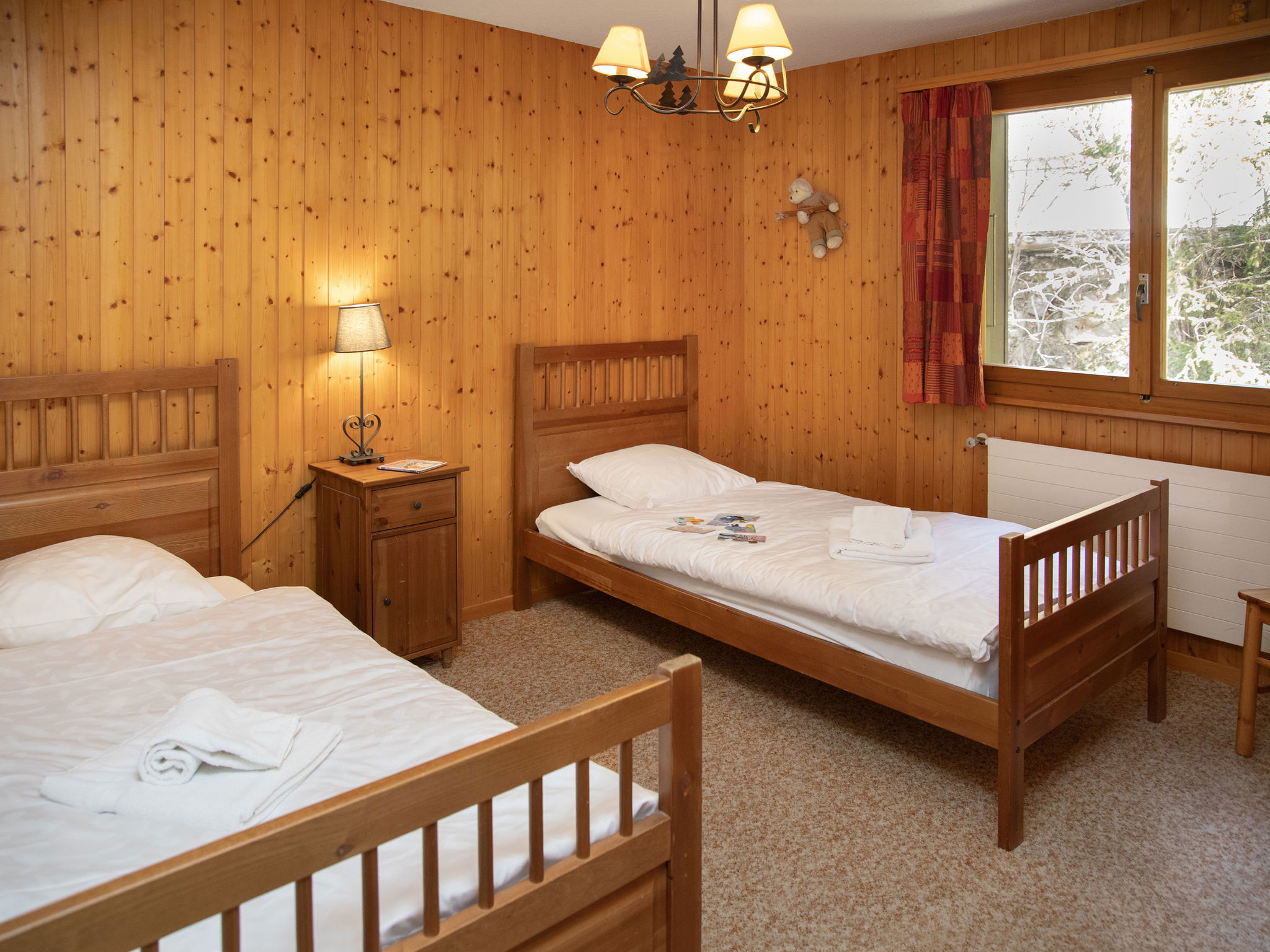 Beautiful apartment block "Parc", surrounded by trees. In the centre of la station, 30 m from the edge of the forest, 100 m from the lake, in a cul-de-sac. In the house: lift, storage room for skis, central heating system. Motor access to 50 m from the house. (10 steps). Public parking 850 m. Shop 200 m, restaurant 100 m, bakery 350 m, bus stop 50 m, outdoor swimming pool 1 km. Tennis 300 m, cable car 850 m, ski school 300 m, ski-kindergarten 350 m, ice rink 800 m, children's playground 600 m, fishing possibilities.