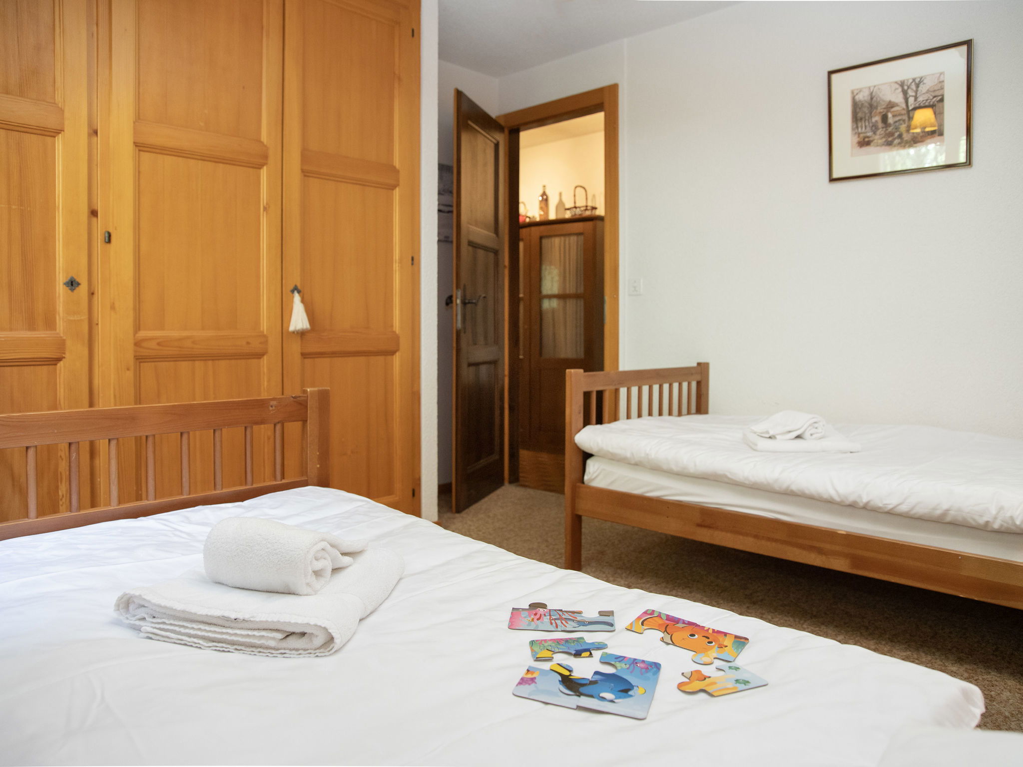 "Parc B 431", 3-room apartment 75 m2, on the top floor. Practical and comfortable furnishings: living/dining room with open-hearth fireplace and cable TV. Exit to the balcony. 1 room with 1 french bed. 1 room with 2 beds. Kitchenette (oven, dishwasher, electric coffee machine, Capsules for coffee machine (Nespresso) extra, raclette grill, fondue Set (cheese)). Bathroom. Balcony furniture. Beautiful view of the lake and the mountains. Facilities: Internet (WiFi, free). Parking space n 13 (roofed) at the house. Please note: non-smokers only. Maximum 1 pet/ dog allowed.