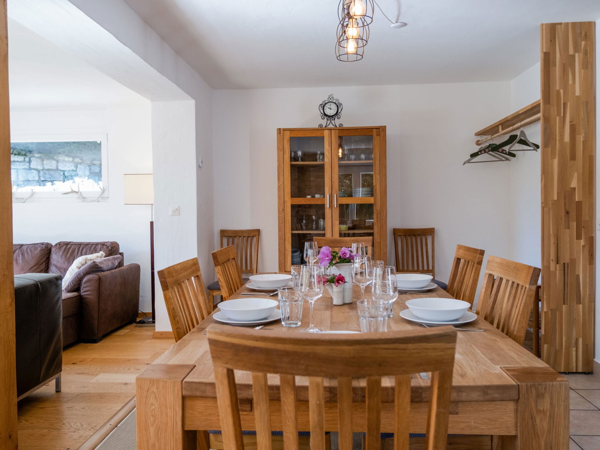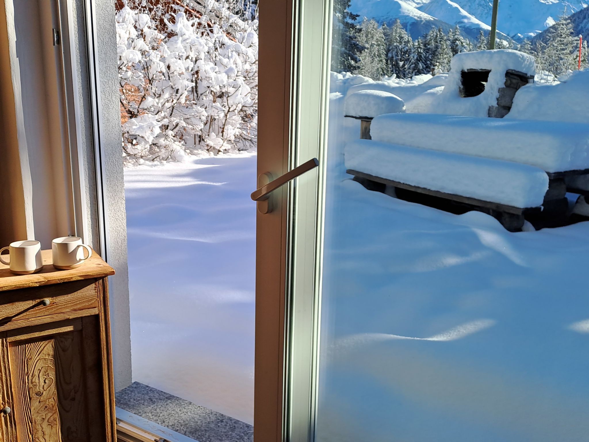 "Mon Rêve", 4-room chalet 100 m2 on 2 levels. Spacious, renovated in 2021, tasteful furnishings: large living/dining room with cable TV, electric heating and wood-burning stove. Exit to the garden, south-east facing position. Large kitchenette (dishwasher, 4 ceramic glass hob hotplates, toaster, kettle, microwave, electric coffee machine, Capsules for coffee machine (Nespresso) extra, raclette grill, fondue Set (cheese)). Shower/WC. Upper floor: 1 room with 1 french bed (1 x 160 cm, length 200 cm). Exit to the terrace. 1 room with 1 french bed (1 x 140 cm, length 200 cm). Exit to the terrace. 1 room with 2 x 2 bunk beds (90 cm, length 200 cm). Bathroom. South-east facing position, garden 50 m2, lawn 100 m2. Terrace furniture, barbecue, deck chairs. Panoramic view of the mountains. Facilities: washing machine, dryer, children's high chair, baby cot, hair dryer. Internet (WiFi, free). Please note: non-smokers only. Maximum 1 pet/ dog allowed.