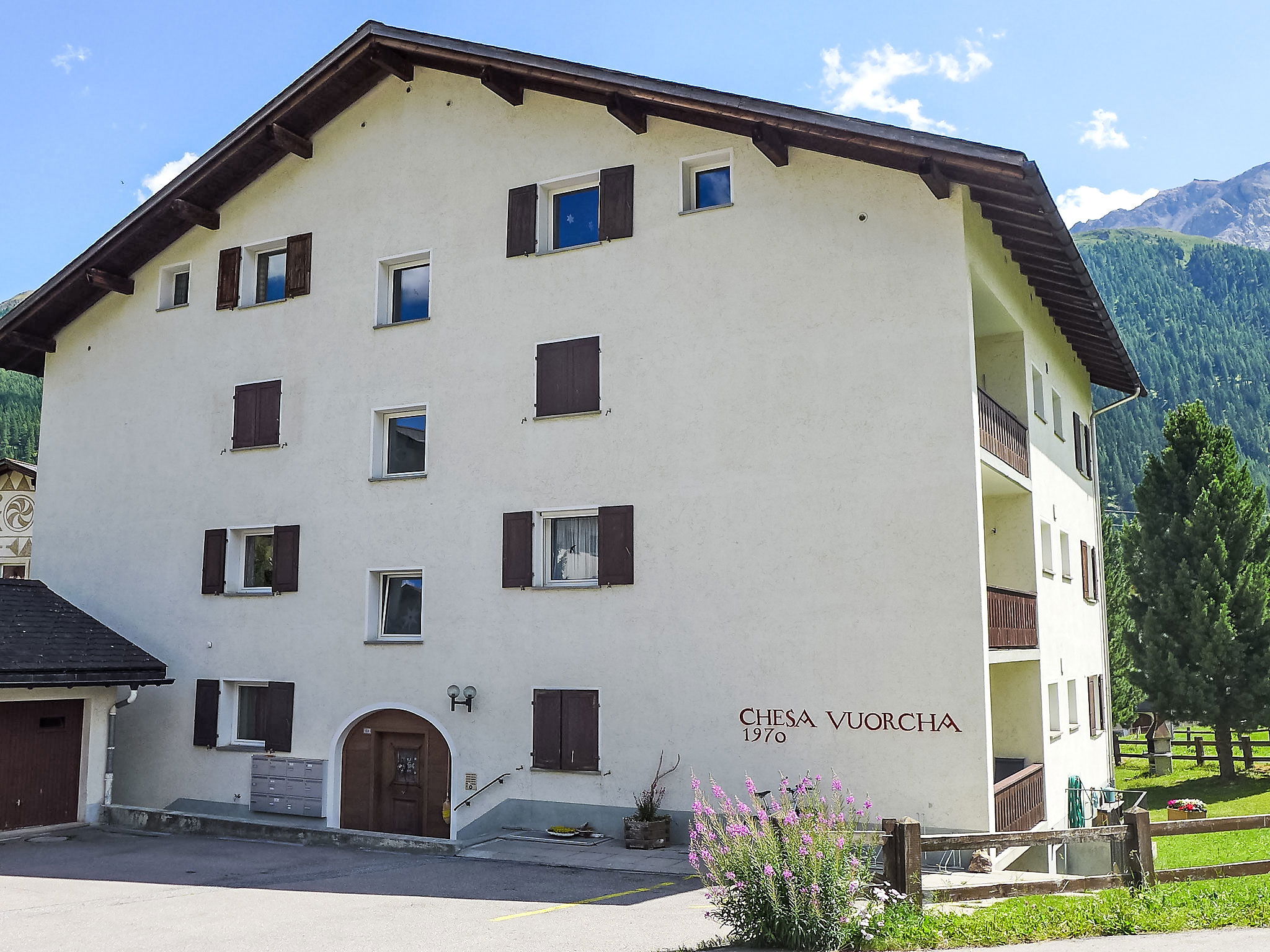 Chesa Vuorcha 17 km from St. Moritz: Comfortable apartment house "Chesa Vuorcha", 3 storeys, built in 1970. On the outskirts, in a sunny position, 17 km from the lake, 800 m from the skiing area, 500 m from the river, in a cul-de-sac. For shared use: property 600 m2, garden (fenced), lawn for sunbathing (fenced). Barbecue, children's playground. In the house: storage room for skis, central heating system, washing machine, tumble dryer (for shared use, extra), drying room. Parking at the house, single garage. Shop 300 m, grocery, restaurant 300 m, bakery 450 m, café 450 m, bicycle rental 600 m, bus stop "Staziun" 300 m, railway station, indoor swimming pool 18 km, lake St. Moritzer See 17 km. Golf course (18 hole) 600 m, surf school 23 km, tennis 1 km, indoor tennis centre 19 km, minigolf 18 km, riding stable 4 km, walking paths from the house 400 m, cycle lane 600 m, cable car 15 km, ski lift 800 m, slopes 800 m, ski rental 800 m, ski bus stop 200 m, ski school 700 m, children's ski school, sled run 1 km, cross country ski track 600 m, ice rink 700 m, children's playground 600 m. Nearby attractions: Nationalparkzentrum in Zernez 17 km, Caferama Badilatti 600 m. Well-known ski regions can easily be reached: Zuoz 800 m, Corviglia 15 km, Diavolezza - Lagalb 28 km. Well-known lakes can easily be reached: St. Moritzer See 17 km, Silvaplaner See 23 km, Silser See 29 km. Hiking paths: Schweizer Nationalpark / Val Trupchun, Via Engiadina, Muottas Muragl. Please note: no lift. Ski bus (free of charge). Free ski bus service to the ski region Zuoz.