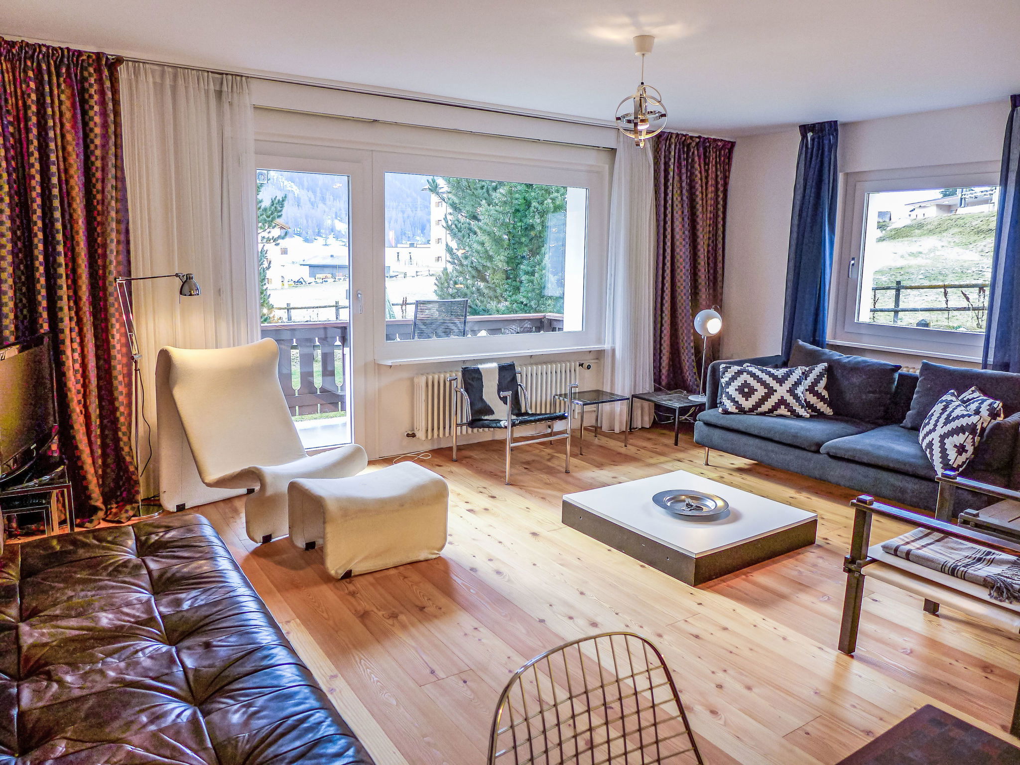 "Chesa Vuorcha", 3-room apartment 100 m2, on the upper ground floor. Spacious and bright, partly renovated in 2014, comfortable and modern furnishings: open living/dining room with TV. Exit to the balcony, south facing position. 1 room with 1 double bed (2 x 90 cm, length 200 cm). Exit to the balcony. 1 room with 1 double bed (2 x 90 cm, length 200 cm). Small, open kitchen (oven, dishwasher, 4 ceramic glass hob hotplates, toaster, kettle, electric coffee machine, Capsules for coffee machine (Nespresso) extra, fondue Set (chinoise, cheese)). Bath/WC, sep. WC. Heating. Wooden floors. Beautiful view of the mountains and the countryside. Facilities: hair dryer. Internet (WiFi, free). Parking, garage space n Cramer, height 200 cm, width 220 cm. Please note: suitable for families. Non-smokers only. Maximum 1 pet/ dog allowed.