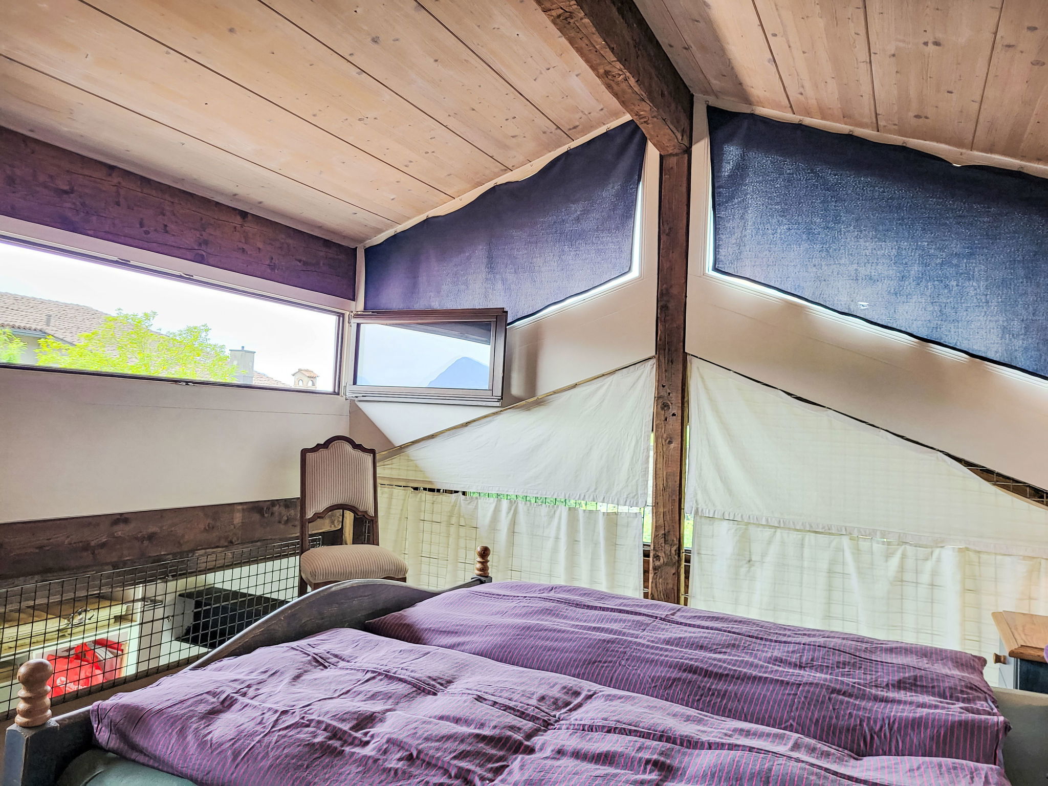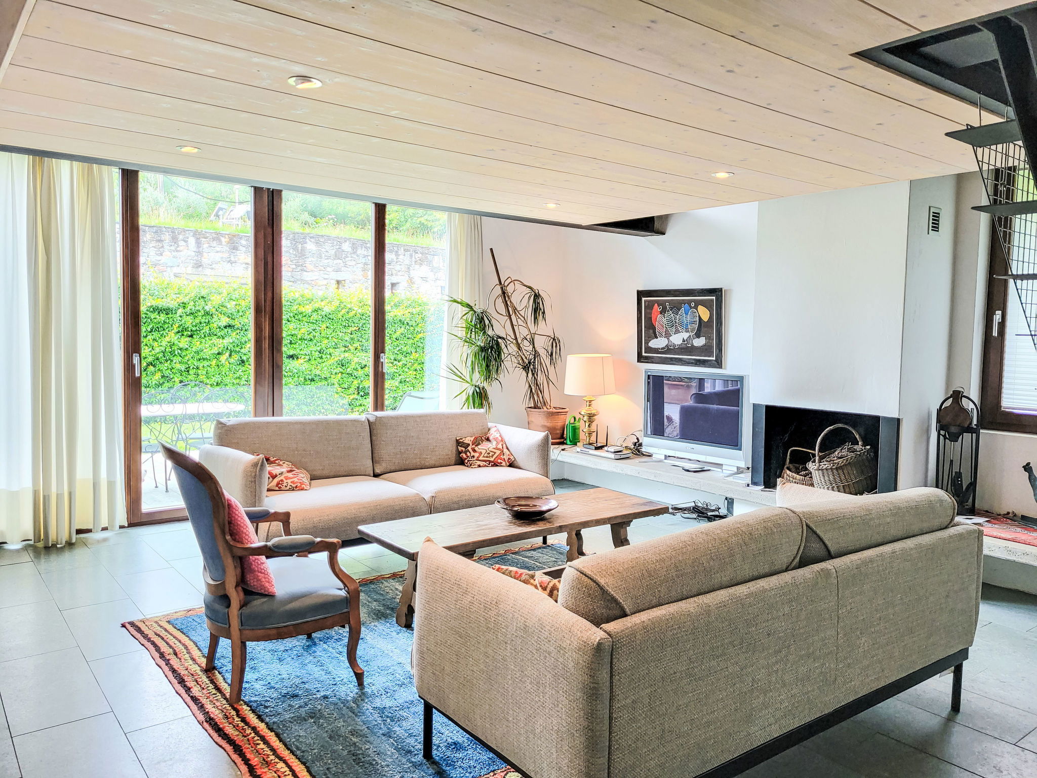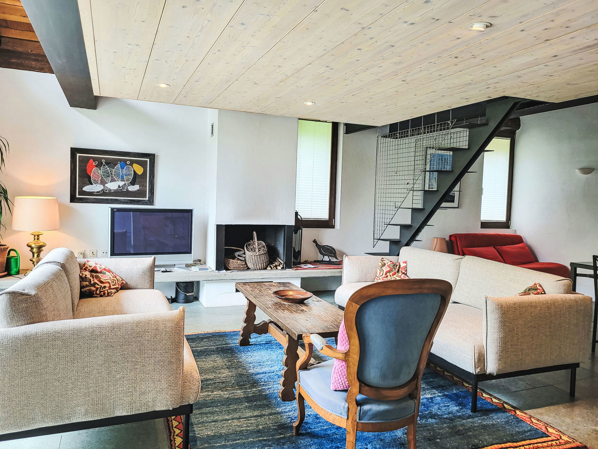 "Cantagallo", 1-room apartment 73 m2 on 2 levels, on the ground floor. Spacious and bright, tasteful and cosy furnishings: open large living/dining room with 1 sofabed (140 cm), open-hearth fireplace, dining table, cable TV and radio. Exit to the patio. Open gallery with 1 double bed (160 cm, length 200 cm). Large, open kitchen (oven, 4 ceramic glass hob hotplates, toaster, kettle, microwave, freezer, electric coffee machine, Capsules for coffee machine (Delizio (Migros)) extra). Bath/WC. Floor heating. Large patio. Terrace furniture, barbecue, deck chairs (2). View of the countryside and the resort. Facilities: Internet (WiFi, free). Please note: non-smokers only. Maximum 1 small pet/ dog allowed. Instead of an enclosed bedroom, some sleeping areas are located in an open-plan area (gallery, alcove, etc.). NL-00004399