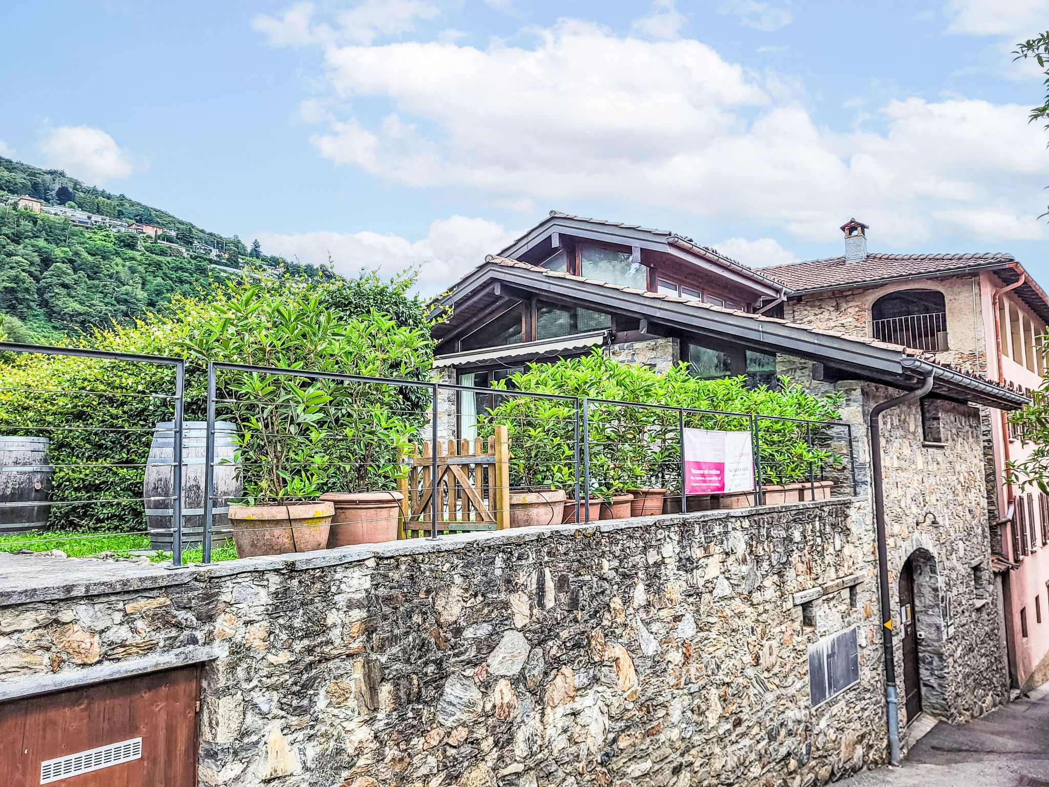 Agno 3 km from Lugano: Modern, cosy "rustico" cottage "Cantagallo", built in 2002, surrounded by vineyards. On the outskirts, in the district Malcantone, in a secluded, quiet, sunny position, 1.2 km from the lake, in a cul-de-sac, south-west facing position. Private: property, garden 100 m2 (fenced) with lawn. 20 m long motor access to the grounds. Stepped path (7 steps) to the house. Parking at the house. Shop 2 km, grocery 2 km, supermarket 2 km, restaurant, bus stop 200 m, railway station "Agno FLP" 1.5 km, swimming bay 2 km. Golf course (18 hole) 4.6 km, tennis 1.4 km, minigolf 4.3 km, walking paths from the house 10 m, cable car 15 km. Nearby attractions: Mercato Luino, IT 17 km, Mercato Ponte Tresa, IT 6 km, Swiss Miniatur, Melide 12 km, Chocolat Alprose, Caslano 4 km, Hermann Hesse Museum, Montagnola 7.3 km, Tamaro- und Splash+Spa, Rivera 20 km. Well-known ski regions can easily be reached: Airolo, Carì. Well-known lakes can easily be reached: Lago di Lugano, Lago Maggiore. Please note: car recommended. Object suitable for 2 adults + 1 child. The rustic "Cantagallo" is located just above the wine cellar Tenuta San Giorgio, which is produced wine. Ideal starting point for hikes and bike tours in the Malcantone. Wine tasting with appetizer included.