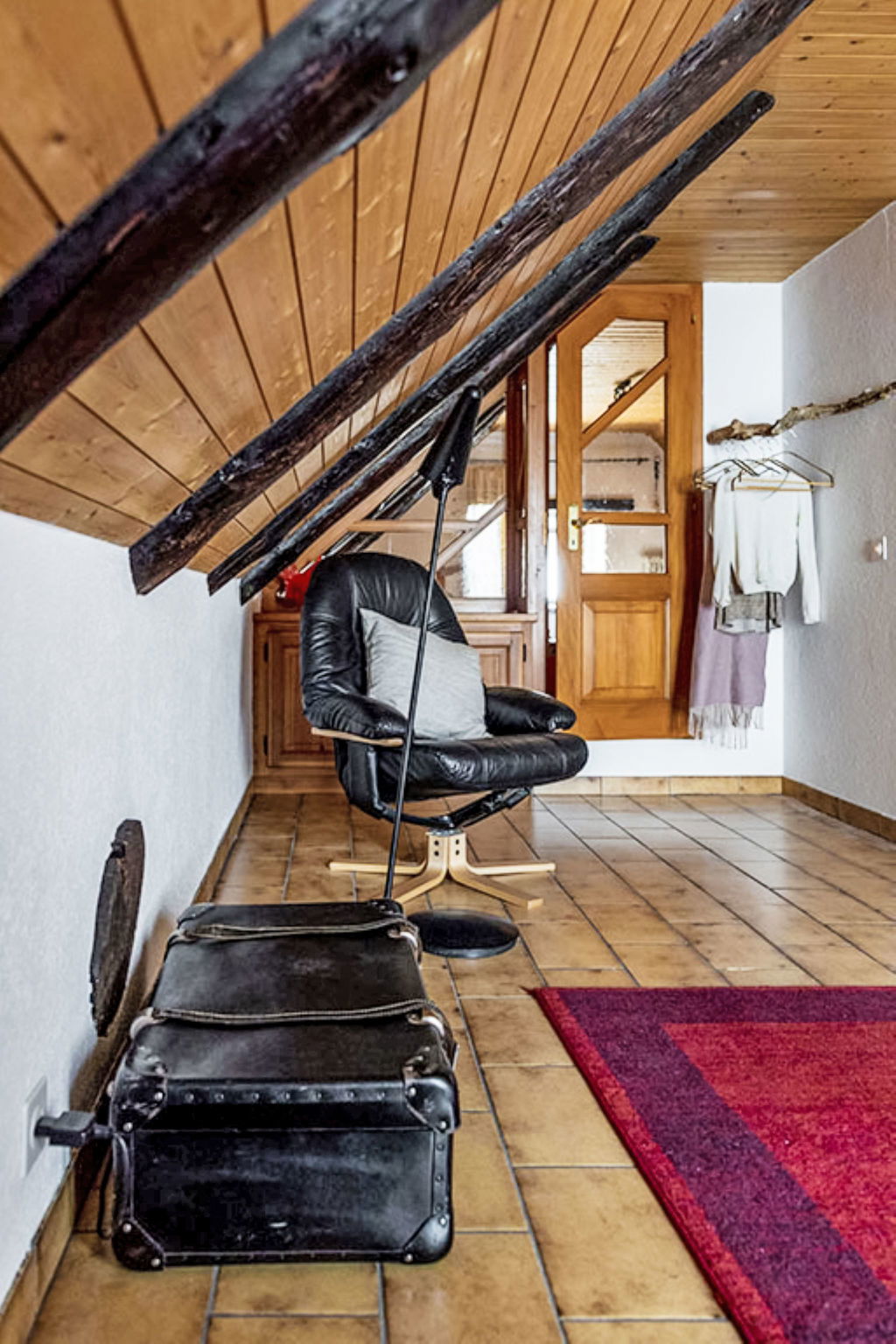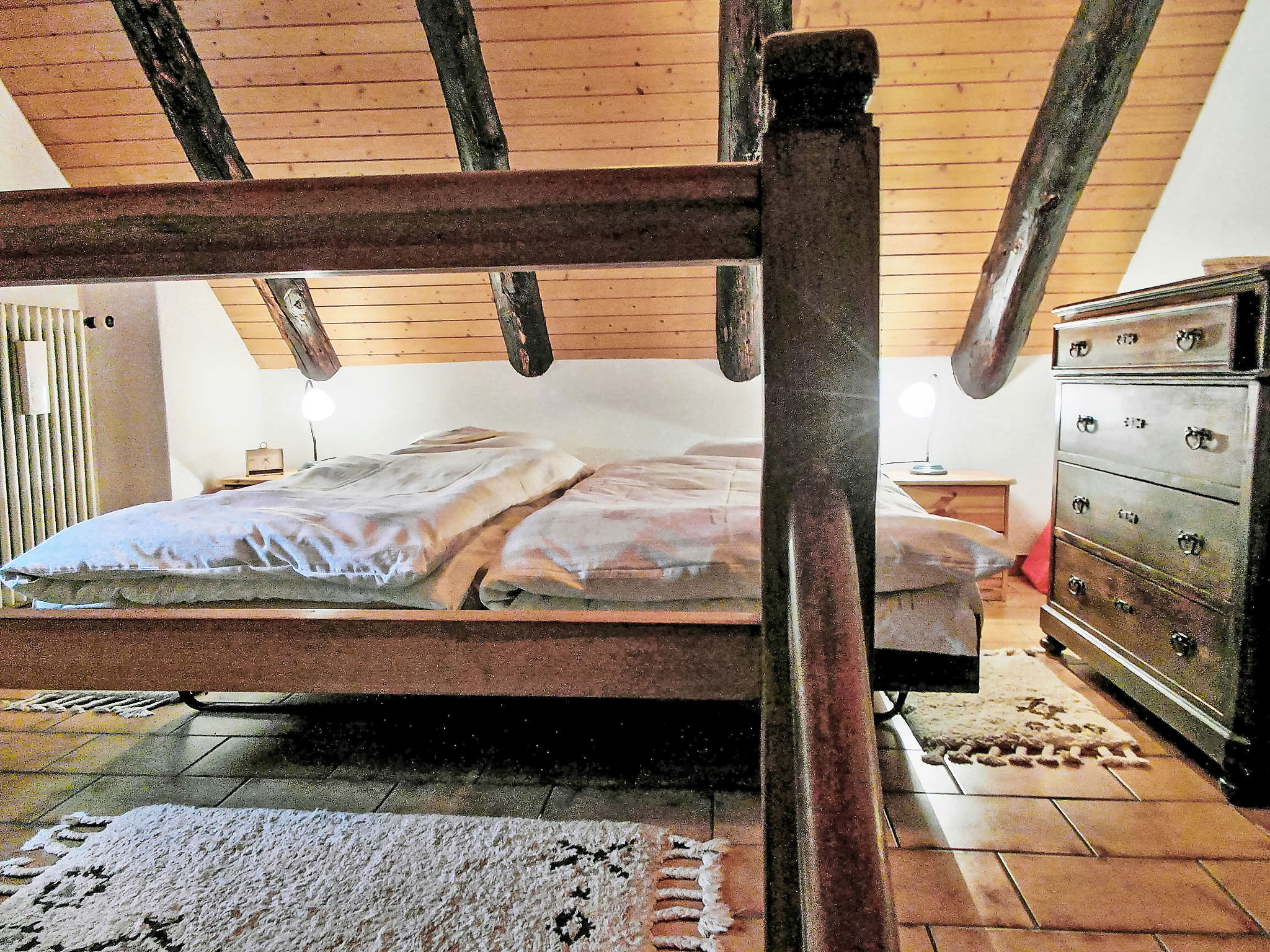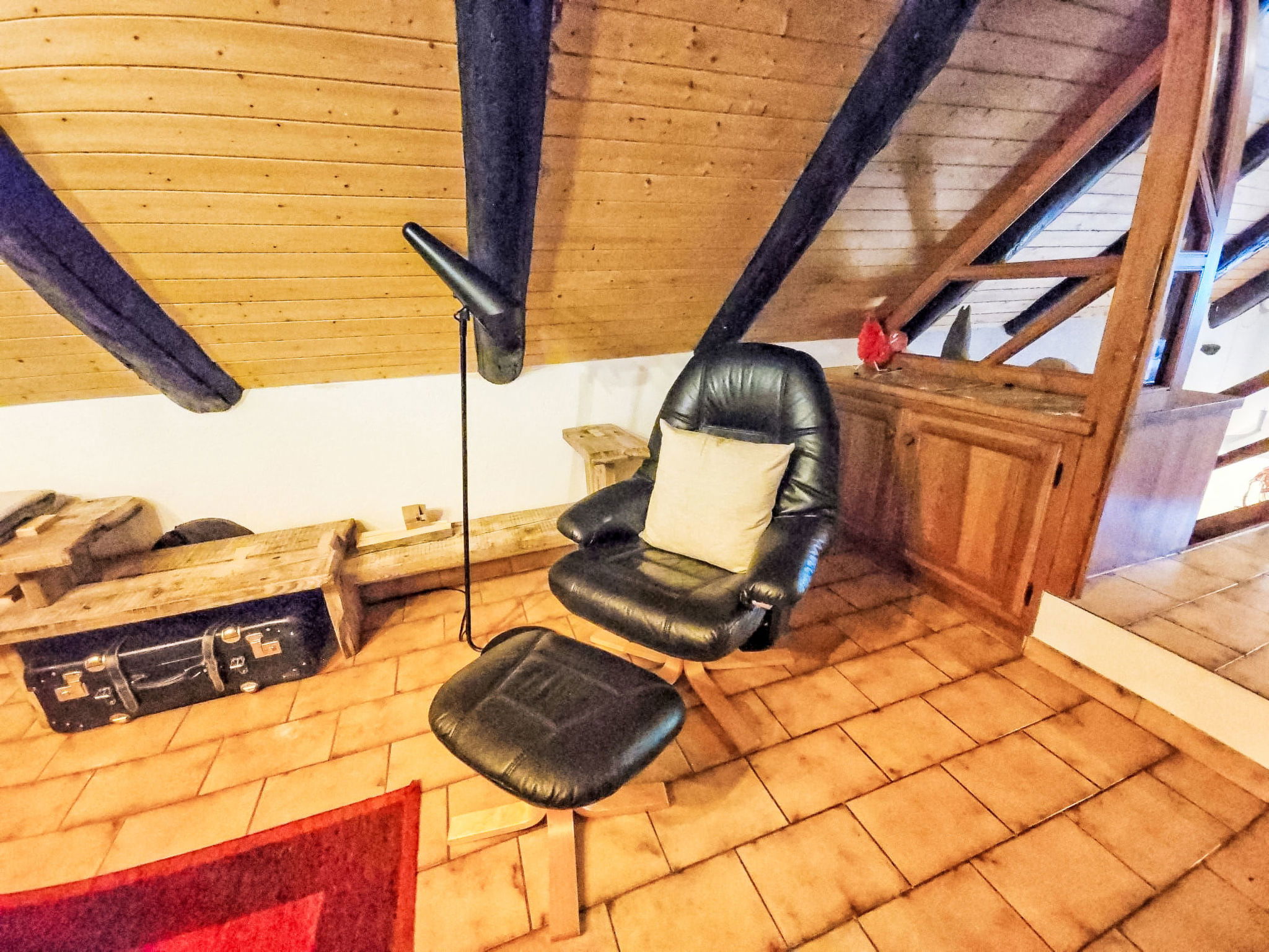4-room house 100 m2. Spacious, partly with sloping ceilings, comfortable and rustic furnishings: open living/dining room with open-hearth fireplace, dining table and satellite TV (flat screen), radio. Exit to the garden, to the terrace. 1 double bedroom with 1 french bed (140 cm, length 200 cm). Exit to the garden. Open kitchen (4 hot plates, oven, kettle, freezer, raclette grill, fondue Set (cheese)) with dining table. Bath/WC, shower/WC. Oil heating, boiler (200 litres). Upper floor: 2 rooms, each room with 2 beds (90 cm, length 190 cm). (electric coffee machine, Capsules for coffee machine (nespresso) extra). Terrace 18 m2. Beautiful view of the mountains and the countryside. Facilities: washing machine, dryer, hair dryer. Please note: non-smokers only. Maximum 1 small pet/ dog allowed. NL-00007352