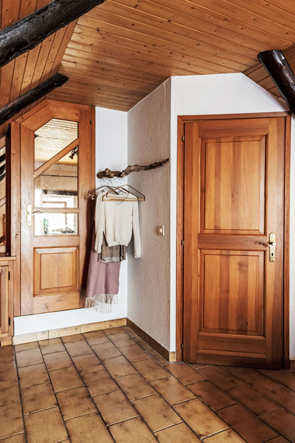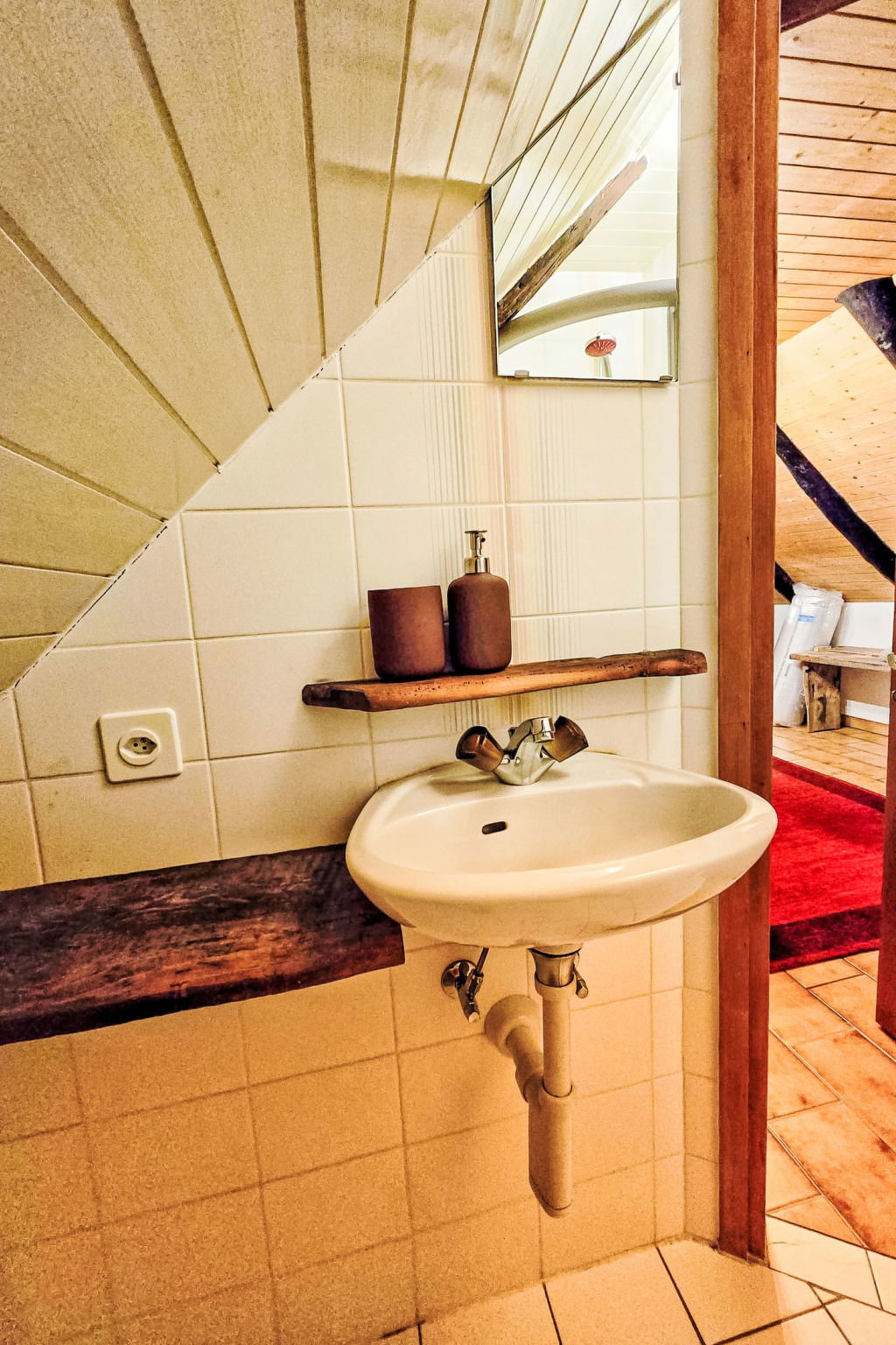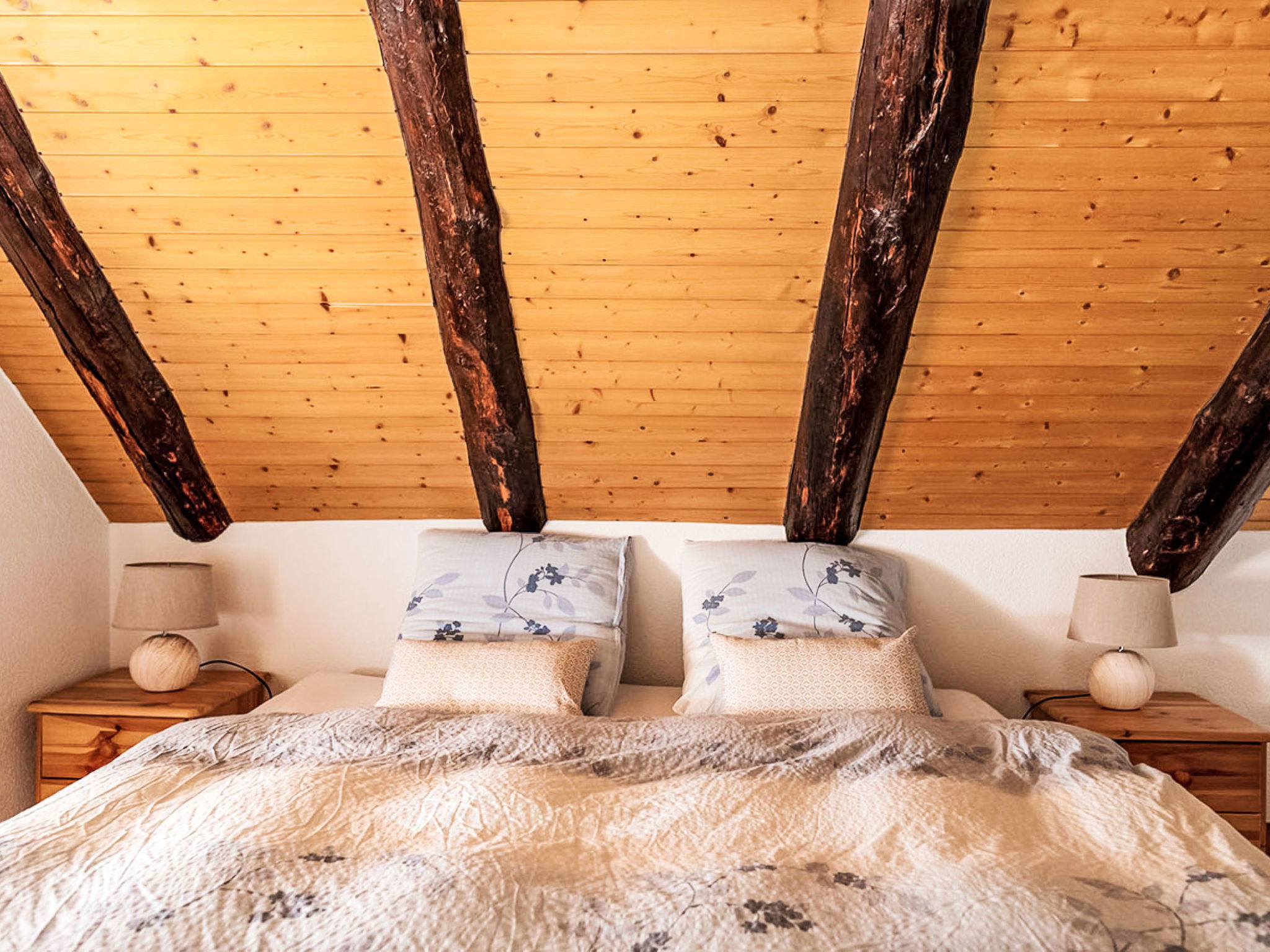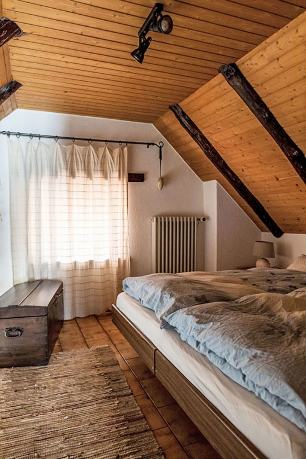 4-room house 100 m2. Spacious, partly with sloping ceilings, comfortable and rustic furnishings: open living/dining room with open-hearth fireplace, dining table and satellite TV (flat screen), radio. Exit to the garden, to the terrace. 1 double bedroom with 1 french bed (140 cm, length 200 cm). Exit to the garden. Open kitchen (4 hot plates, oven, kettle, freezer, raclette grill, fondue Set (cheese)) with dining table. Bath/WC, shower/WC. Oil heating, boiler (200 litres). Upper floor: 2 rooms, each room with 2 beds (90 cm, length 190 cm). (electric coffee machine, Capsules for coffee machine (nespresso) extra). Terrace 18 m2. Beautiful view of the mountains and the countryside. Facilities: washing machine, dryer, hair dryer. Please note: non-smokers only. Maximum 1 small pet/ dog allowed. NL-00007352