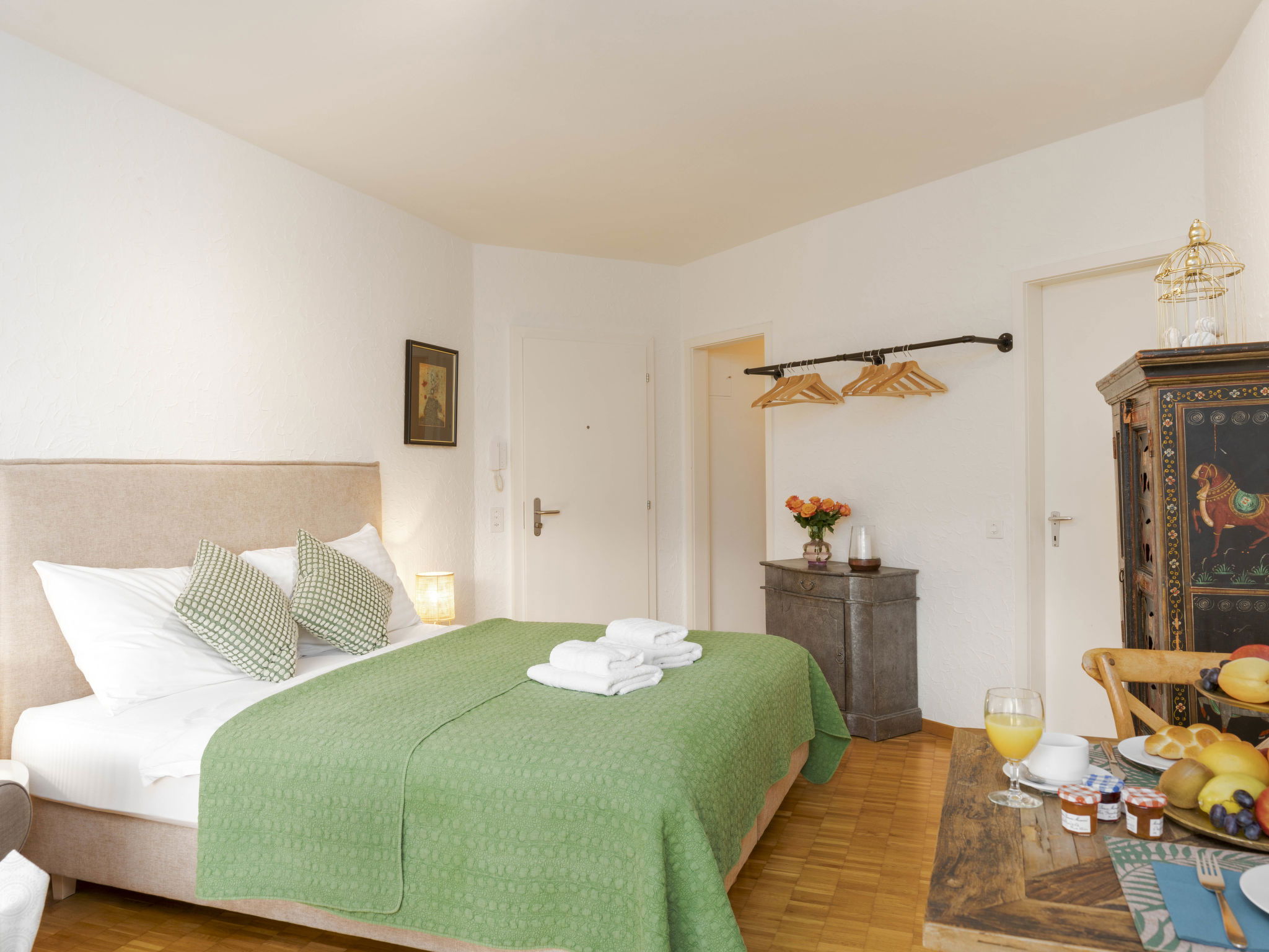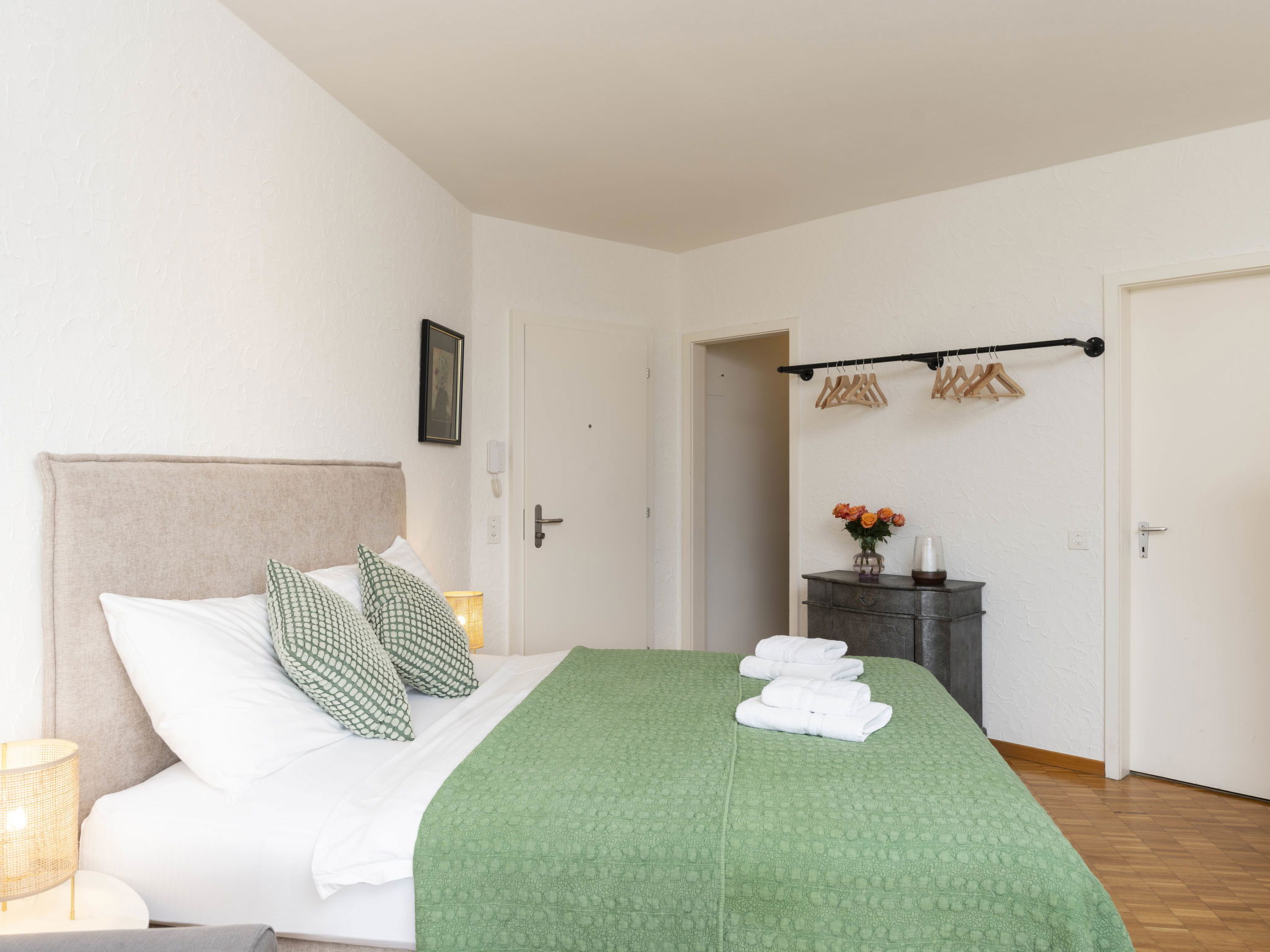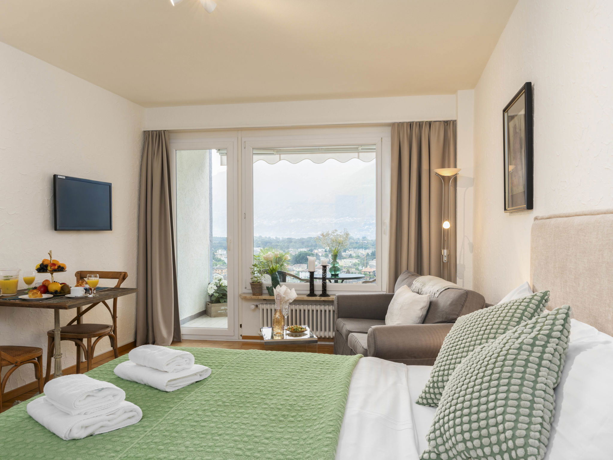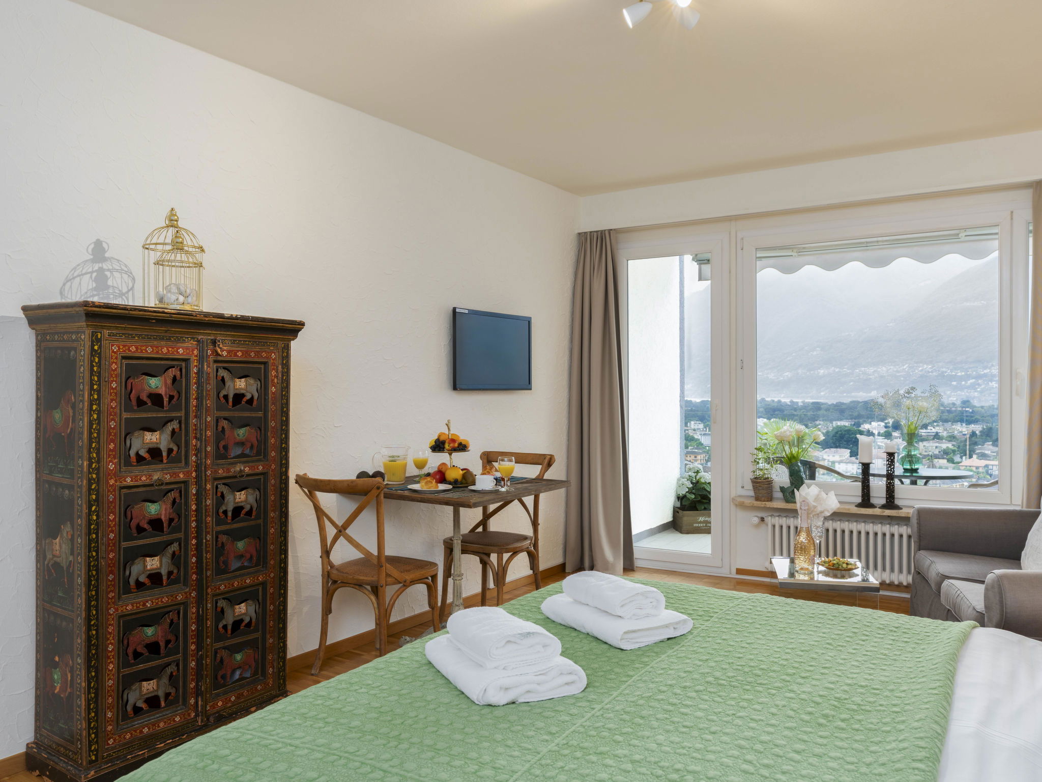 "Double Room Modern", 1-room apartment 35 m2, south facing position. Renovated: living/dining room with 1 double bed " 400 m, railway station "SBB-CFF Locarno-Muralto" 4.7 km, sandy beach "Bagno Pubblico Ascona" 1.3 km, bathing lake "Lago Maggiore" 1.3 km, lake Lago Maggiore 500 m. Golf course (18 hole) 1 km, tennis 1 km. Nearby attractions: Madonana del Sasso, Orselina, Locarno-Ascona, Ronco sopra Ascona, Falconeria, Kamelienpark, Piazza Grande, Castelli di Bellinzona, Monte Verità, Ascona, Brissago Inseln. Well-known lakes can easily be reached: Lago Maggiore, Lago di Lugano, Lago di Como, Lago di Orta. Hiking paths: Monte Veritè, Ronco s. Ascona, Valle Maggia, VMonte Tamaro - Monte Lema, Monte Tamaro - Monte Lema. Please note: baby equipment on request (extra). Loading and unloading of baggage is possible at the holiday house. Additional accommodations can be booked. Property ref. CH6612.250.1-24 is situated on the same property. ATTENTION - limited number of garage spaces and limited number of outdoor parking spaces directly at the house - MUST reserve in advance.