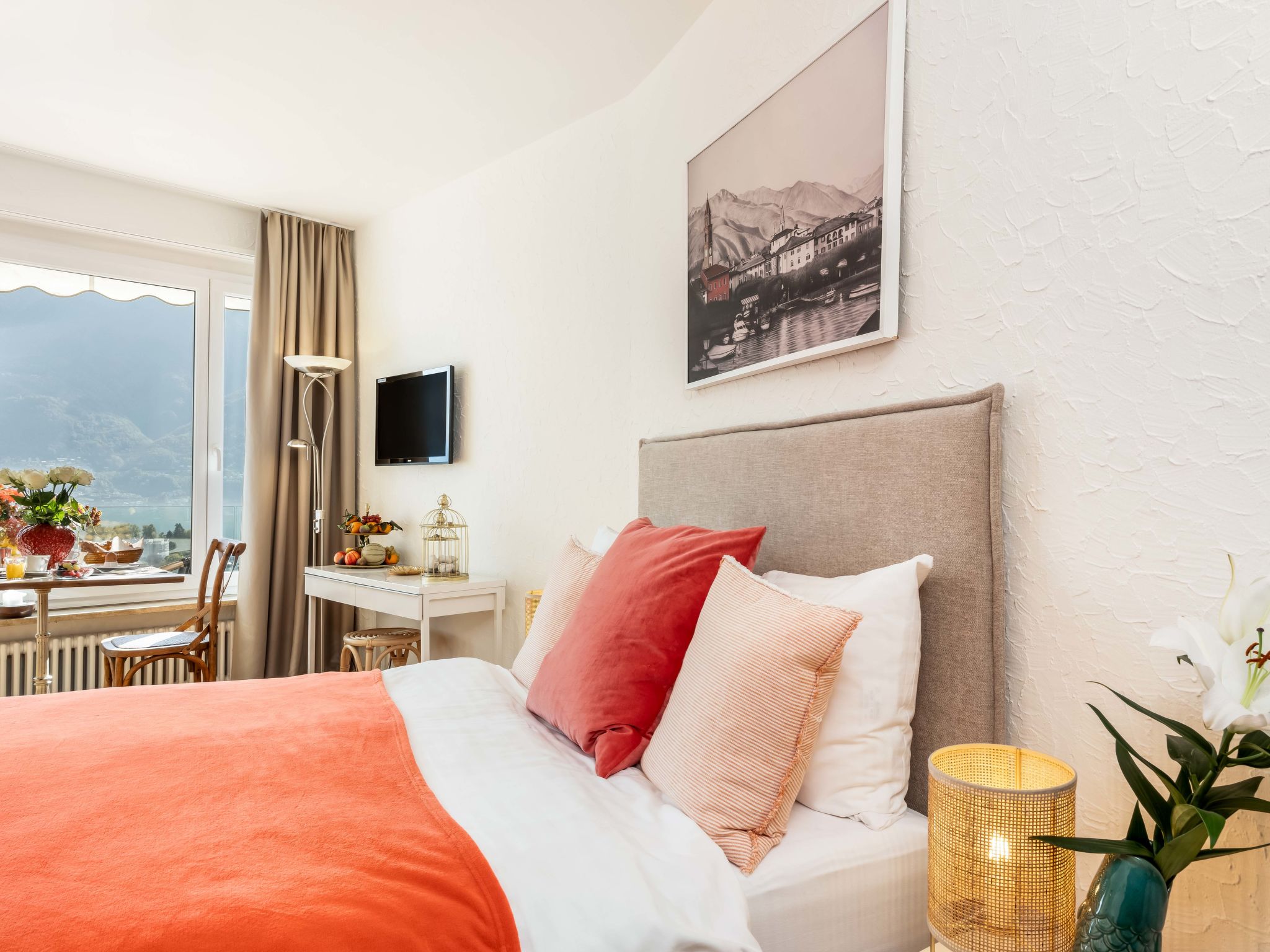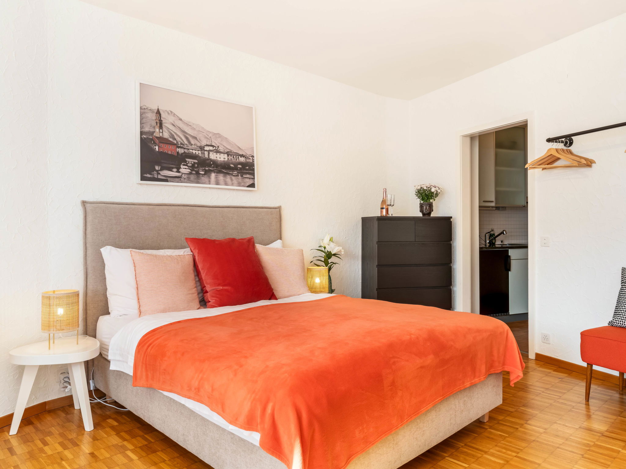 "Double Room Modern", 1-room apartment 35 m2, south facing position. Renovated: living/dining room with 1 double bed " 400 m, railway station "SBB-CFF Locarno-Muralto" 4.7 km, sandy beach "Bagno Pubblico Ascona" 1.3 km, bathing lake "Lago Maggiore" 1.3 km, lake Lago Maggiore 500 m. Golf course (18 hole) 1 km, tennis 1 km. Nearby attractions: Madonana del Sasso, Orselina, Locarno-Ascona, Ronco sopra Ascona, Falconeria, Kamelienpark, Piazza Grande, Castelli di Bellinzona, Monte Verità, Ascona, Brissago Inseln. Well-known lakes can easily be reached: Lago Maggiore, Lago di Lugano, Lago di Como, Lago di Orta. Hiking paths: Monte Veritè, Ronco s. Ascona, Valle Maggia, VMonte Tamaro - Monte Lema, Monte Tamaro - Monte Lema. Please note: baby equipment on request (extra). Loading and unloading of baggage is possible at the holiday house. Additional accommodations can be booked. Property ref. CH6612.250.1-24 is situated on the same property. ATTENTION - limited number of garage spaces and limited number of outdoor parking spaces directly at the house - MUST reserve in advance.