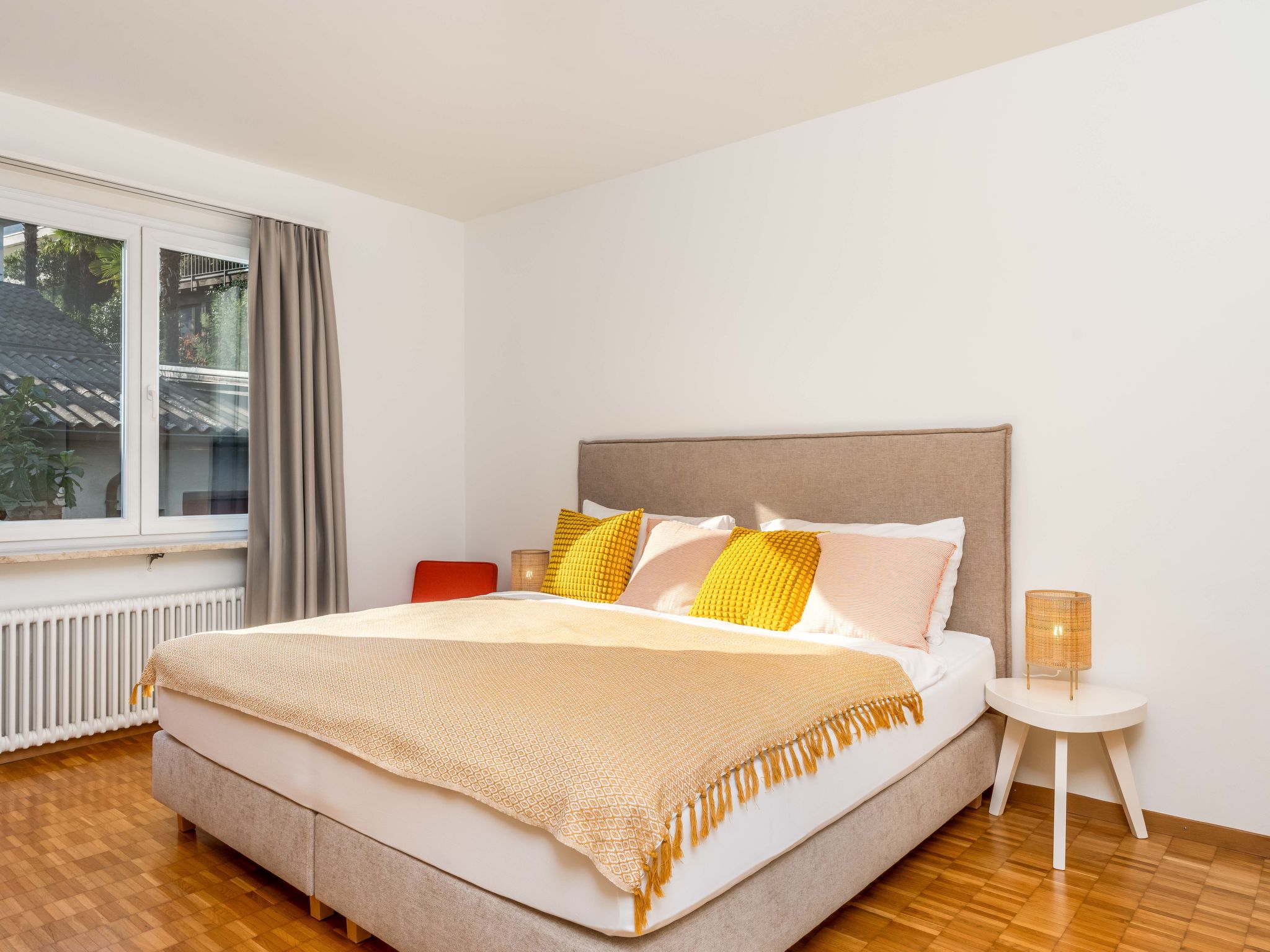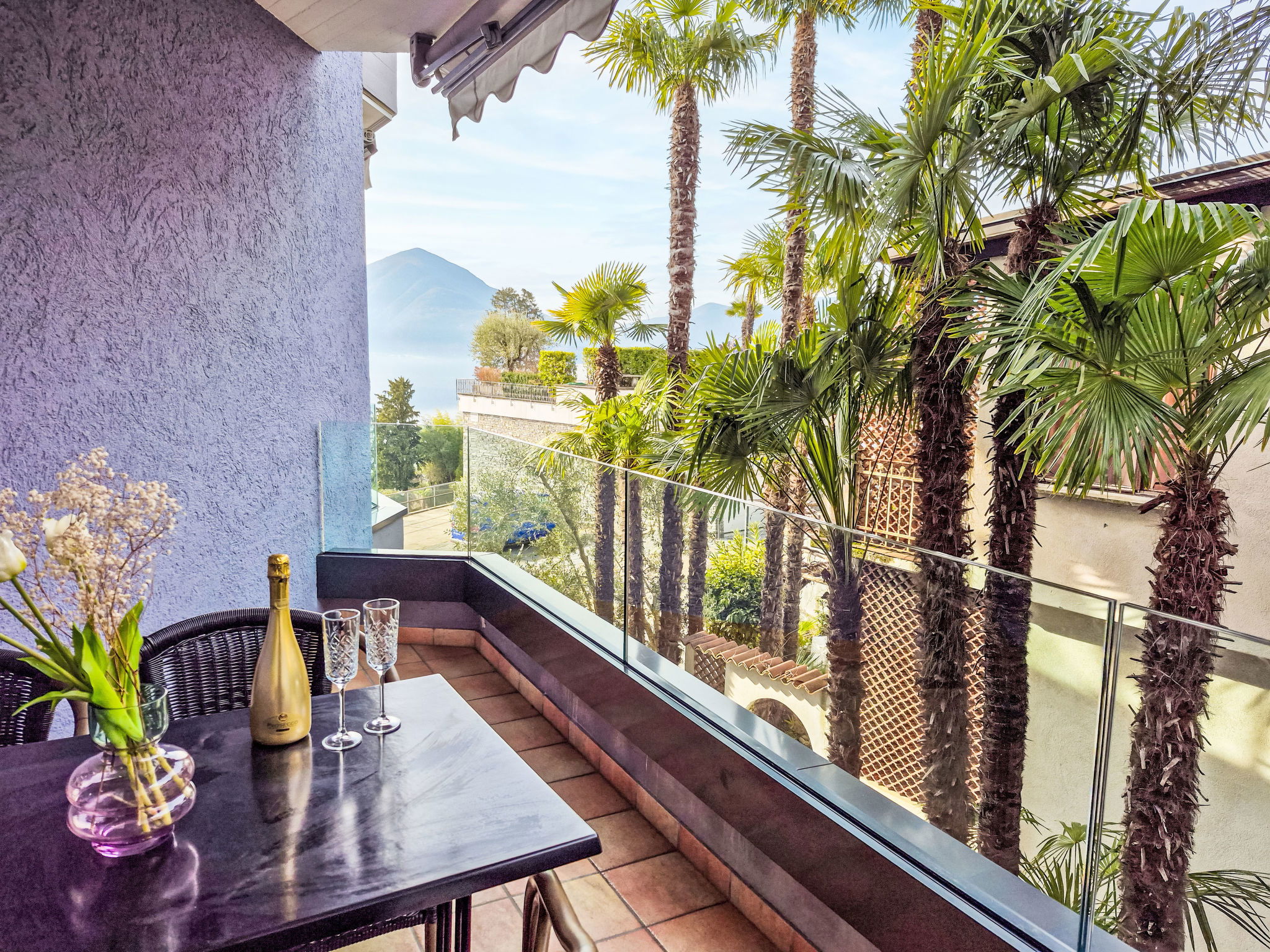 "Junior Suite Modern", 2-room apartment 60 m2 on 2nd floor, west facing position. Living/dining room with 1 sofabed " 400 m, railway station "SBB-CFF Locarno-Muralto" 4.7 km, sandy beach "Bagno Pubblico Ascona" 1.3 km, bathing lake "Lago Maggiore" 1.3 km, lake Lago Maggiore 500 m. Golf course (18 hole) 1 km, tennis 1 km. Nearby attractions: Madonana del Sasso, Orselina, Locarno-Ascona, Ronco sopra Ascona, Falconeria, Kamelienpark, Piazza Grande, Castelli di Bellinzona, Monte Verità, Ascona, Brissago Inseln. Well-known lakes can easily be reached: Lago Maggiore, Lago di Lugano, Lago di Como, Lago di Orta. Hiking paths: Monte Veritè, Ronco s. Ascona, Valle Maggia, VMonte Tamaro - Monte Lema, Monte Tamaro - Monte Lema. Please note: baby equipment on request (extra). Loading and unloading of baggage is possible at the holiday house. Additional accommodations can be booked. Property ref. CH6612.250.1-24 is situated on the same property. ATTENTION - limited number of garage spaces and limited number of outdoor parking spaces directly at the house - MUST reserve in advance.