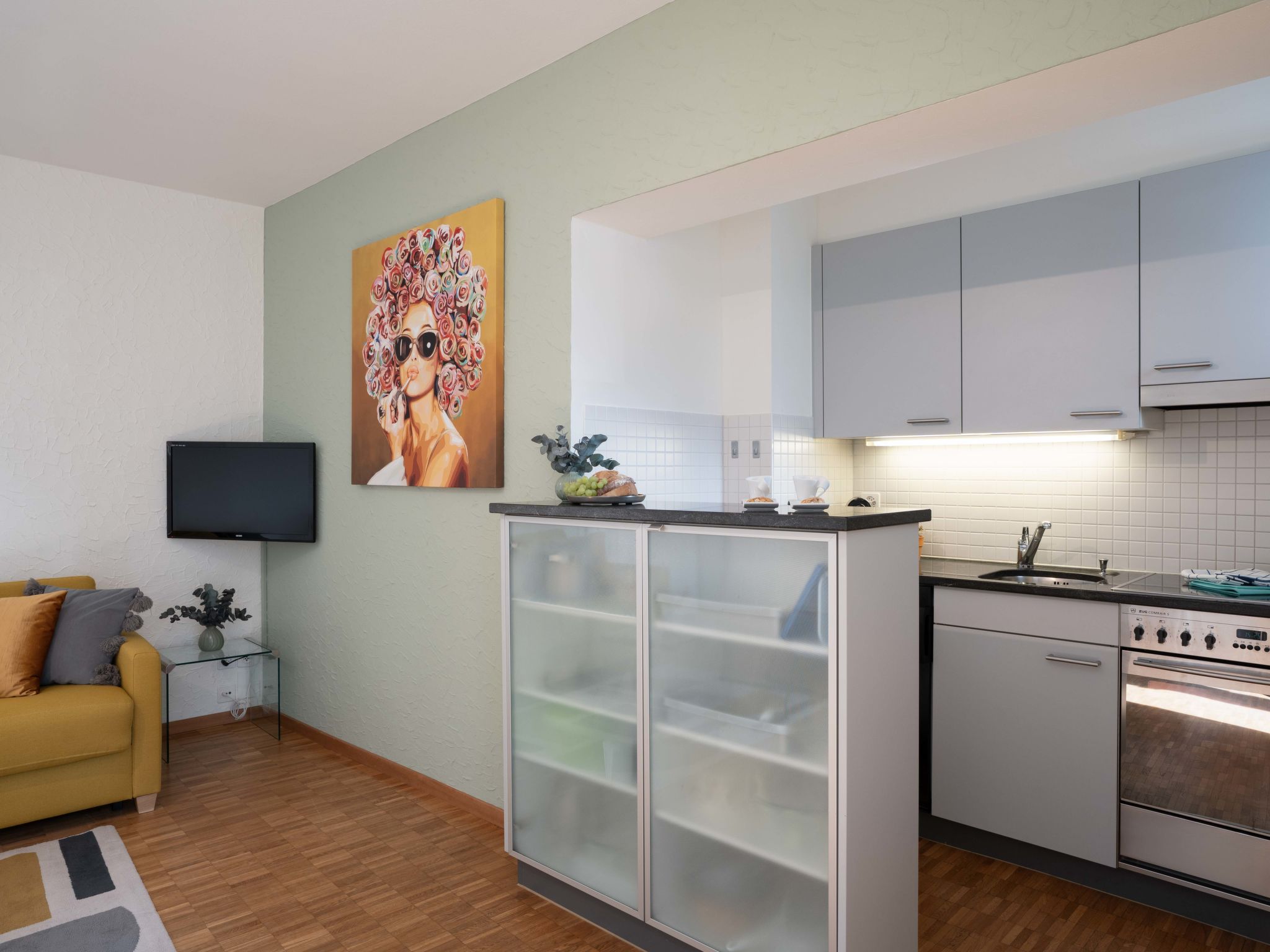 "Suite Modern", 2-room apartment 60 m2 on 1st floor, west facing position. Renovated: living/dining room with 1 double sofabed " 400 m, railway station "SBB-CFF Locarno-Muralto" 4.7 km, sandy beach "Bagno Pubblico Ascona" 1.3 km, bathing lake "Lago Maggiore" 1.3 km, lake Lago Maggiore 500 m. Golf course (18 hole) 1 km, tennis 1 km. Nearby attractions: Madonana del Sasso, Orselina, Locarno-Ascona, Ronco sopra Ascona, Falconeria, Kamelienpark, Piazza Grande, Castelli di Bellinzona, Monte Verità, Ascona, Brissago Inseln. Well-known lakes can easily be reached: Lago Maggiore, Lago di Lugano, Lago di Como, Lago di Orta. Hiking paths: Monte Veritè, Ronco s. Ascona, Valle Maggia, VMonte Tamaro - Monte Lema, Monte Tamaro - Monte Lema. Please note: baby equipment on request (extra). Loading and unloading of baggage is possible at the holiday house. Additional accommodations can be booked. Property ref. CH6612.250.1-24 is situated on the same property. ATTENTION - limited number of garage spaces and limited number of outdoor parking spaces directly at the house - MUST reserve in advance.