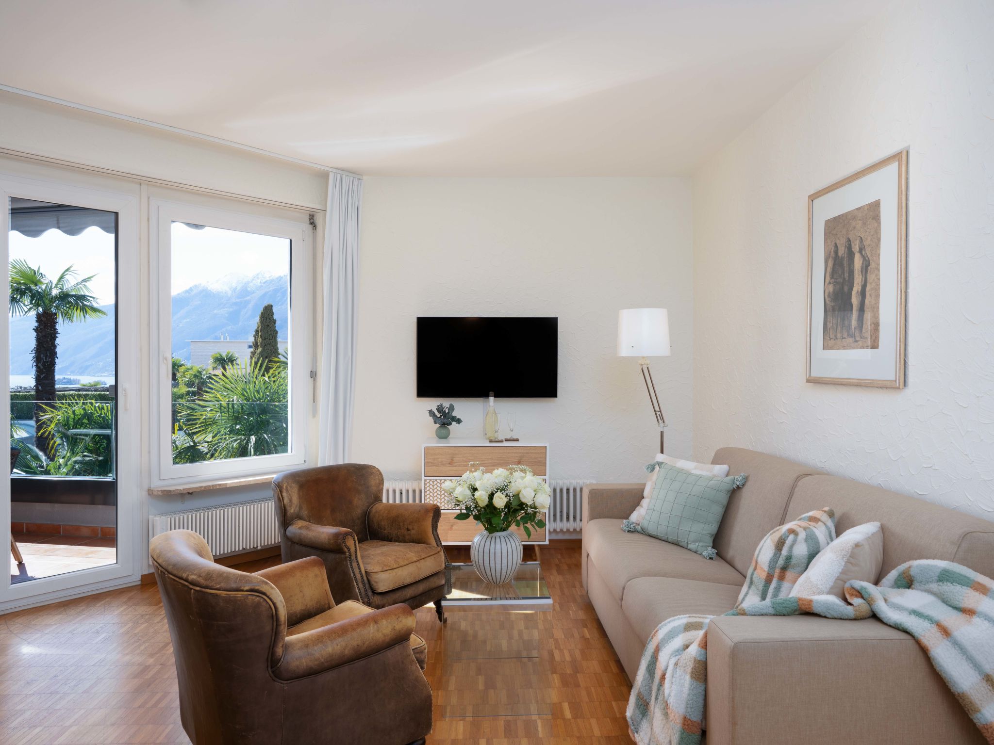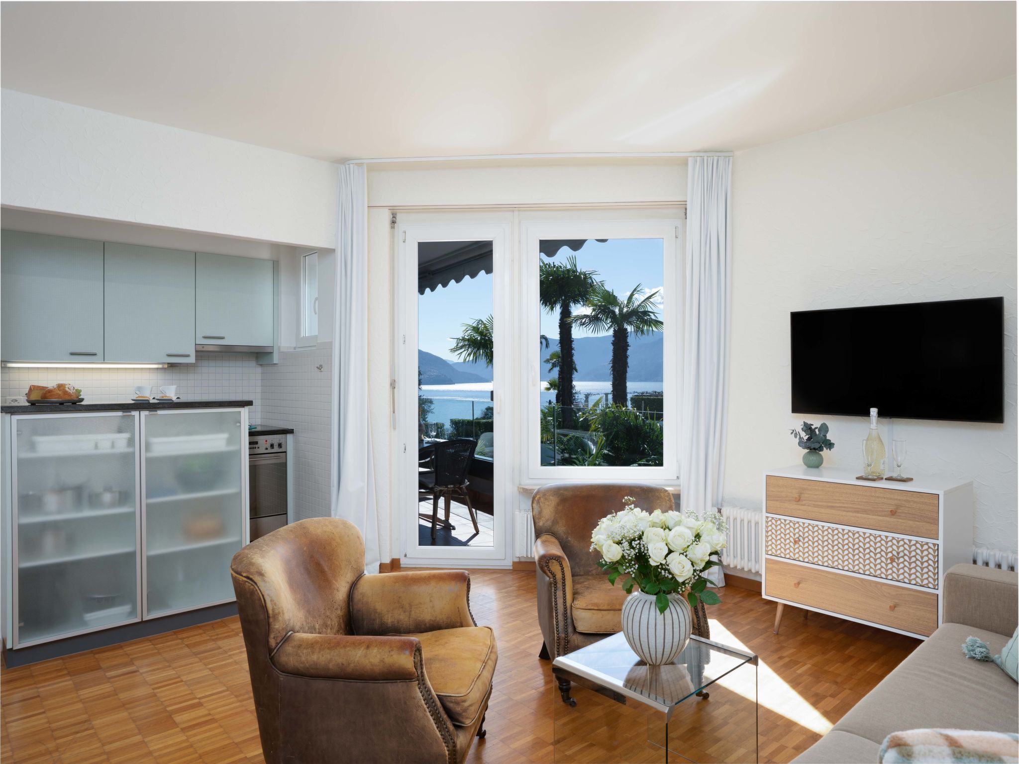 "Junior Suite Classic - Isole di Brissago", 2-room apartment 60 m2 on 3rd floor, west facing position. Living/sleeping room with 1 double sofabed " 400 m, railway station "SBB-CFF Locarno-Muralto" 4.7 km, sandy beach "Bagno Pubblico Ascona" 1.3 km, bathing lake "Lago Maggiore" 1.3 km, lake Lago Maggiore 500 m. Golf course (18 hole) 1 km, tennis 1 km. Nearby attractions: Madonana del Sasso, Orselina, Locarno-Ascona, Ronco sopra Ascona, Falconeria, Kamelienpark, Piazza Grande, Castelli di Bellinzona, Monte Verità, Ascona, Brissago Inseln. Well-known lakes can easily be reached: Lago Maggiore, Lago di Lugano, Lago di Como, Lago di Orta. Hiking paths: Monte Veritè, Ronco s. Ascona, Valle Maggia, VMonte Tamaro - Monte Lema, Monte Tamaro - Monte Lema. Please note: baby equipment on request (extra). Loading and unloading of baggage is possible at the holiday house. Additional accommodations can be booked. Property ref. CH6612.250.1-24 is situated on the same property. ATTENTION - limited number of garage spaces and limited number of outdoor parking spaces directly at the house - MUST reserve in advance.