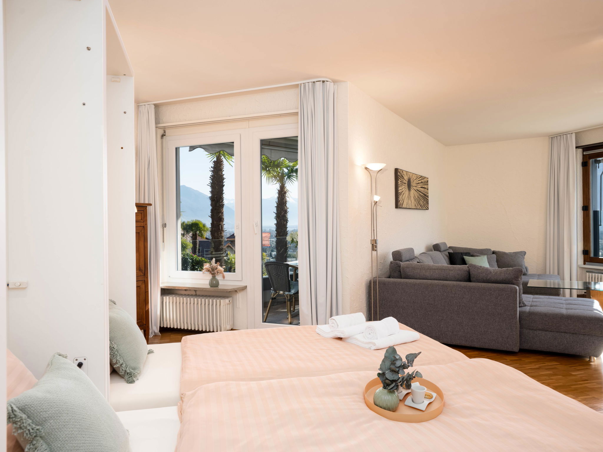 "Suite Classic", 2-room apartment 90 m2 on 1st floor, south-east facing position. Living/sleeping room with 2 fold-away beds " 400 m, railway station "SBB-CFF Locarno-Muralto" 4.7 km, sandy beach "Bagno Pubblico Ascona" 1.3 km, bathing lake "Lago Maggiore" 1.3 km, lake Lago Maggiore 500 m. Golf course (18 hole) 1 km, tennis 1 km. Nearby attractions: Madonana del Sasso, Orselina, Locarno-Ascona, Ronco sopra Ascona, Falconeria, Kamelienpark, Piazza Grande, Castelli di Bellinzona, Monte Verità, Ascona, Brissago Inseln. Well-known lakes can easily be reached: Lago Maggiore, Lago di Lugano, Lago di Como, Lago di Orta. Hiking paths: Monte Veritè, Ronco s. Ascona, Valle Maggia, VMonte Tamaro - Monte Lema, Monte Tamaro - Monte Lema. Please note: baby equipment on request (extra). Loading and unloading of baggage is possible at the holiday house. Additional accommodations can be booked. Property ref. CH6612.250.1-24 is situated on the same property. ATTENTION - limited number of garage spaces and limited number of outdoor parking spaces directly at the house - MUST reserve in advance.