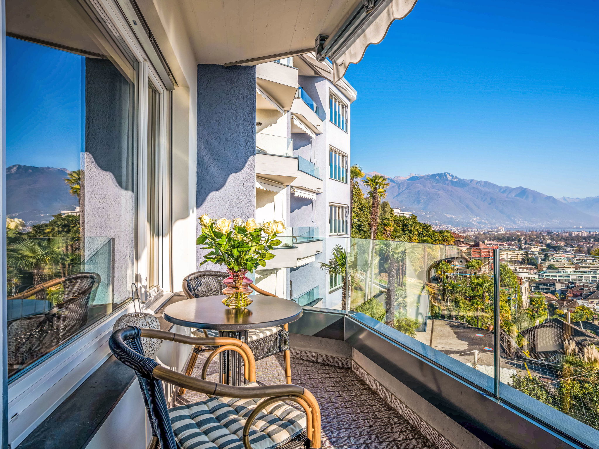 "Suite Modern", 2-room apartment 60 m2 on 1st floor, west facing position. Renovated: living/dining room with 1 double sofabed " 400 m, railway station "SBB-CFF Locarno-Muralto" 4.7 km, sandy beach "Bagno Pubblico Ascona" 1.3 km, bathing lake "Lago Maggiore" 1.3 km, lake Lago Maggiore 500 m. Golf course (18 hole) 1 km, tennis 1 km. Nearby attractions: Madonana del Sasso, Orselina, Locarno-Ascona, Ronco sopra Ascona, Falconeria, Kamelienpark, Piazza Grande, Castelli di Bellinzona, Monte Verità, Ascona, Brissago Inseln. Well-known lakes can easily be reached: Lago Maggiore, Lago di Lugano, Lago di Como, Lago di Orta. Hiking paths: Monte Veritè, Ronco s. Ascona, Valle Maggia, VMonte Tamaro - Monte Lema, Monte Tamaro - Monte Lema. Please note: baby equipment on request (extra). Loading and unloading of baggage is possible at the holiday house. Additional accommodations can be booked. Property ref. CH6612.250.1-24 is situated on the same property. ATTENTION - limited number of garage spaces and limited number of outdoor parking spaces directly at the house - MUST reserve in advance.