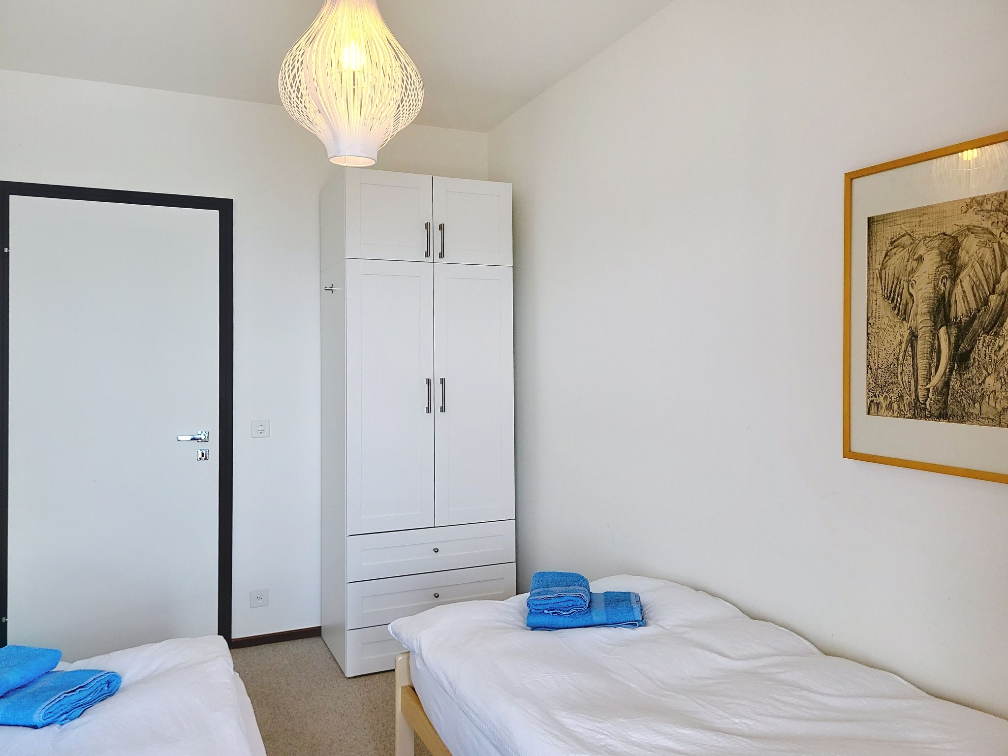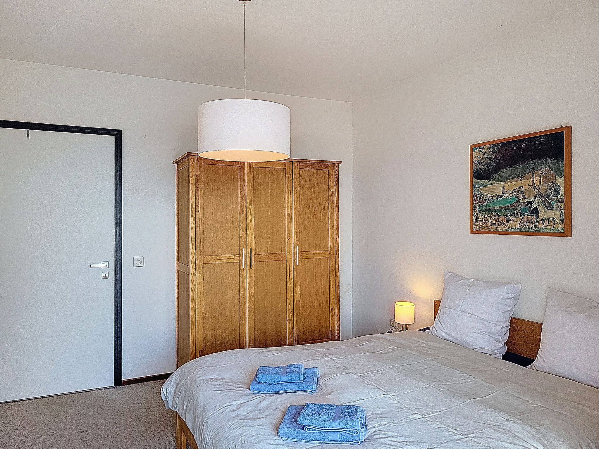 3-room apartment 80 m2 on 1st floor, south facing position. Spacious and bright, comfortable and cosy furnishings: open living/dining room with panoramic window with dining table, cable TV, flat screen and radio. Exit to the balcony. 1 room with 2 beds (90 cm, length 190 cm). Exit to the balcony. 1 double bedroom with 1 french bed (160 cm, length 200 cm). Exit to the balcony. Kitchen (oven, dishwasher, 4 ceramic glass hob hotplates, electric coffee machine, Capsules for coffee machine (Dolce Gusto) extra, fondue Set (cheese)). Shower/WC, sep. WC. Underfloor heating. Balcony 20 m2. Balcony furniture, deck chairs (2). Marvellous panoramic view of the lake, the mountains, the countryside and the resort. Facilities: baby cot for up to 2 year olds. Internet (WiFi, free). Parking space n D (roofed). Please note: suitable for families. Non-smokers only. Maximum 1 pet/ dog allowed. The children of young age should be monitored because of the ramps. NL-00003624