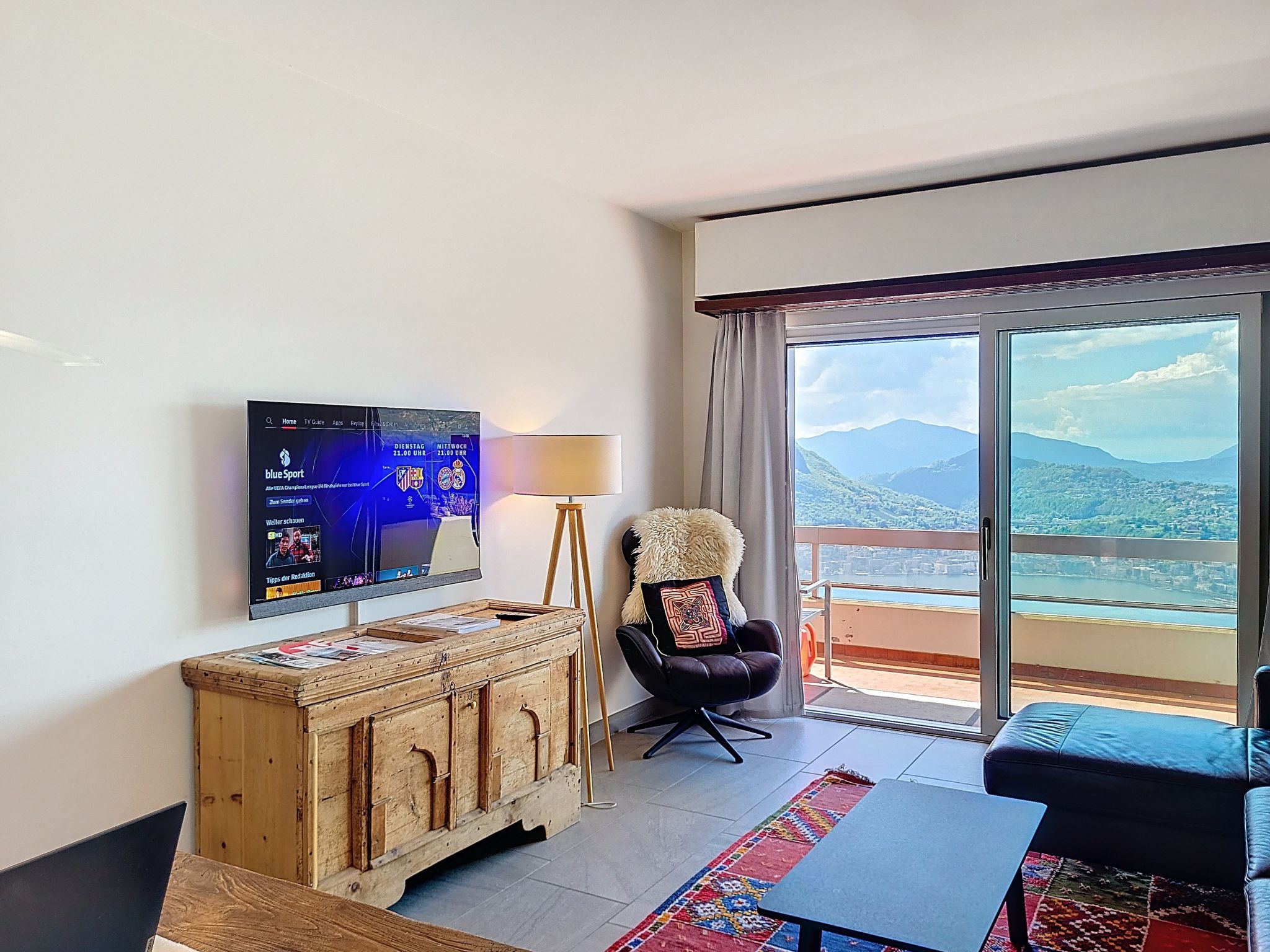 Aldesago 7 km from Lugano: Cosy, simple apartment block "Superpanorama II", 615 m a.s.l., built in 1980, renovated in 2011. Above Lugano, in a quiet, sunny, elevated position on a slope, 6 km from the lake, south facing position. In the house: lift, washing machine, tumble dryer (for shared use, extra). Narrow motor access (ramp). Stepped path (10 steps) to the house. Shop 6 km, supermarket 6 km, restaurant 500 m, bus stop "Linie 12" 20 m, railway station "Lugano" 7 km, outdoor swimming pool 6 km, indoor swimming pool 6 km, lake Lago di Lugano. Golf course (18 hole) 15 km, tennis 6 km, minigolf 15 km, mountain railway 300 m. Nearby attractions: Swiss Miniatur, Melide 14 km, Hermann Hesse Museum, Montagnola 12 km, Chocolat Alprose Caslano 16 km, Mercato Ponte Tresa, IT 17 km, Mercato Luino, IT 29 km, Gandria. Well-known ski regions can easily be reached: Airolo, Nara, Campra, Campo Blenio, Bosco Gurin. Well-known lakes can easily be reached: Lago di Lugano, Lago Maggiore, Lago di Como. Hiking paths: Monte Brè, 2 km, San Salvatore, Tamaro-und Splash+Spa 24 km. Please note: suitable for families.