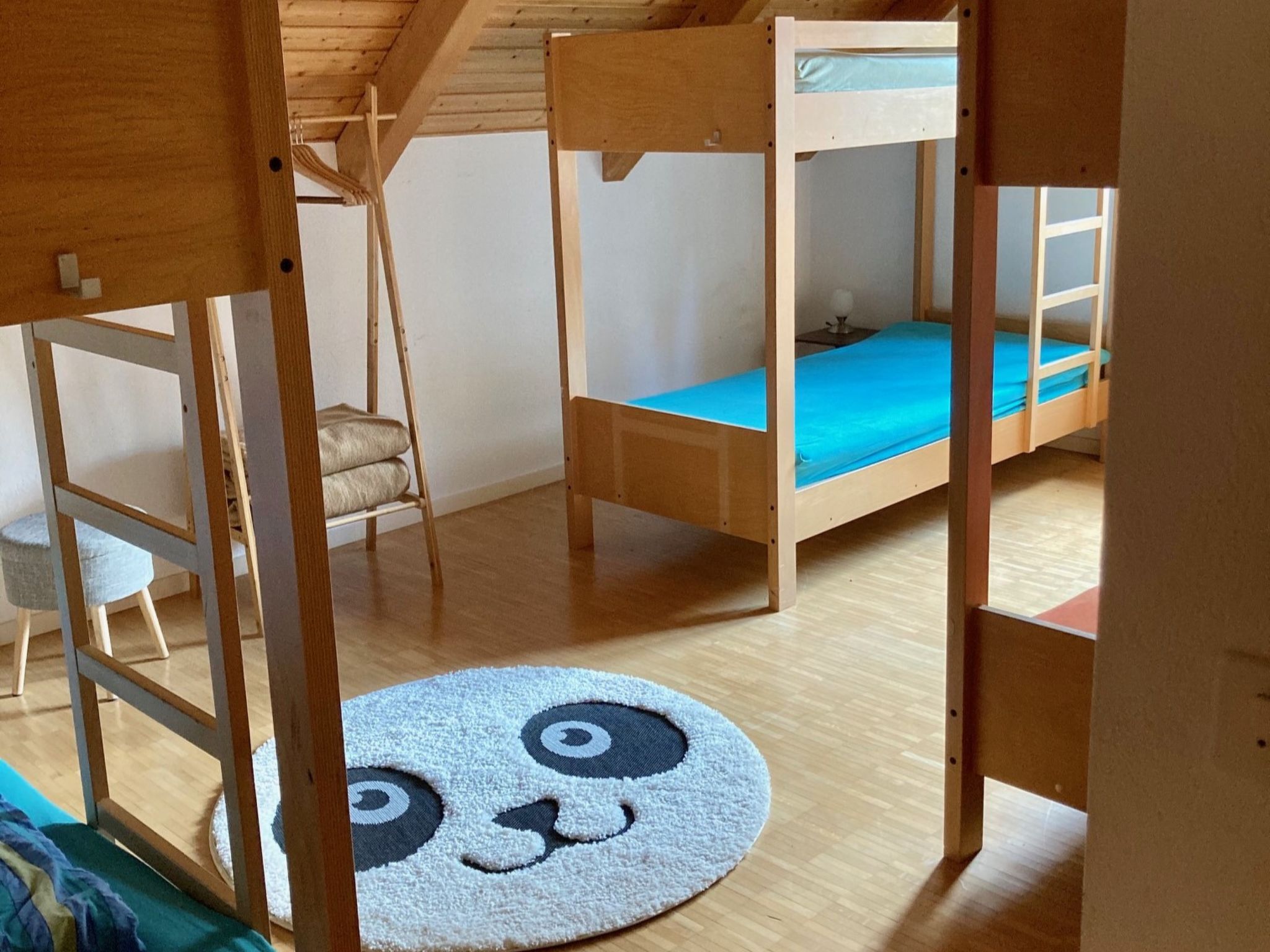 150 m2. 1 pet/ dog allowed. More information by the provider: In the heart of the beautiful Franches-Montagnes region, in the small village of Le Bémont, right next to Saignelégier, this pleasant, quiet and well-equipped vacation home is ideal for families and groups. The house is located a few steps from the train stop. It offers three comfortable bedrooms, a large and bright living-dining room with direct access to the grounds. The house also has a small room, offering access to the terrace and used as a playroom. The entrance hall is spacious and convenient for storing bicycles, strollers, skis or other items. Accommodation for up to 11 persons. One room with six beds; one room with one double bed or two single beds; and one room with three single beds or one double bed and one single bed. Can be adapted at guests' request. Outside, private garden with terrace. Swings, garden furniture and grill available. Thanks to the Jura-Pass, you can use free public transport and enjoy discounts on many activities in the region!