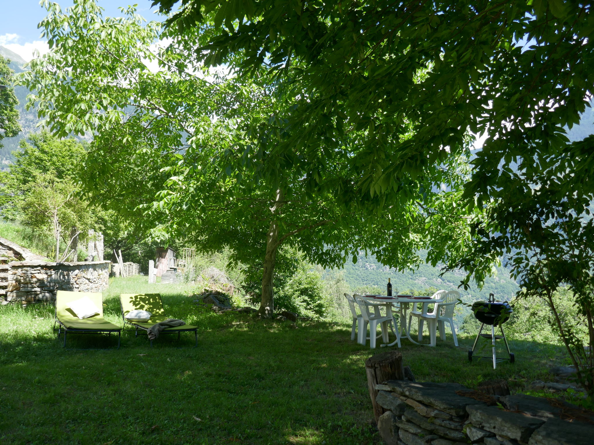 "Rustico Ingrid", 2-room house 55 m2 on 2 levels. Partly with sloping ceilings, rustic and cosy furnishings: open living/dining room with open-hearth fireplace, dining table, satellite TV, radio, hi-fi system and wood-burning stove. Exit to the patio. 1 room with 1 double bed ", 770 m a.s.l., surrounded by trees. In a hamlet 7 km from the centre of Malvaglia, 11 km from the centre of Biasca, 31 km from the centre of Bellinzona, in a quiet, sunny position, in a cul-de-sac, in the countryside. Private: natural state property. In the house: storage room for bicycles. 200 m long bumpy motor access to the house. Parking on the premises. Shop 7 km, supermarket 7 km, restaurant 6 km, bakery 11 km, bus stop "Semione Municipio 132" 5.5 km, railway station "Biasca FFS - SBB" 11.6 km, outdoor swimming pool 34 km. Walking paths from the house 10 m, cable car 7 km. Nearby attractions: Castelli di Bellinzona, UNESCO, Mercato di Bellinzona (sabato), Castello di Semione, Chiesa di Negrentino, Archivio Doneta, Monte Tamaro, Swissminiature. Well-known lakes can easily be reached: Lago Retico, Lago di Luzzone, Lago Ritom, Lago di Lugano, Lago Maggiore. Hiking paths: Val Malvaglia, Nara, Campo Blenio, Greina, Lucomagno. Please note: animals in the neighbourhood.