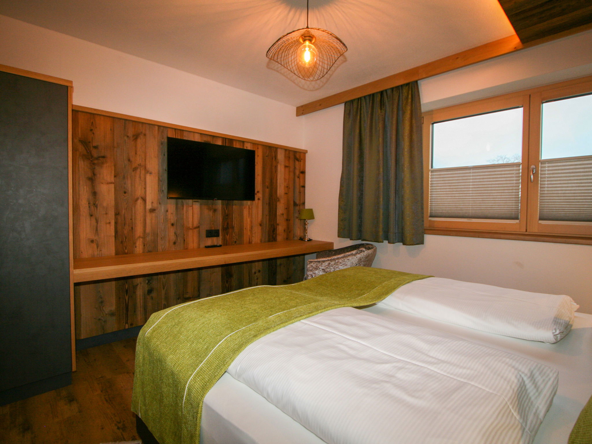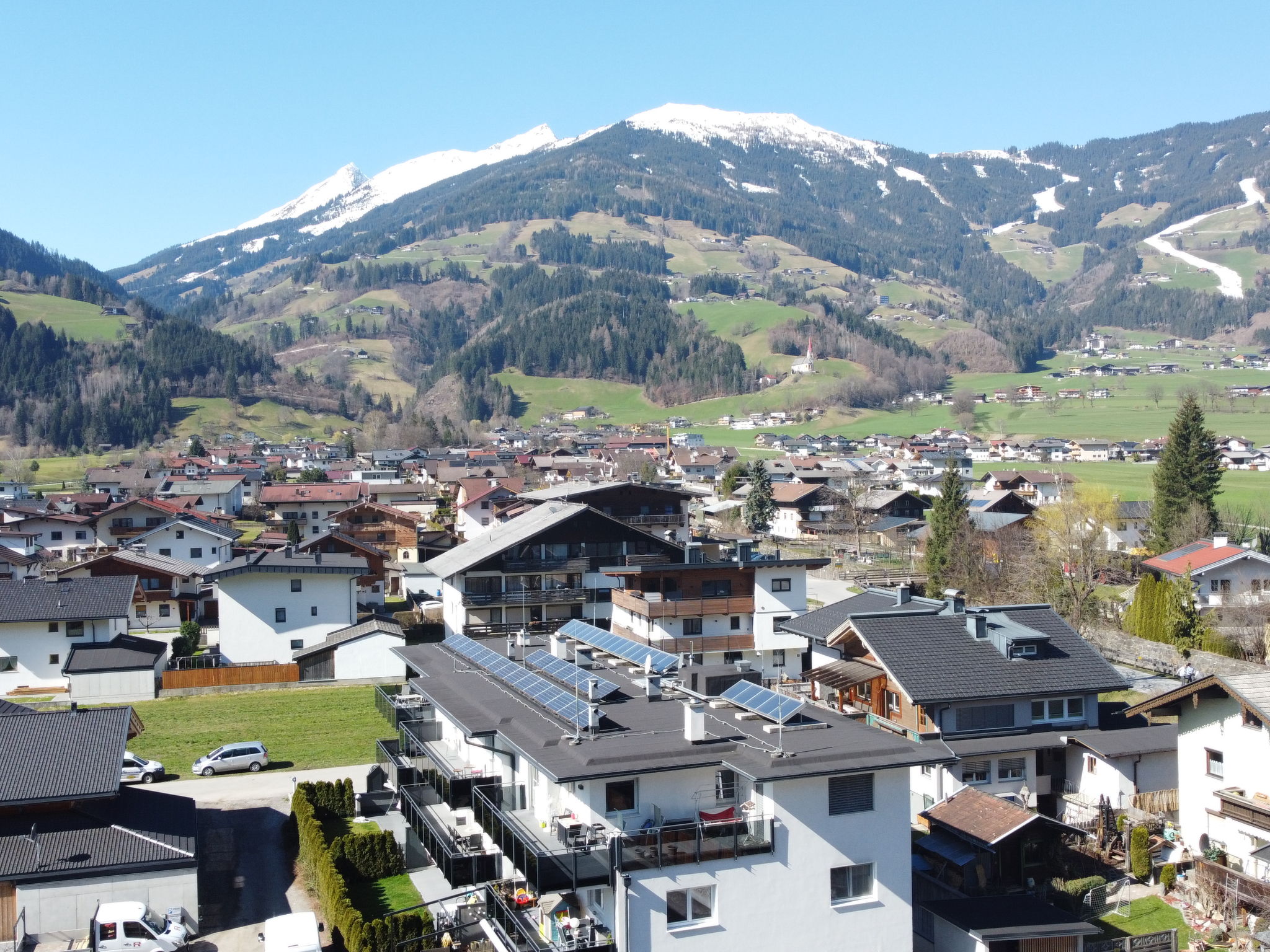 "Erzherzog’s Apts/Zillertal Kaiser Lodge", 3-room apartment 84 m2 on 1st floor. Very comfortable and stylish furnishings: 2 double bedrooms, each room with TV (flat screen). Kitchen-/living room (oven, dishwasher, 4 ceramic glass hob hotplates, toaster, kettle, microwave, electric coffee machine) with Scandinavian wood stove (only for decoration), dining table and TV (flat screen), radio and CD-player. Exit to the balcony. Shower, sep. WC, double hand-basin. Underfloor heating. Small balcony. Balcony furniture. Facilities: safe, hair dryer. Internet (WiFi). E-charging station. Please note: non-smoking house.