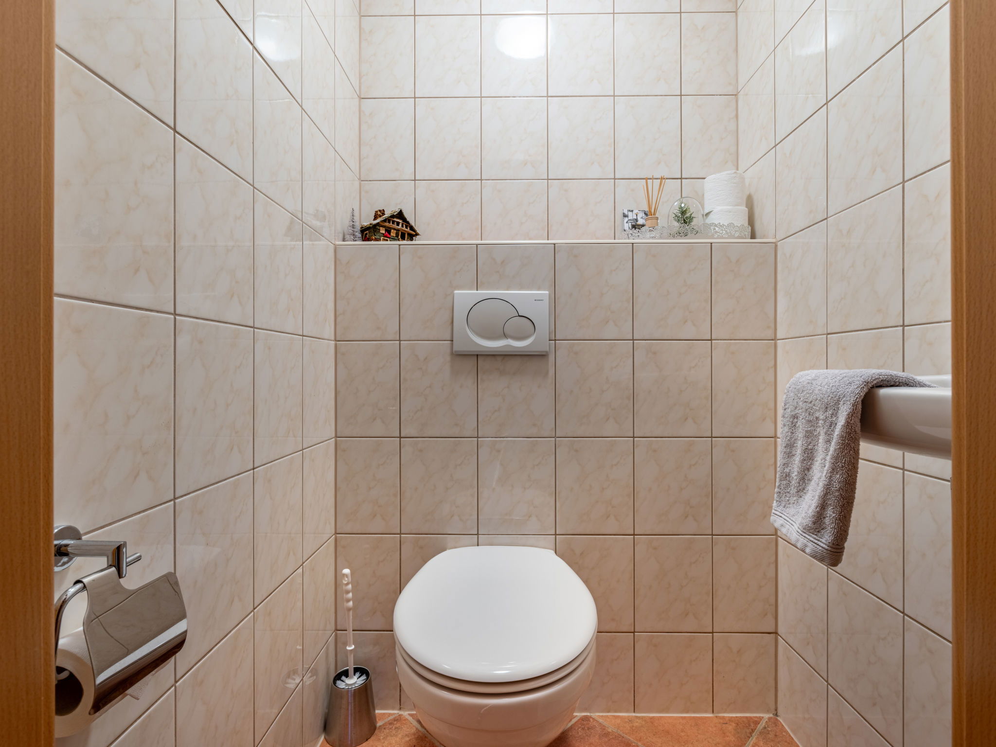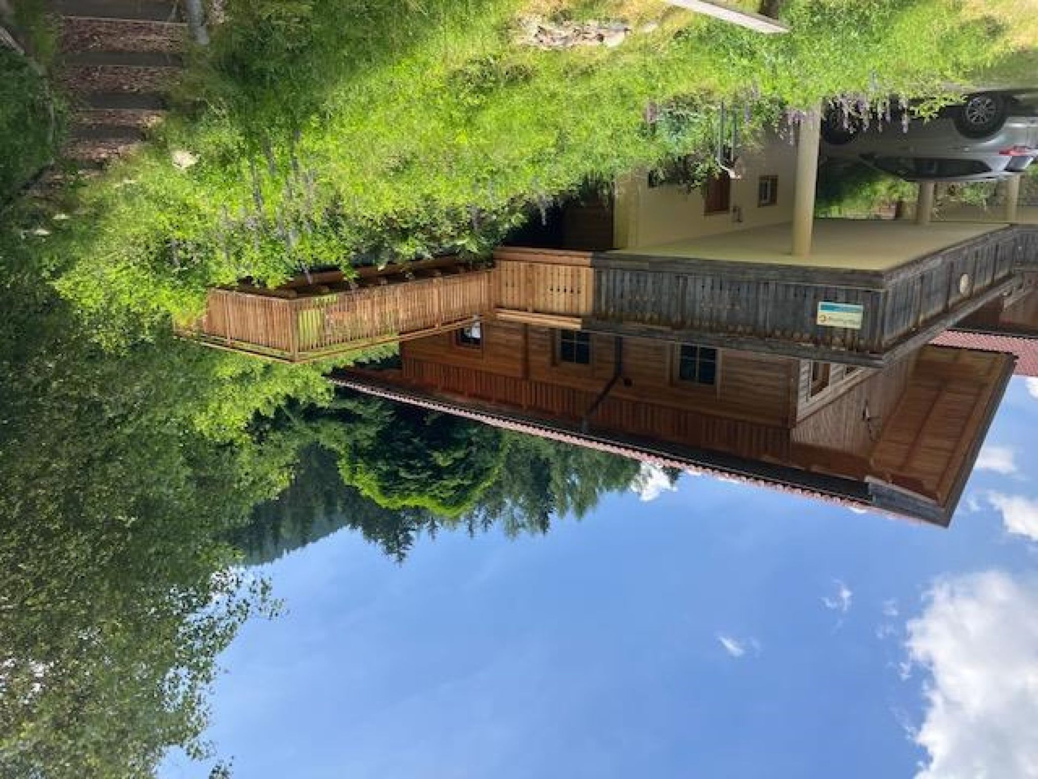 "Chalet Venus", 4-room house 90 m2. Object suitable for 6 adults. Tasteful and wooden furniture furnishings: on the lower ground floor: entrance hall. Shower/WC, double hand-basin. Underfloor heating. Upper floor: living/dining room with dining nook and satellite TV. Exit to the balcony. 2 double bedrooms. Open kitchen (oven, dishwasher, 4 ceramic glass hob hotplates, microwave, electric coffee machine, Capsules for coffee machine (Nespresso) extra) with dining table. Sep. WC. Top floor: 1 room with sloping ceilings with rooflight with 2 beds. Large balcony, large terrace. Terrace furniture, balcony furniture. Beautiful view of the mountains and the countryside. Facilities: washing machine. Internet (WiFi, free). Parking (roofed, 2 cars) at the house. Please note: non-smoking house. Maximum 2 pets/ dogs allowed. Smoke alarm, fire extinguisher.