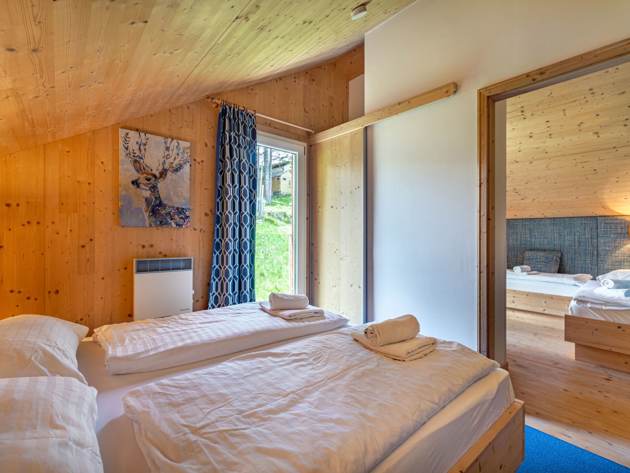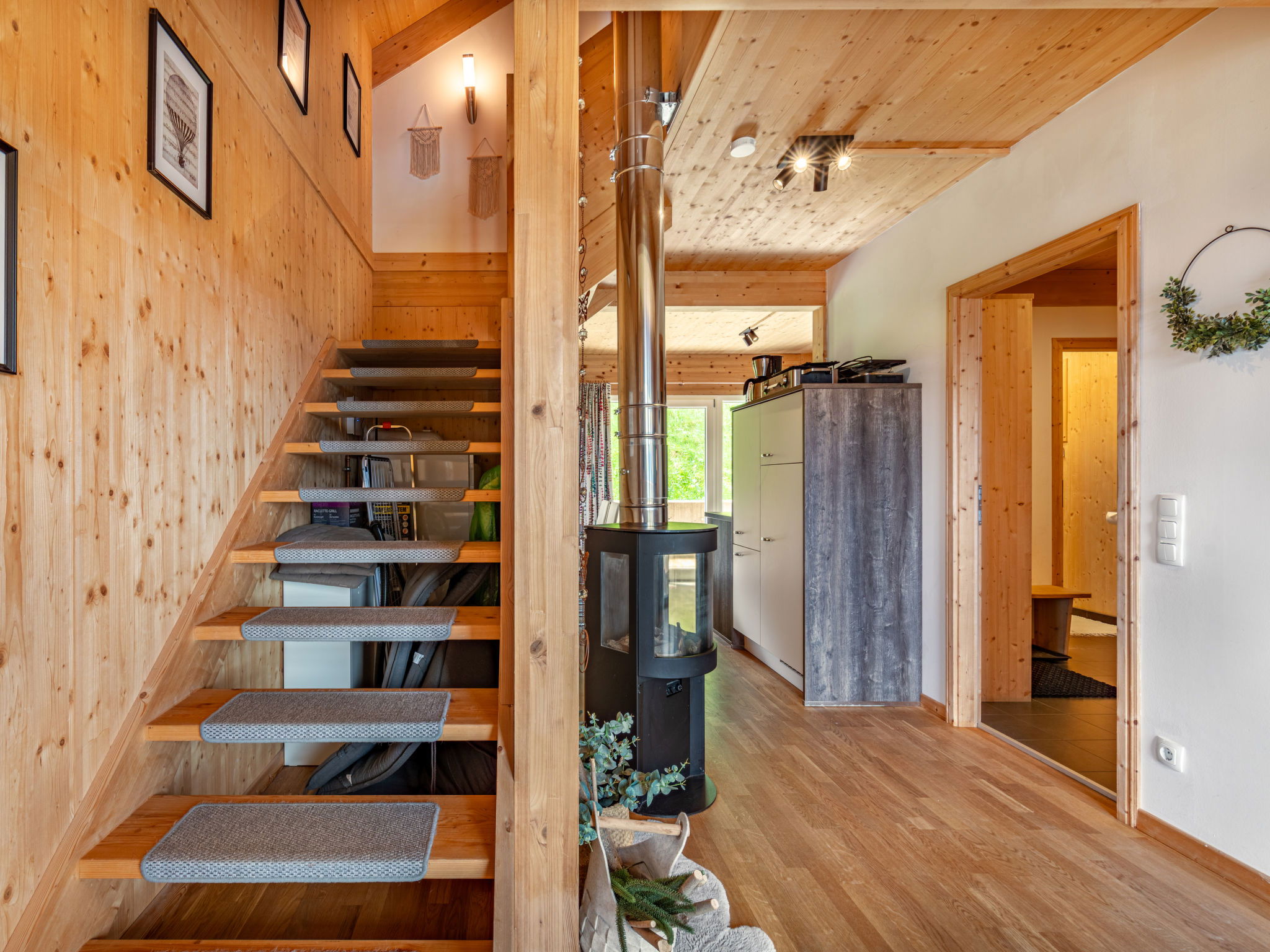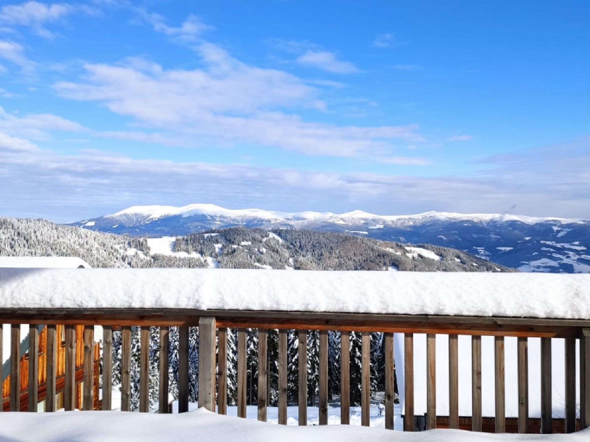 "Klippitzperle", 5-room chalet 115 m2. Bright, tasteful and wooden furniture furnishings: entrance hall. Open living room with satellite TV " 14.9 km. Walking paths from the house 10 m, chair lift 600 m, slopes, ski rental 300 m, ski school 2 km, sled run 2 km. Nearby attractions: Sommerrodelbahn, Klettergarten 2 km. Well-known lakes can easily be reached: Klopeinersee 60 km. Hiking paths: Koralm, Saualm, Lavanttaler Alpen. Please note: car recommended. Groups of teenagers on request only. In case of good snow conditions, the house is accessible on skis. According to the provider, due to the geographical location on the mountain, WLAN reception cannot be guaranteed continuously and is highly dependent on the weather.