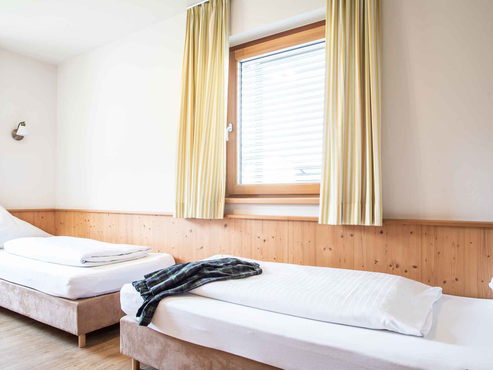 "Edith", 3-room apartment 66 m2, on the ground floor. Bright, beautiful and tasteful furnishings: living/sleeping room with 1 double sofabed, dining table and cable TV. Exit to the garden, to the balcony, to the terrace. 1 double bedroom with TV (flat screen). 1 room with 2 beds and TV (flat screen). Open kitchen (oven, dishwasher, 4 ceramic glass hob hotplates, toaster, kettle, microwave, freezer, electric coffee machine). Shower, sep. WC. Underfloor heating. Parquet floors. Terrace, garden. Terrace furniture. Side panoramic view of the mountains. Facilities: baby cot, hair dryer. Internet (WiFi, free). Parking (2 cars). Maximum 1 pet/ dog allowed. The indoor pool, wellness area and restaurant are located in the Hotel Hirschen (approx. 500m). Terrace or garden, otherwise 2 identical apartments.