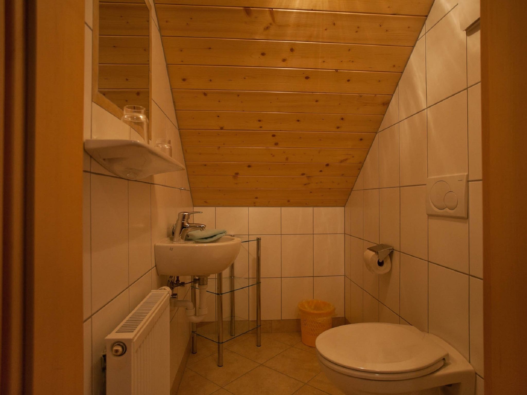 "Wohnung 5", 3-room apartment 90 m2, on the top floor. With sloping ceilings, practical and wooden furniture furnishings: 2nd upper floor: living room with dining table and satellite TV. 2 rooms, each room with 1 double bed. Exit to the balcony. Open kitchen (oven, 4 ceramic glass hob hotplates, toaster, kettle, microwave, electric coffee machine). Shower/WC, sep. WC. Wood heating. Parquet floors, carpet. Balcony. Very beautiful view of the mountains. Facilities: Internet (WiFi, free). Please note: non-smoking house. Maximum 2 pets/ dogs allowed. Smoke alarm, fire extinguisher.