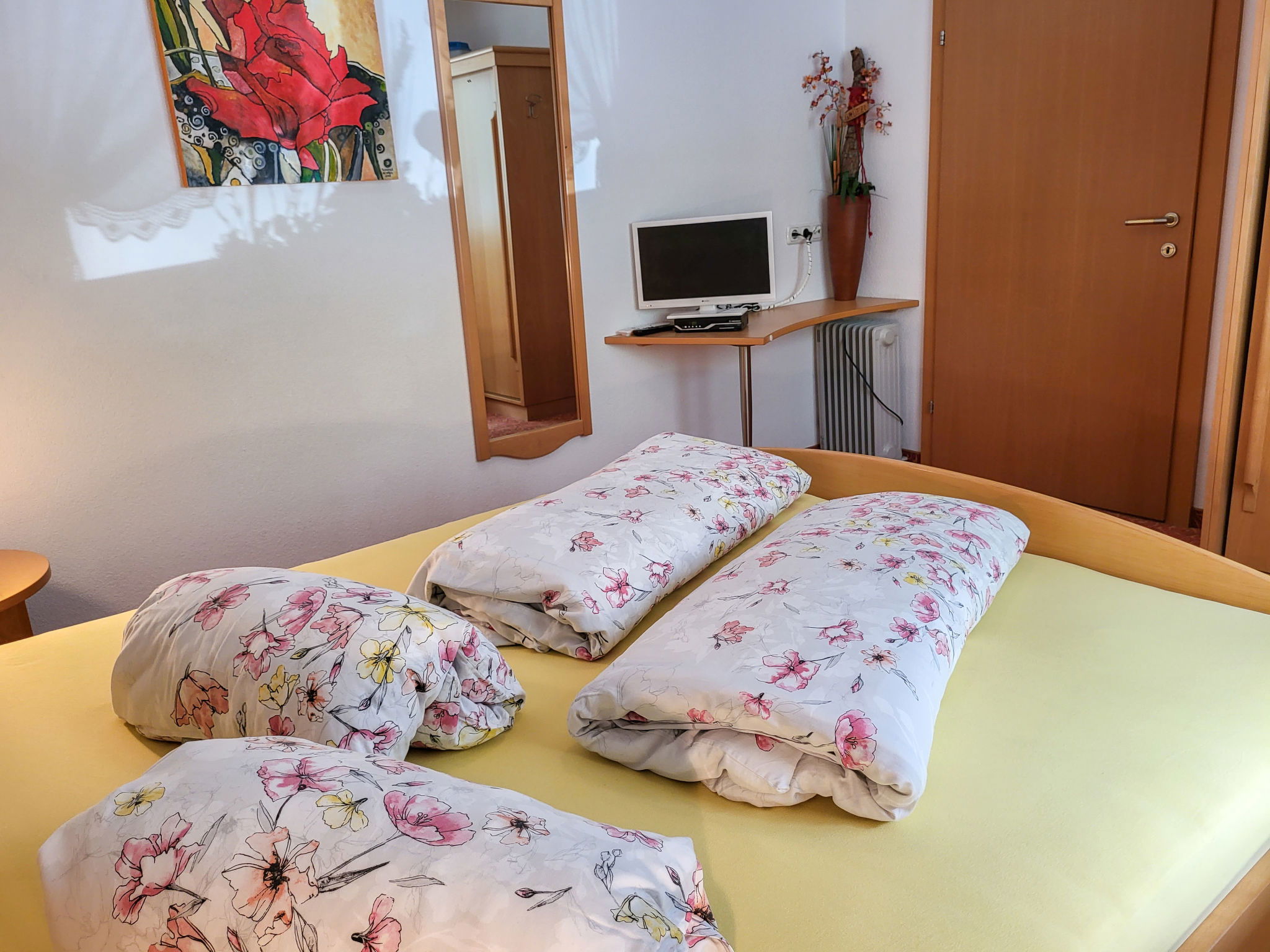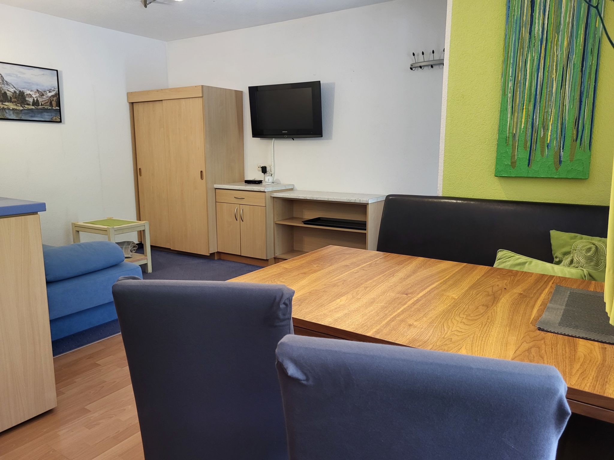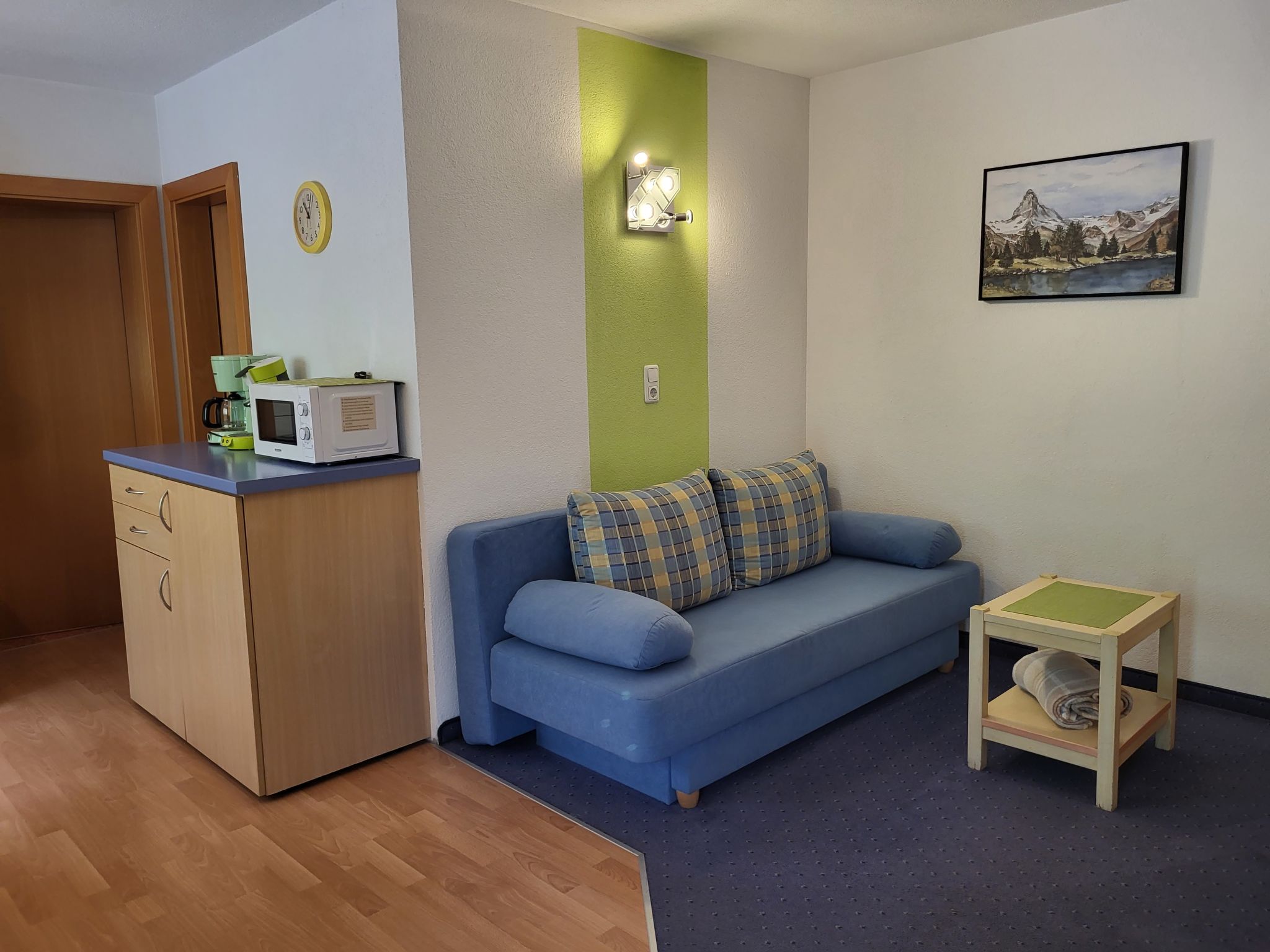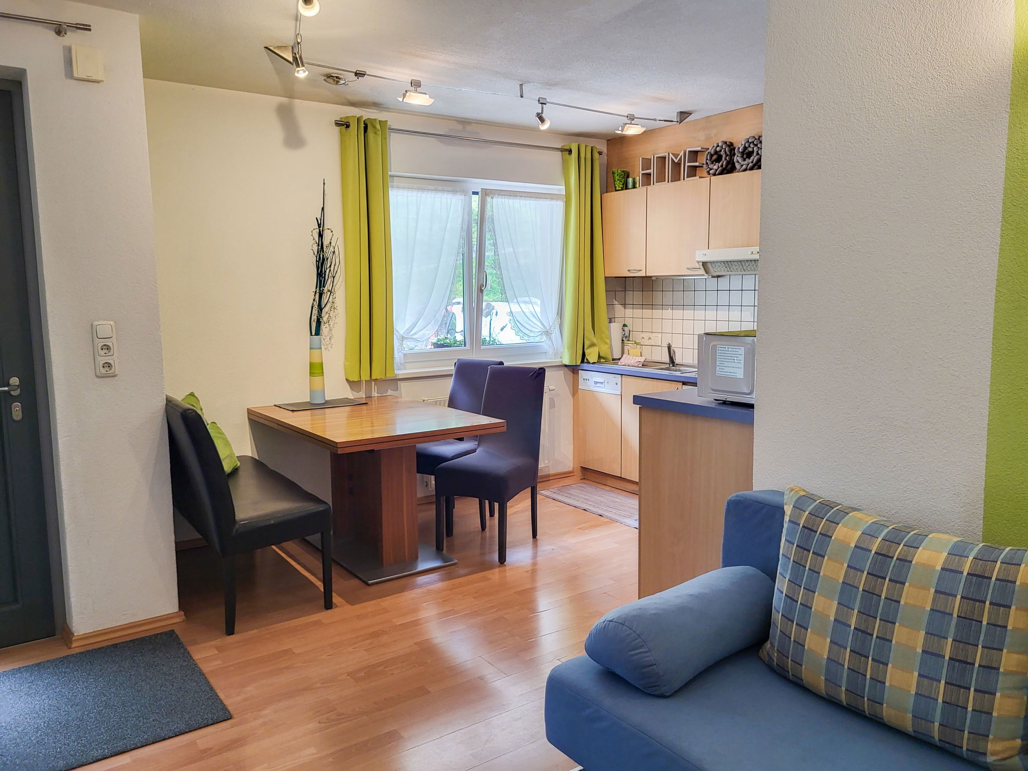 "Michael", 2-room apartment 40 m2, on the ground floor. Bright, modern furnishings: living/sleeping room with 1 double sofabed (155 cm), dining nook, satellite TV and radio. 1 double bedroom. Open kitchen (4 hot plates, oven, dishwasher, toaster, kettle, microwave, electric coffee machine). Shower/WC. Heating. Carpet. Patio. Barbecue (portable). Facilities: children's high chair, baby cot. Internet (WiFi, free). Please note: non-smokers only. Maximum 1 pet/ dog allowed. Private entrance, fire extinguisher.
