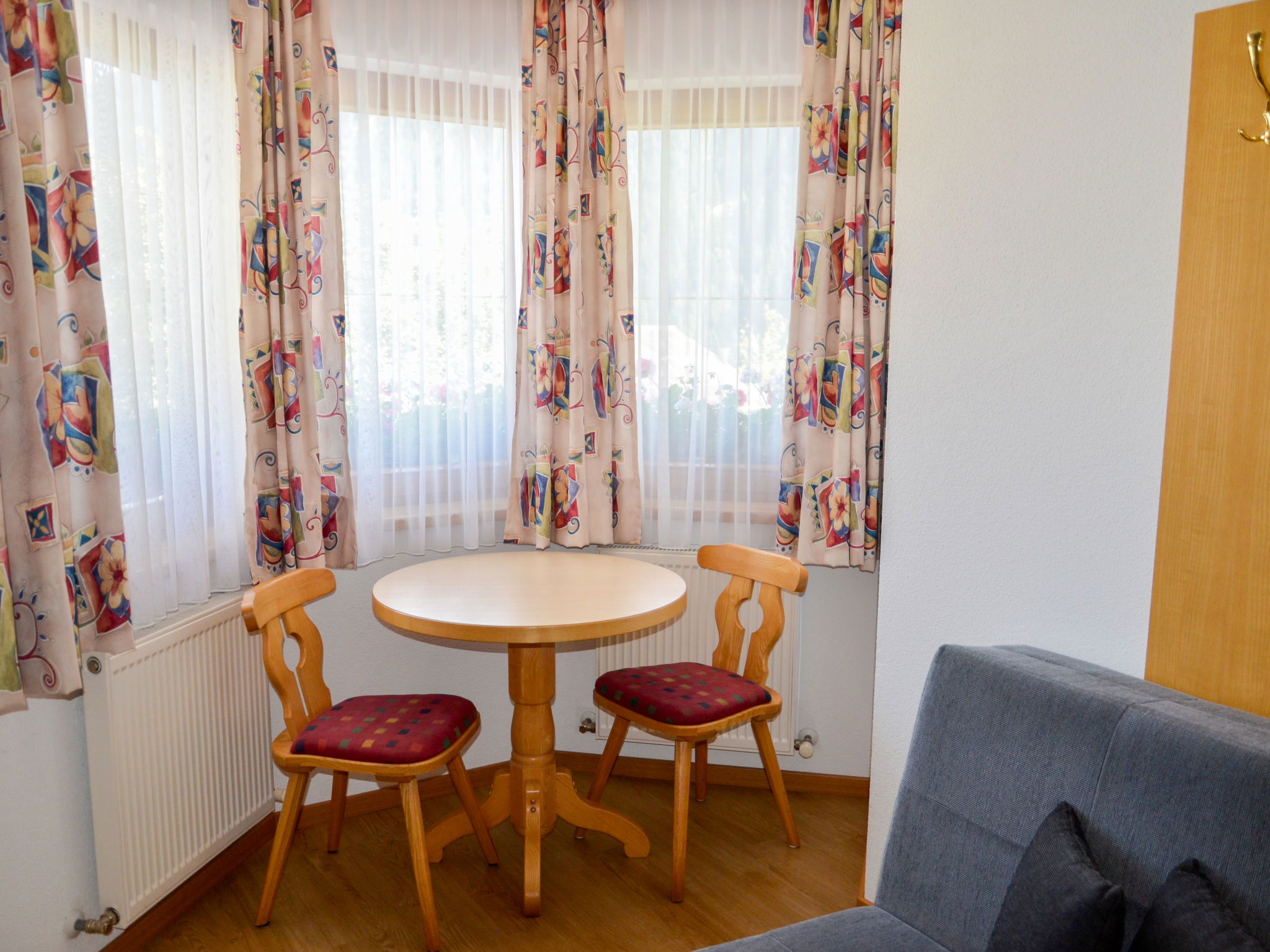 "Niederhof", 3-room apartment 70 m2 on 1st floor. Bright, cosy furnishings: 1 double bedroom. Exit to the balcony. 1 room with 1 sofabed and 1 double bed. Kitchen-/living room (oven, dishwasher, 4 ceramic glass hob hotplates, kettle, electric coffee machine) with dining table, satellite TV. Exit to the balcony. Shower/WC. Heating. Carpet. Balcony. Beautiful view of the mountains. Facilities: Internet (WiFi, free). Please note: non-smokers only. Maximum 1 pet/ dog allowed. Private entrance, smoke alarm, fire extinguisher.