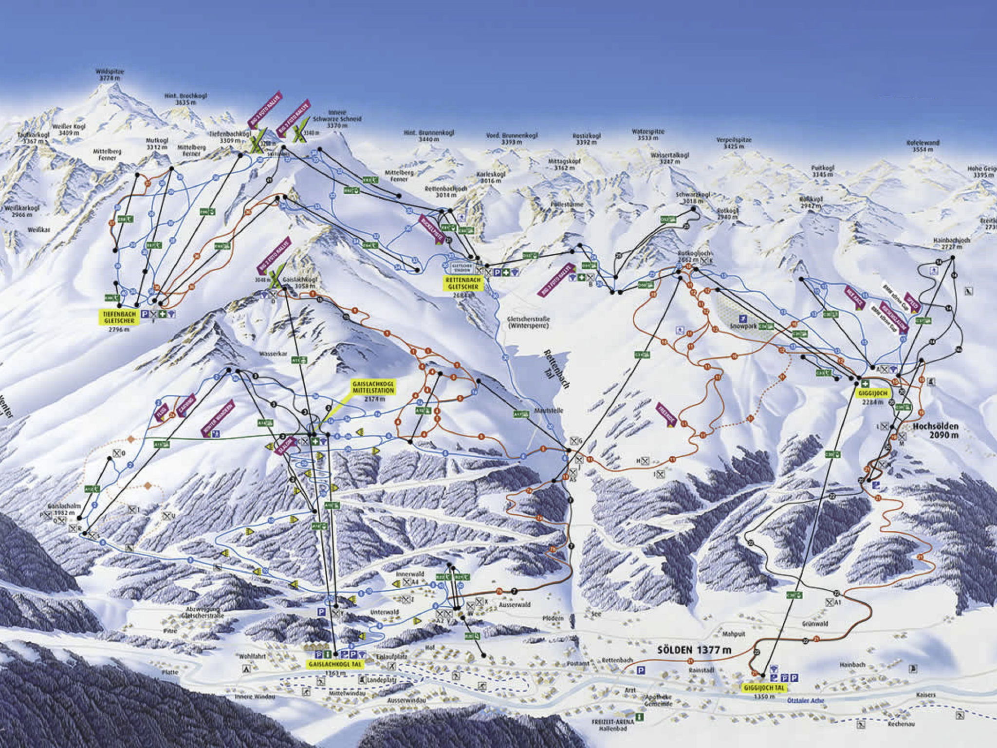 Apartment house "Rosi & Lore". In the district of Wildmoos 2 km from the centre of Sölden, on the outskirts, 86 km from the centre of Innsbruck, in the residential district, 1.2 km from the skiing area. Parking on the premises. Shop 550 m, restaurant 600 m, bus stop "Sölden Wildmoos" 94 m, railway station "Ötztal Bahnhof" 39.8 km, indoor swimming pool 2.2 km. Mountain railway 1.2 km, ski lift 1.2 km, slopes 1.2 km, ski bus stop 150 m, cross country ski track 1.3 km. Well-known ski regions can easily be reached: Gaislachkoglbahn 1.2 km. Please note: The owner does not accept any groups. Ski bus (free of charge). The owner lives in the same residence. Owner uses some rooms in the house. Ski bus: from Christmas to around Easter, 4 trips a day to the cable car and back. Note: In both halves of the house, rooms are rented separately on the ground floor, basement and floor. Aquapark "Freizeitarena Ötztal". Tennis, 9-hole golf course in Mieming 60 km. Ride. Fishing. Summer skiing in Retten/Tiefenbach glacier 14 km. paragliding. Hiking trails, mountain hikes, climbing. Bike paths, mountain bike routes. Ötztal fun park.