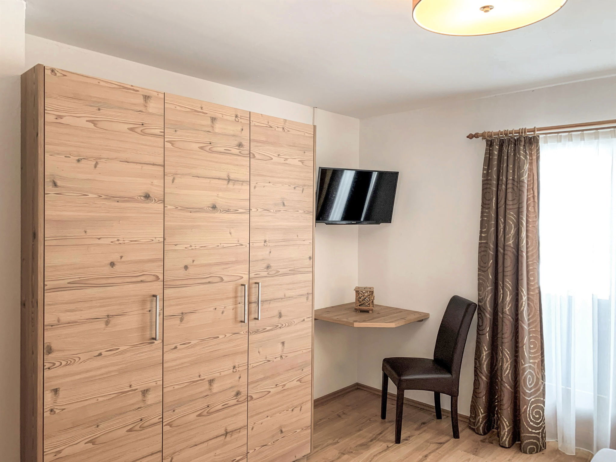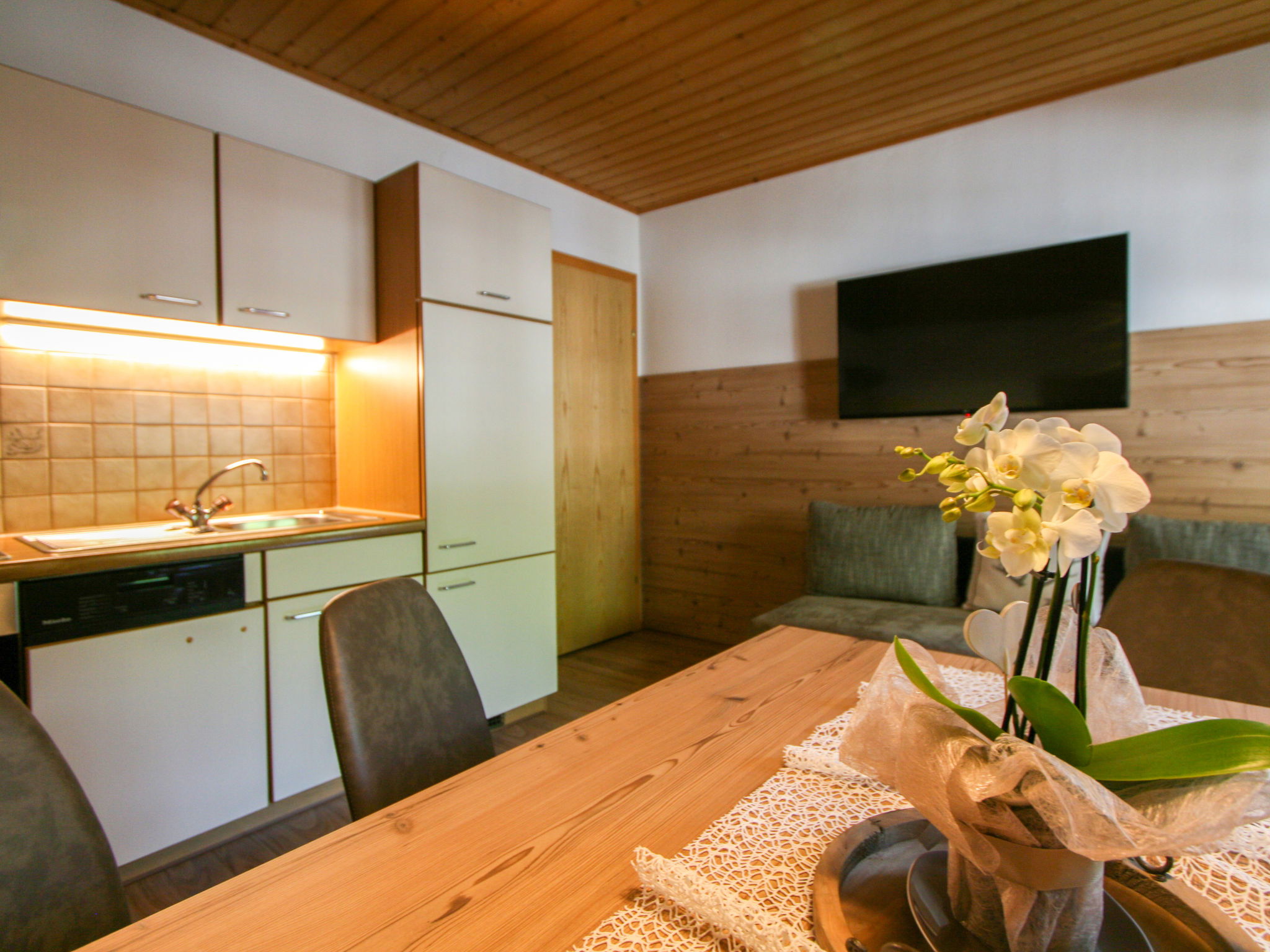 "Neuner", 4-room apartment 70 m2 on 2nd floor. Practical furnishings: 1 room with 1 bed, 1 double bed and satellite TV. Exit to the balcony. 2 rooms, each room with 1 double bed and satellite TV. Exit to the balcony. Kitchen-/living room (4 hot plates, oven, dishwasher, kettle, electric coffee machine) with dining nook and satellite TV. Exit to the balcony. Shower, sep. WC. Heating. Balcony. Facilities: baby cot. Internet (WiFi, free). E-charging station. Maximum 1 pet/ dog allowed. Slight pitch. Bed layout is flexible. There are more sleeping options available than the maximum number of people allowed which may, however, not be exceeded.
