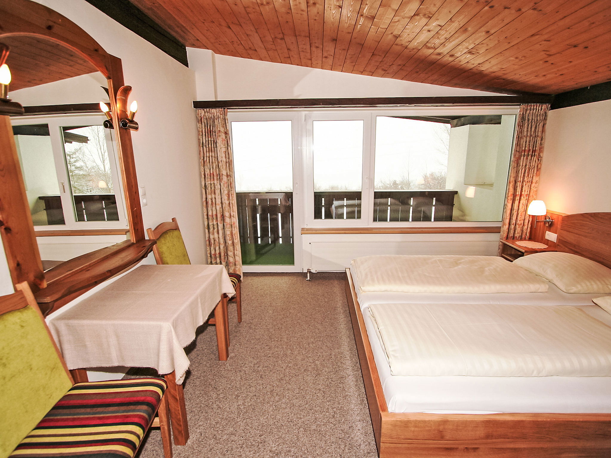 Small holiday development detached. Above Telfs, in a quiet, elevated position. For shared use: property 2'000 m2, garden, indoor pool heated (10 x 4 m, depth 130 cm). In the complex: sauna, solarium (extra). Storage room for bicycles, storage room for skis, central heating system, washing machine, tumble dryer (for shared use, extra). Parking, communal covered parking. Grocery 500 m, bus stop 400 m. Golf course (18 hole) 6 km, tennis 1 km, ski lift 12 km, ski bus stop 1 km, ski school 12 km, cross country ski track 7 km, ice rink 2 km. Nearby attractions: Outdoor Park 'Area 47' 20 km. Well-known ski regions can easily be reached: Seefeld 12 km, Hochötz 25 km. Please note: Property ref. AT6410.301 is situated on the same property. Indoor pool, sauna and solarium in the main house. Price for linen is per person and change - please reserve when booking!