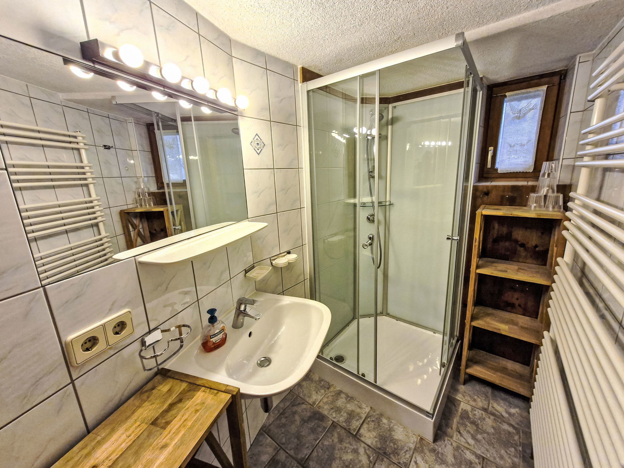 "Hackenschmiede", 4-room house 95 m2, on the upper ground floor. Cosy and wooden furniture furnishings: living room with satellite TV. 2 double bedrooms. 1 room with 1 sofabed and 1 double bed. Kitchen-/living room (4 hot plates, oven, dishwasher, toaster, kettle, microwave, electric coffee machine) with dining nook. Exit to the garden. Shower, sep. WC. Oil heating. Wooden floors. Terrace roofed. Terrace furniture, barbecue. Facilities: children's high chair, baby cot. Internet (WiFi, free). Please note: maximum 2 pets/ dogs allowed. Smoke alarm. Free washing machine and dryer for minimum stays of 7 days.