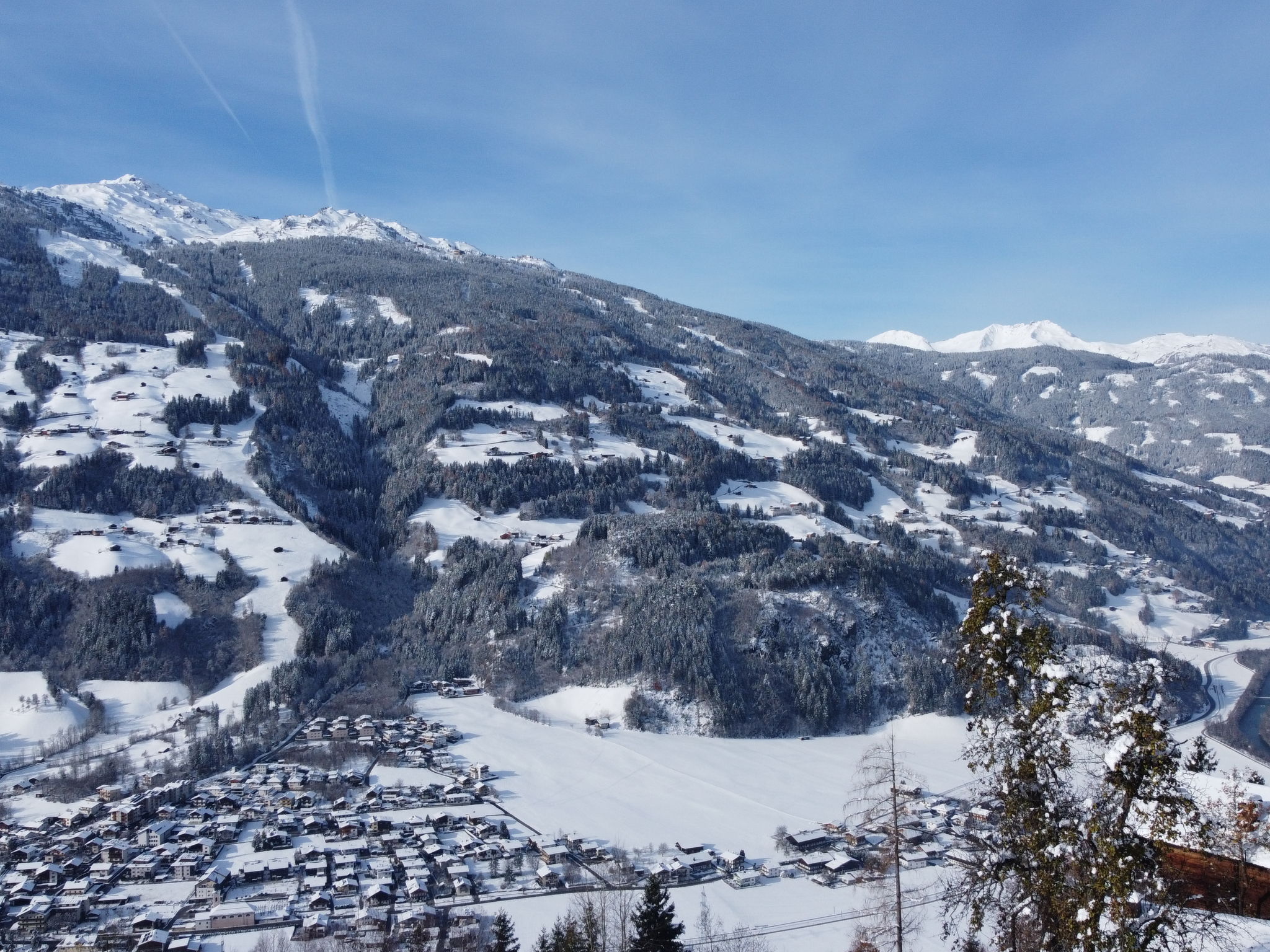 Aschau Distelberg: Cosy 2-family house "Kröll", 3 storeys, surrounded by meadows. Above Aschau, in the district of Distelberg 4.5 km from the centre of Stumm, 5.5 km from the centre of Aschau, 6 km from the centre of Kaltenbach, in a quiet, sunny position on a slope, 3 km from the lake, 6 km from the skiing area. For shared use: property 1'000 m2. In the house: WiFi, storage room for bicycles, storage room for skis, ski boot dryer. Motor access to the house. In Winter: please take snow chains. Parking (for 2 cars) at the house. Supermarket 5.5 km, restaurant 1 km, bus stop "Kleinstummerberg Haarland" 1.7 km, railway station "Kaltenbach-Stumm Bahnhof" 5.4 km, outdoor swimming pool 4.5 km, indoor swimming pool 3 km, thermal baths "Erlebnistherme Fügen" 12 km, bathing lake "Aufenfeld" 3 km. Golf course (18 hole) 10 km, walking paths from the house 50 m, gondola lift 6 km, skisport facilities 6 km. Well-known ski regions can easily be reached: Ski-Optimal Hochzillertal 6 km, Zeller Bergbahn 8 km. Please note: car recommended.