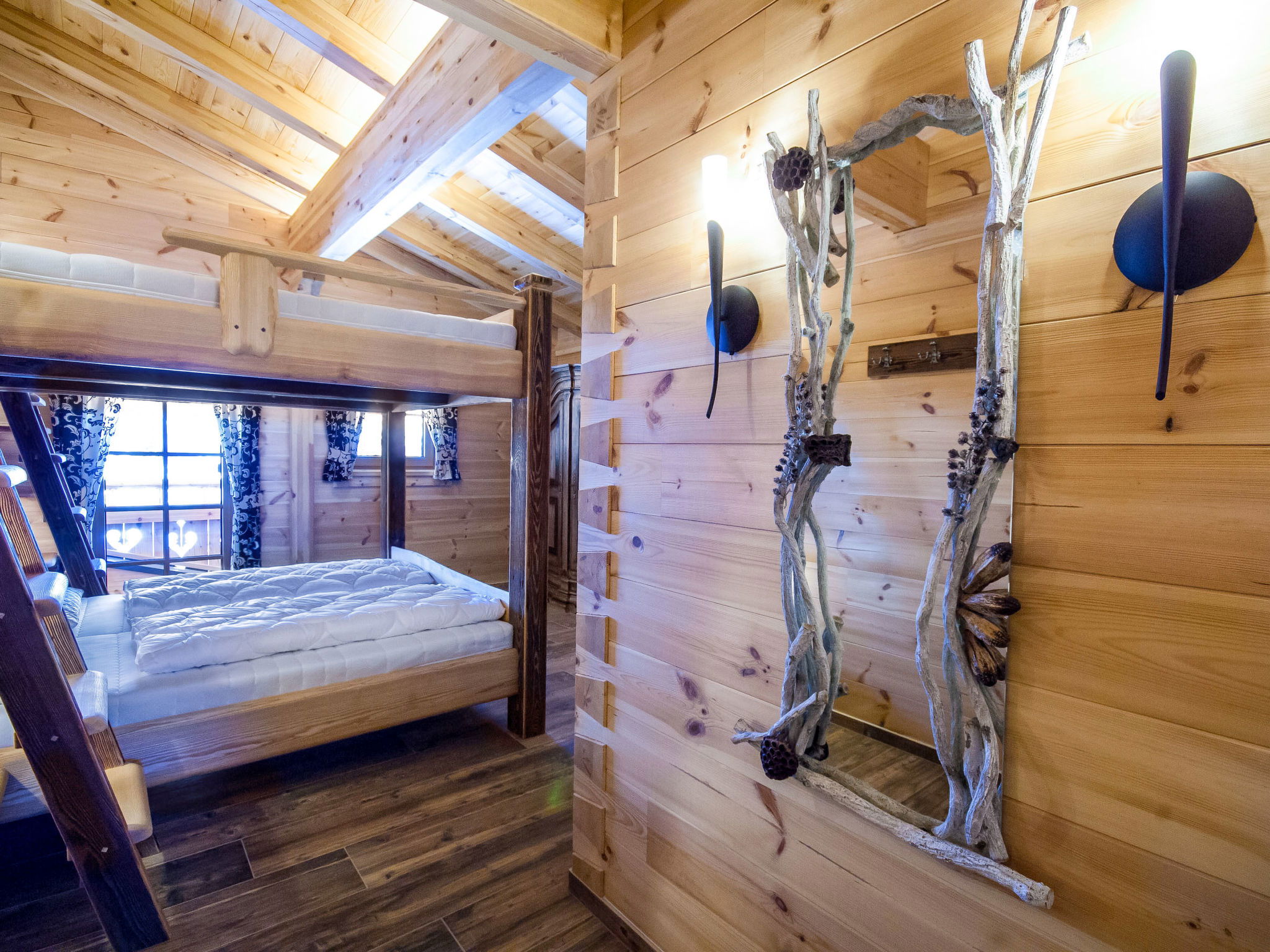 "Aualm", 6-room chalet 150 m2 on 2 levels. Cosy and wooden furniture furnishings: 1 room with 1 x 2 bunk beds, 1 double bed and shower/WC. Kitchen-/living room (oven, dishwasher, 4 ceramic glass hob hotplates, kettle, microwave, freezer, electric coffee machine) with dining table, dining nook and satellite TV. Shower, sep. WC, Sauna. Upper floor: 4 rooms, each room with 2 x 2 bunk beds (180 cm, length 200 cm), shower/WC and satellite TV. Exit to the balcony. Underfloor heating. Wooden floors. Balcony, terrace, patio. Terrace furniture, barbecue (portable), deck chairs. Beautiful panoramic view. Facilities: children's high chair, baby cot. Internet (WiFi, free). 1 pet/ dog allowed. In summer the huts can be reached by car. In winter, ascent with the lift, luggage transport with the Skidoo. When there are less than the maximum number of guests staying at the property, not all of the housing units will be available for use. 50409-000081-2020