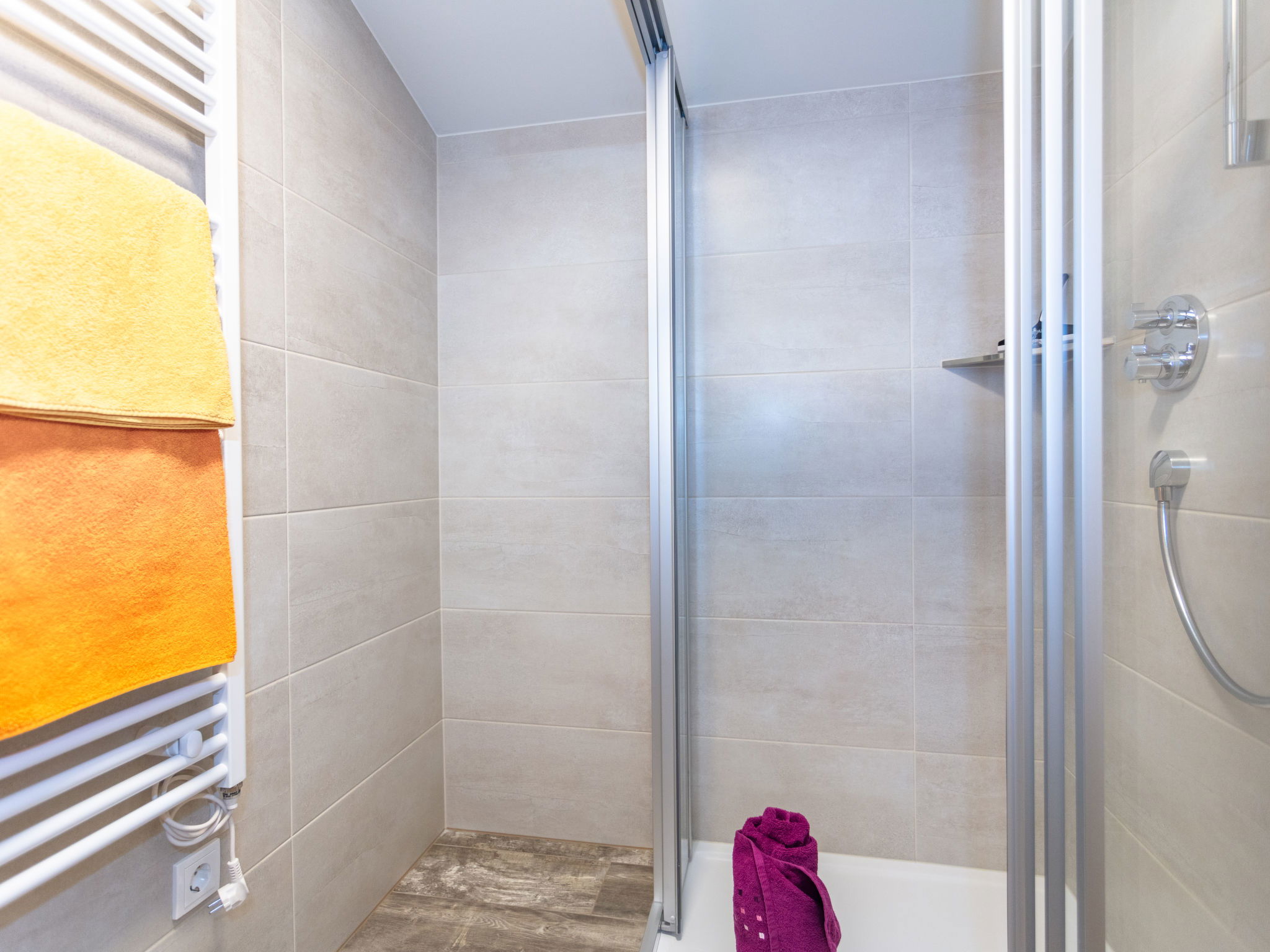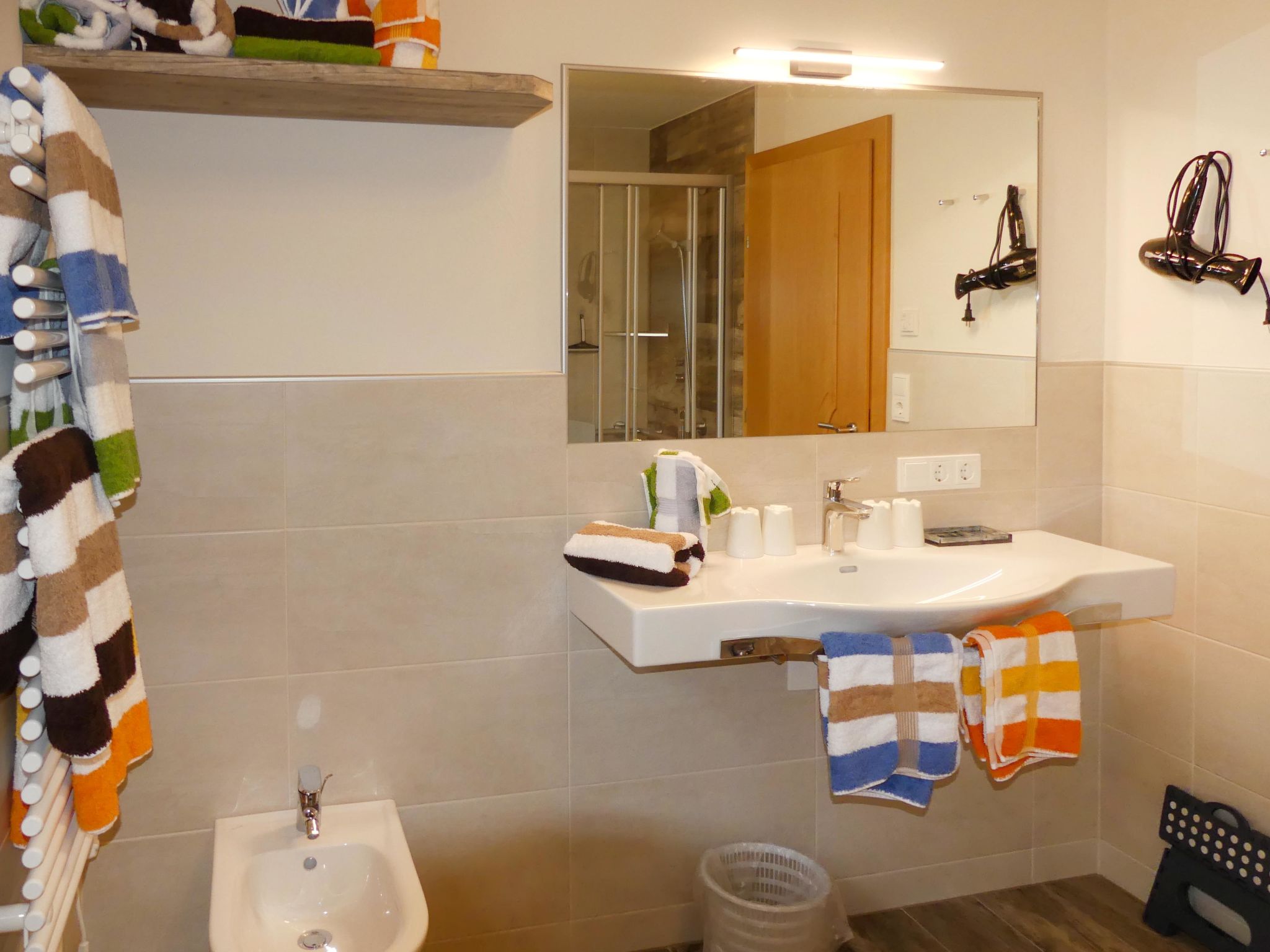 7-room house 200 m2 on 2 levels. Comfortable and cosy furnishings: entrance hall. Living room with panoramic window with 1 double sofabed and cable TV. Exit to the terrace. 1 double bedroom with hand-basin and cable TV. Kitchen (oven, dishwasher, 4 induction hot plates, toaster, kettle, microwave, freezer, electric coffee machine, Capsules for coffee machine (Nespresso) extra) with dining table. Shower/bidet/WC, sep. WC. Upper floor: 1 double bedroom with hand-basin and cable TV. Exit to the balcony. 1 room with 1 bed, 1 double bed and cable TV. Exit to the balcony. 1 room with 2 beds. Kitchen (oven, 4 ceramic glass hob hotplates, toaster, kettle, microwave, electric coffee machine). Exit to the balcony. Shower, shower/WC, sep. WC, double hand-basin. Wooden floors, natural stone floors. Terrace. Terrace furniture. Maximum 1 pet/ dog allowed. If 6 persons booked, one bedroom will be closed. When there are less than the maximum number of guests staying at the property, not all of the housing units will be available for use. 50641-001237-2020