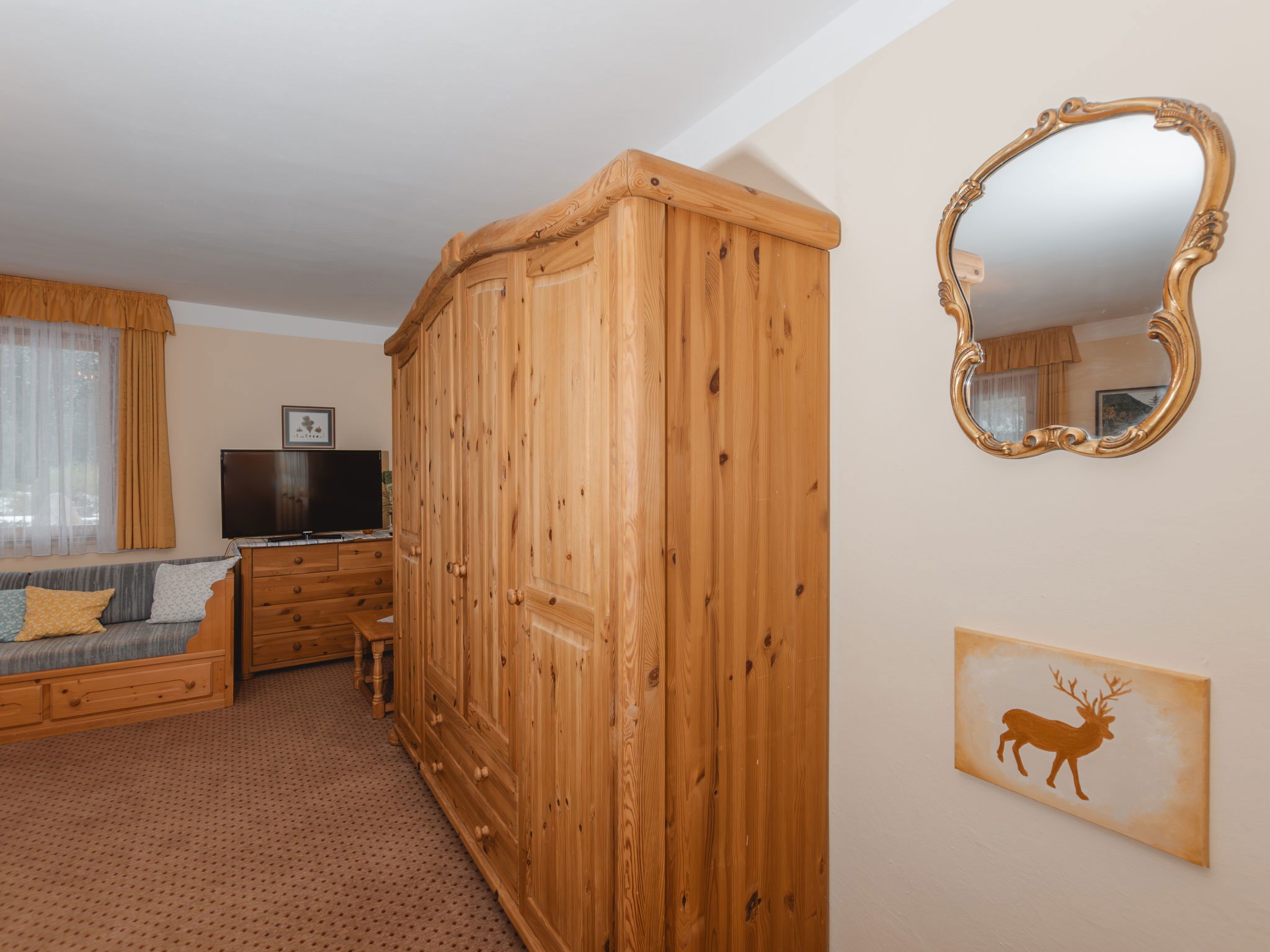 "Hede", 2-room apartment 35 m2. Spacious and bright, cosy furnishings: entrance hall. Living/sleeping room with 1 sofabed, 1 double bed, dining table and cable TV (flat screen). Kitchen (4 hot plates, oven, toaster, kettle, electric coffee machine) with dining table. Bath/WC. Carpet. Comfortable furnishings in the country house style. Large balcony. Beautiful view of the forest. Facilities: safe, hair dryer. Internet (WiFi). Parking, garage (extra) at the house. Please note: suitable for families. Non-smokers only. 2 pets/ dogs allowed. 50403-000158-2020