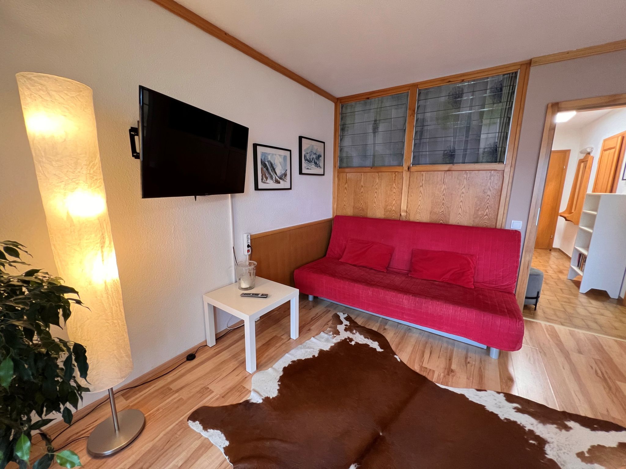 "Appartement Andrea", 2-room apartment 39 m2 on 4th floor. Bright, beautiful and cosy furnishings: entrance hall. Living/sleeping room with 1 double sofabed and satellite TV (flat screen), radio. Exit to the balcony. 1 room with 2 x 2 bunk beds (90 cm, length 190 cm). Small kitchen (dishwasher, 2 ceramic glass hob hotplates, toaster, kettle, electric coffee machine, combination microwave). Shower/WC. Balcony. Balcony furniture. Very beautiful view of the mountains and the countryside. Facilities: Internet (WiFi, free). Parking (1 car). Please note: suitable for families. Non-smokers only. 1 pet/ dog allowed. Smoke alarm, fire extinguisher. Newly renovated bathroom! 50415-006726-2020