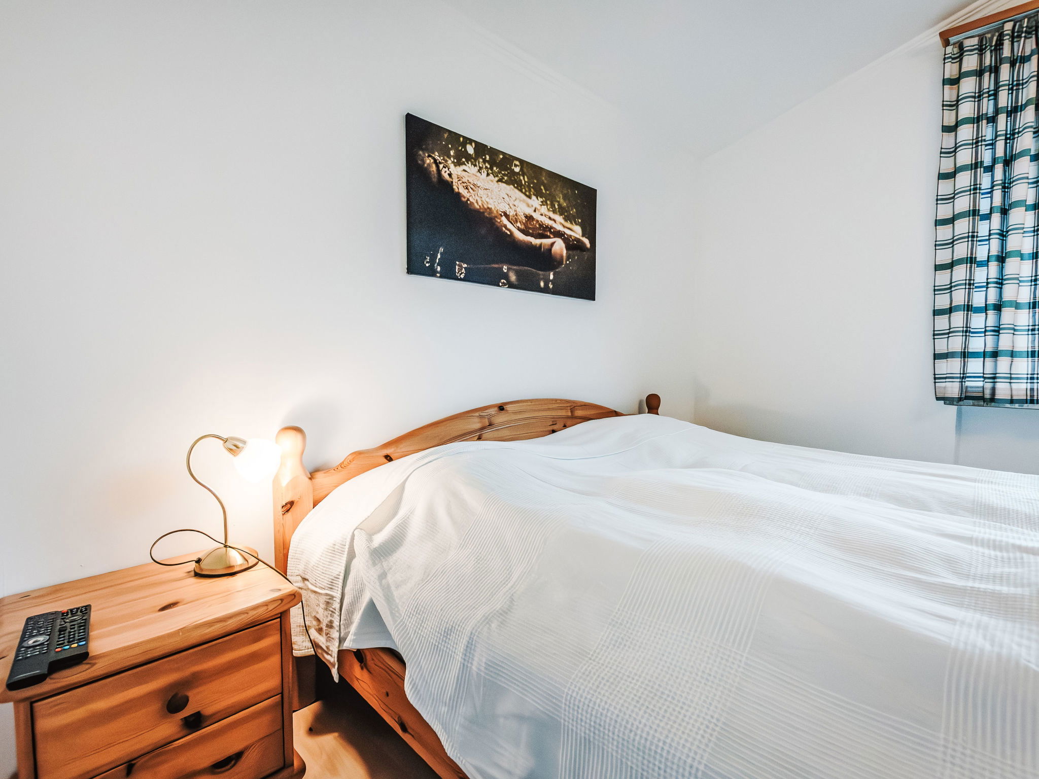 2-room apartment 70 m2 on 2nd floor. Spacious and bright, partly renovated, simple and comfortable furnishings: entrance hall with electric heating. Living/sleeping room with 1 sofabed, 1 double bed, dining table and satellite TV (flat screen), electric heating. Exit to the balcony. 1 double bedroom with satellite TV (flat screen). Exit to the balcony. Kitchen (4 hot plates, oven, toaster, kettle, microwave, electric coffee machine) with dining table. Shower/WC. Floor heating. Parquet floors. 2 small balconies. Balcony furniture. Very beautiful view of the mountains. Facilities: Internet (WiFi, free). 1 pet/ dog allowed. 50403-000513-2023