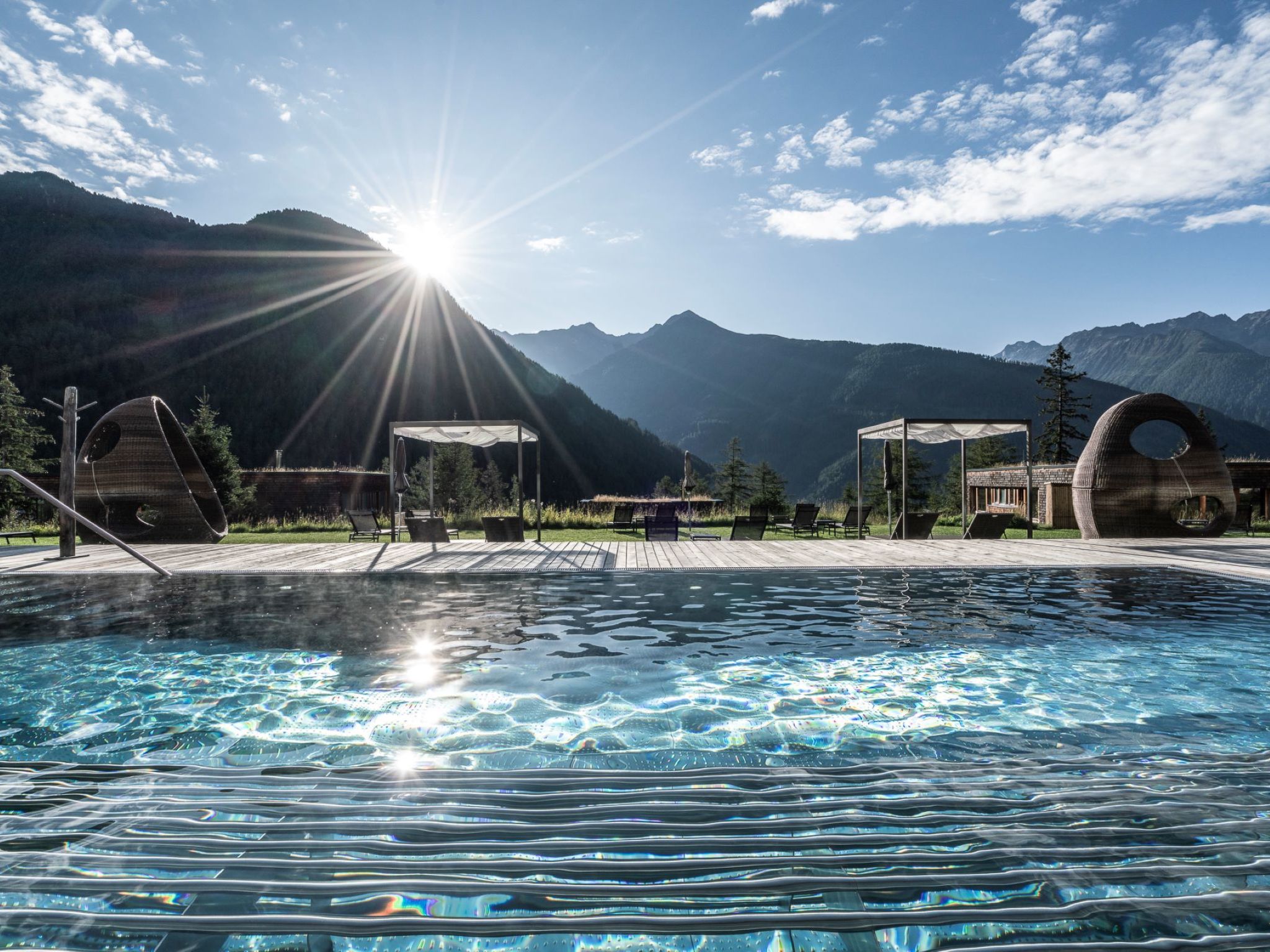 Child friendly chalet "Gradonna Mountain Resort", 1'450 m a.s.l.. 4 km from the centre of Kals, 36 km from the centre of Lienz, on a slope, directly by the skiing area. For shared use: property with plants, indoor pool heated (seasonal availability: 15.Jun. - 31.Oct.). Nat. Swimm. Pond. In the house: reception, restaurant, bar, fitness room, massage (extra). Steam room (extra). Breakfast and half board possible (extra). E-charging station. Shop 4 km, bus stop "Kals a. G. Abzw Burg" 2.5 km. Slopes 10 m. Please note: entertainment. Childminding (included). Dogs are not allowed in the restaurant, in the wellness area or on the lawn. Extra: You will receive the East Tyrolean summit card (summer season) on site, which allows free use of the Kals-Matrei, St. Jakob im Defereggental and Hochpustertal-Sillian cable cars (depending on opening and operating times). Seasonal availability 15 June - 31 October applies to the natural swimming pond. In the complex: ski school office, delicatessen with groceries, sports shop and ski rental. Ski pass service directly at reception. IMPORTANT: ONLY dogs are allowed as pets!