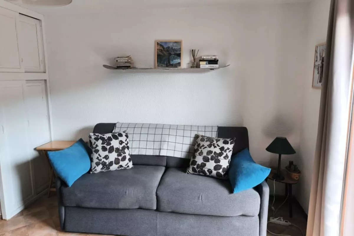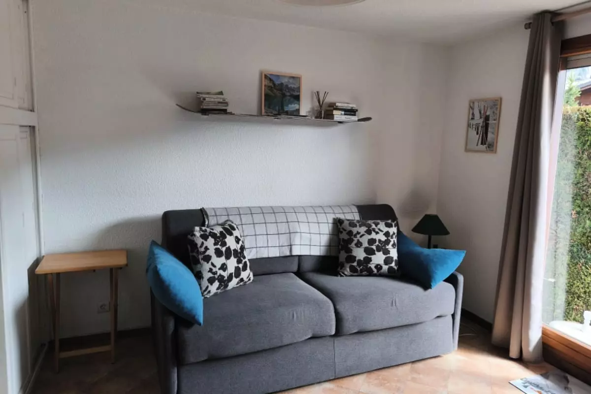 - a living room with a convertible sofa to relax after a day of walking.