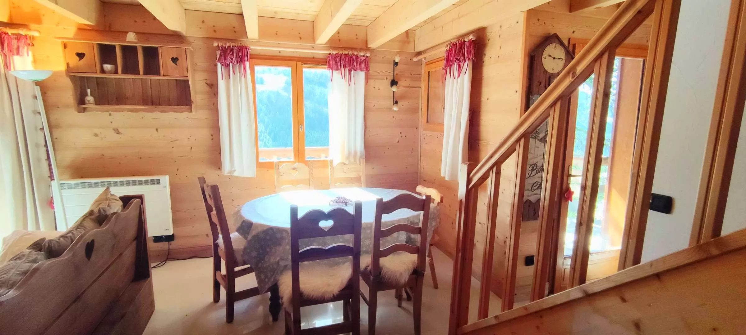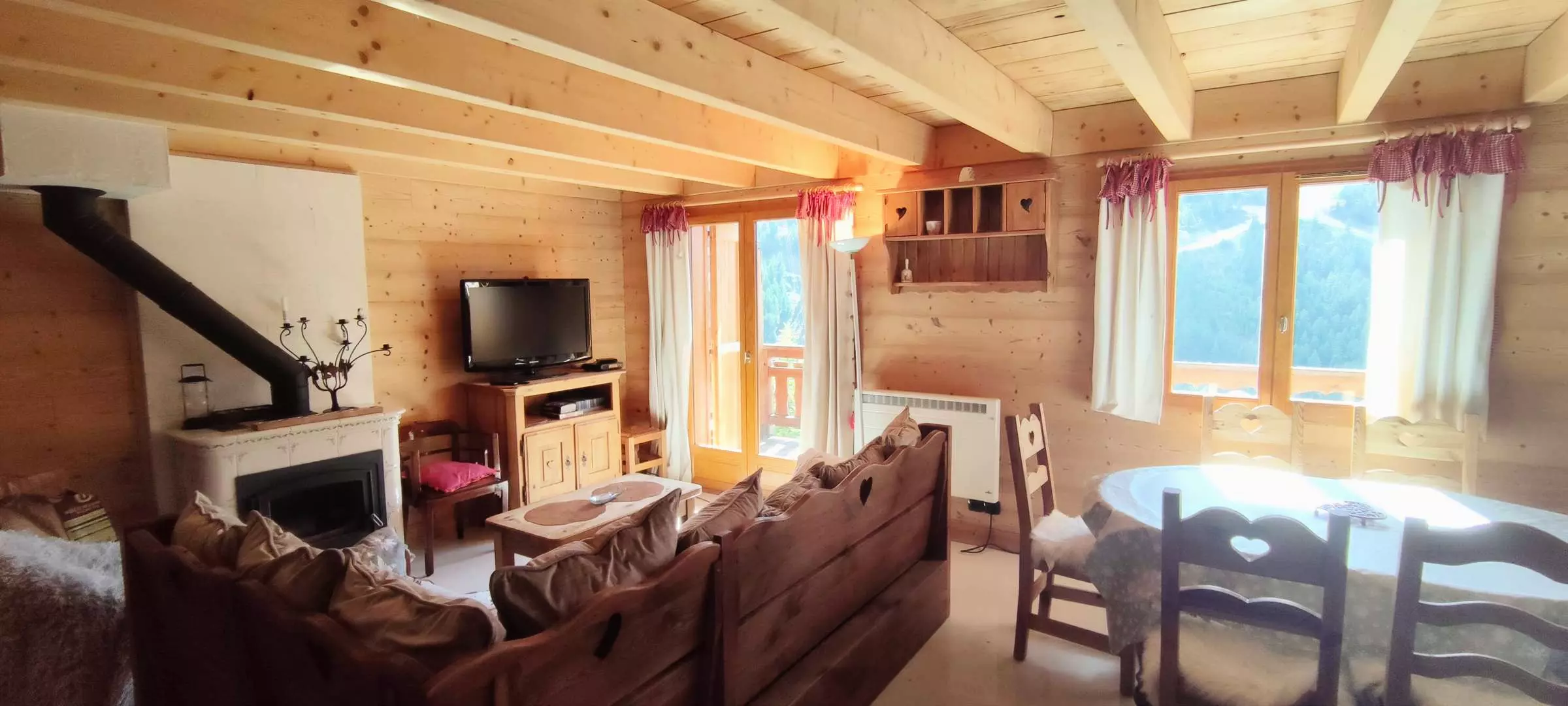 Beautifully decorated chalet of 60m² with American kitchen on the ground floor, a shower room and WC, large equipped terraces with unobstructed views of the mountains, facing south. Upstairs, separate WC, 1 bathroom with bathtub and the bedrooms.